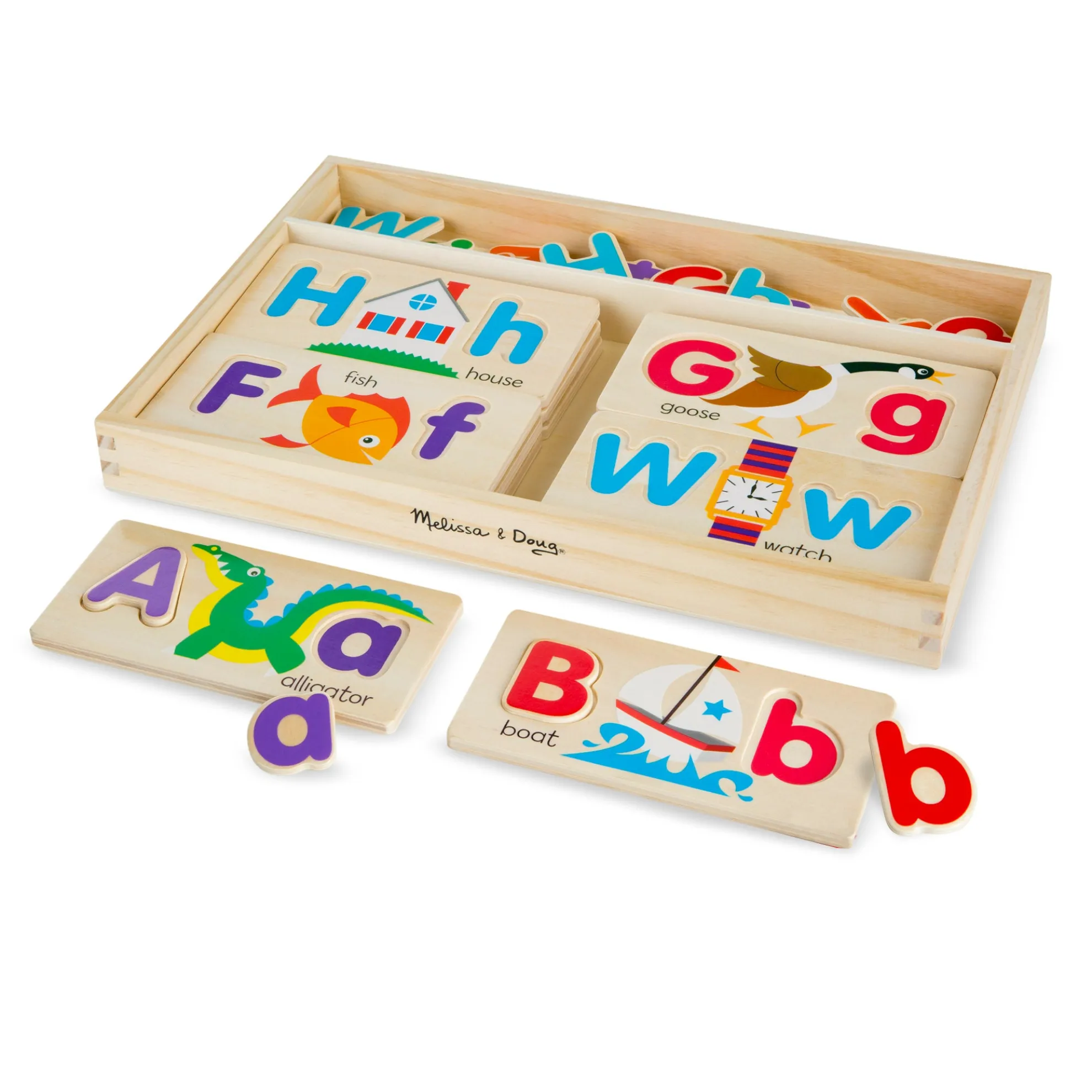 - Sturdy wooden construction for years of play; encourages letter, word, and color recognition; promotes matching, memory, and fine motor skills