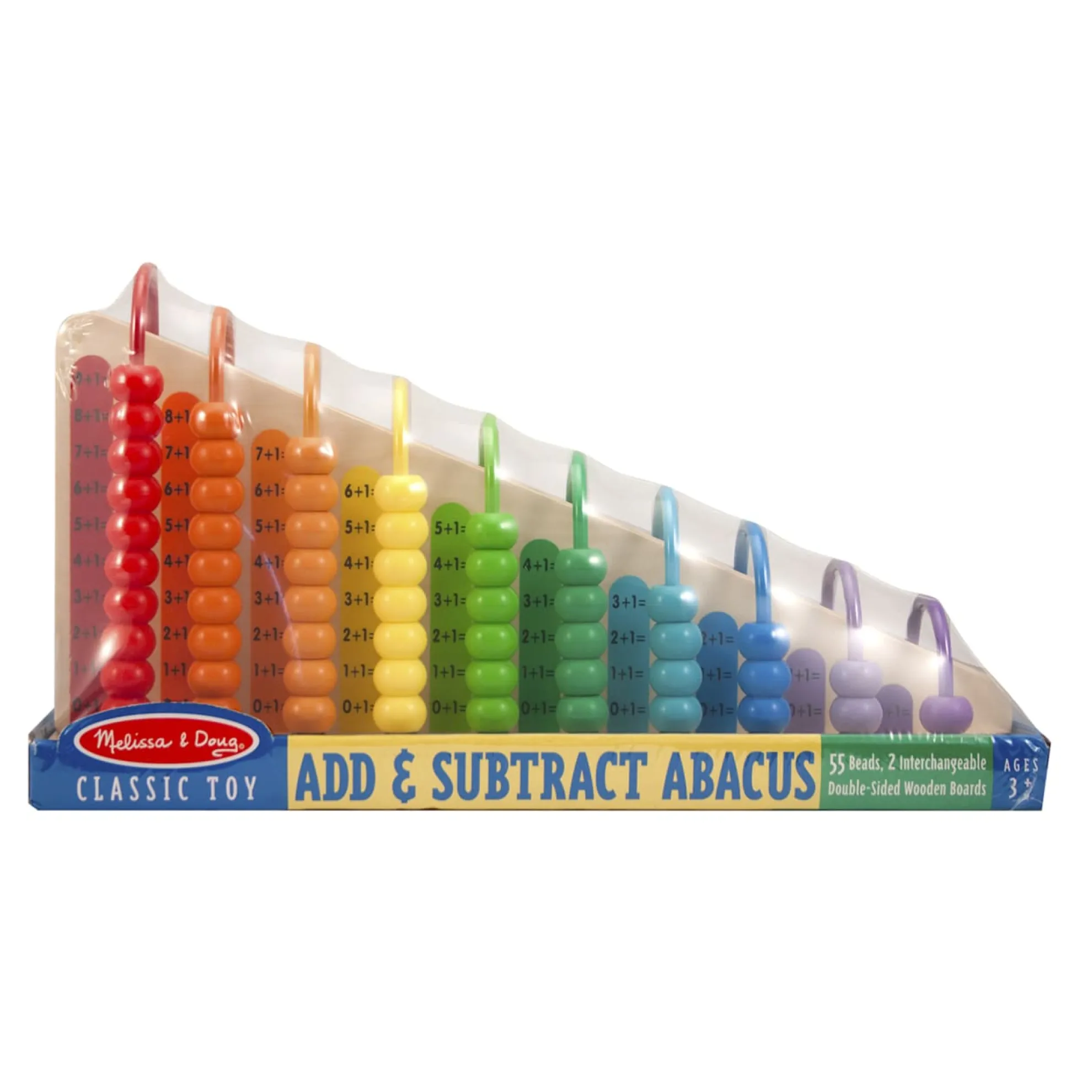 - Abacus includes 55 colorful beads and 2 interchangeable double-sided wooden boards