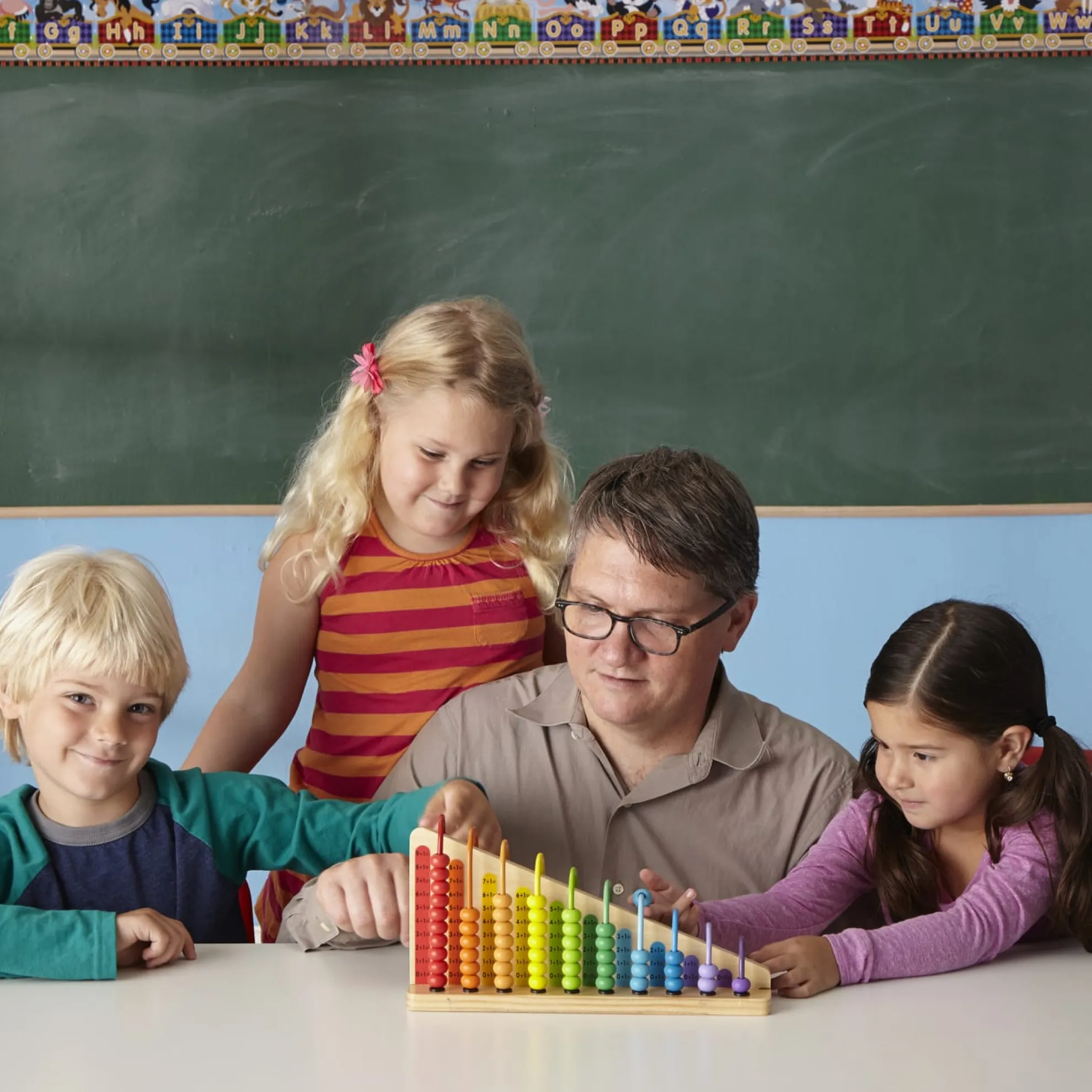Ideal for the classroom or the playroom, this classic toy gives kids lots of ways to explore numbers, colors, and patterns! Just slide the two double-sided wooden boards into the base, then encourage kids to solve equations by lining up the correct number of beads on the addition and subtraction sides or follow the patterns on the color-matching sides. This abacus is one colorful, educational powerhouse!