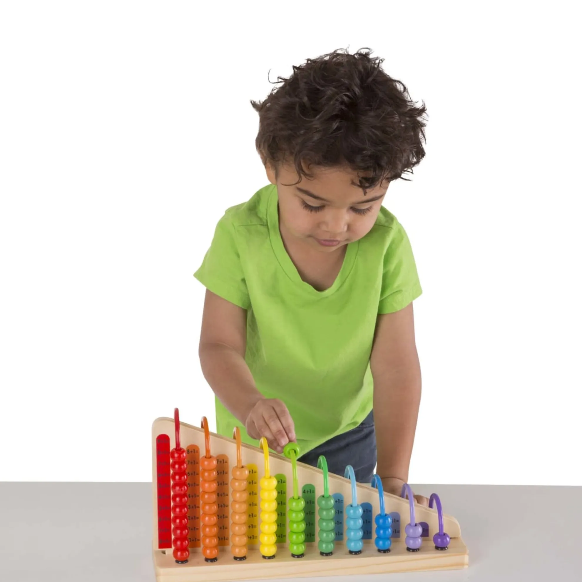 - Wooden boards feature addition and subtraction and color matching