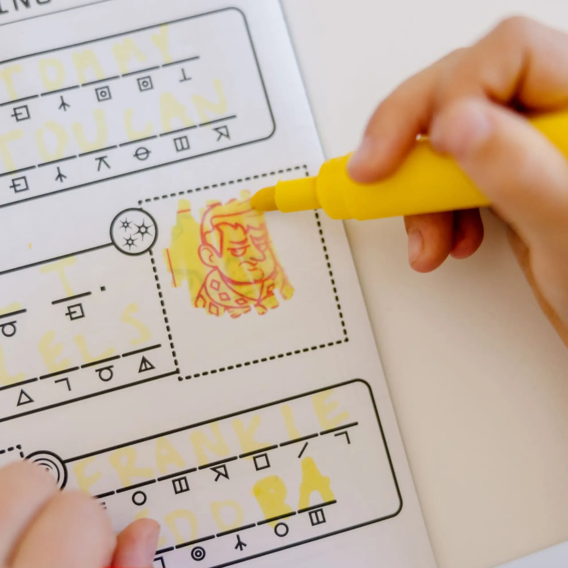 - Includes 18 activity pages, decoder wheel, and magic-reveal pen