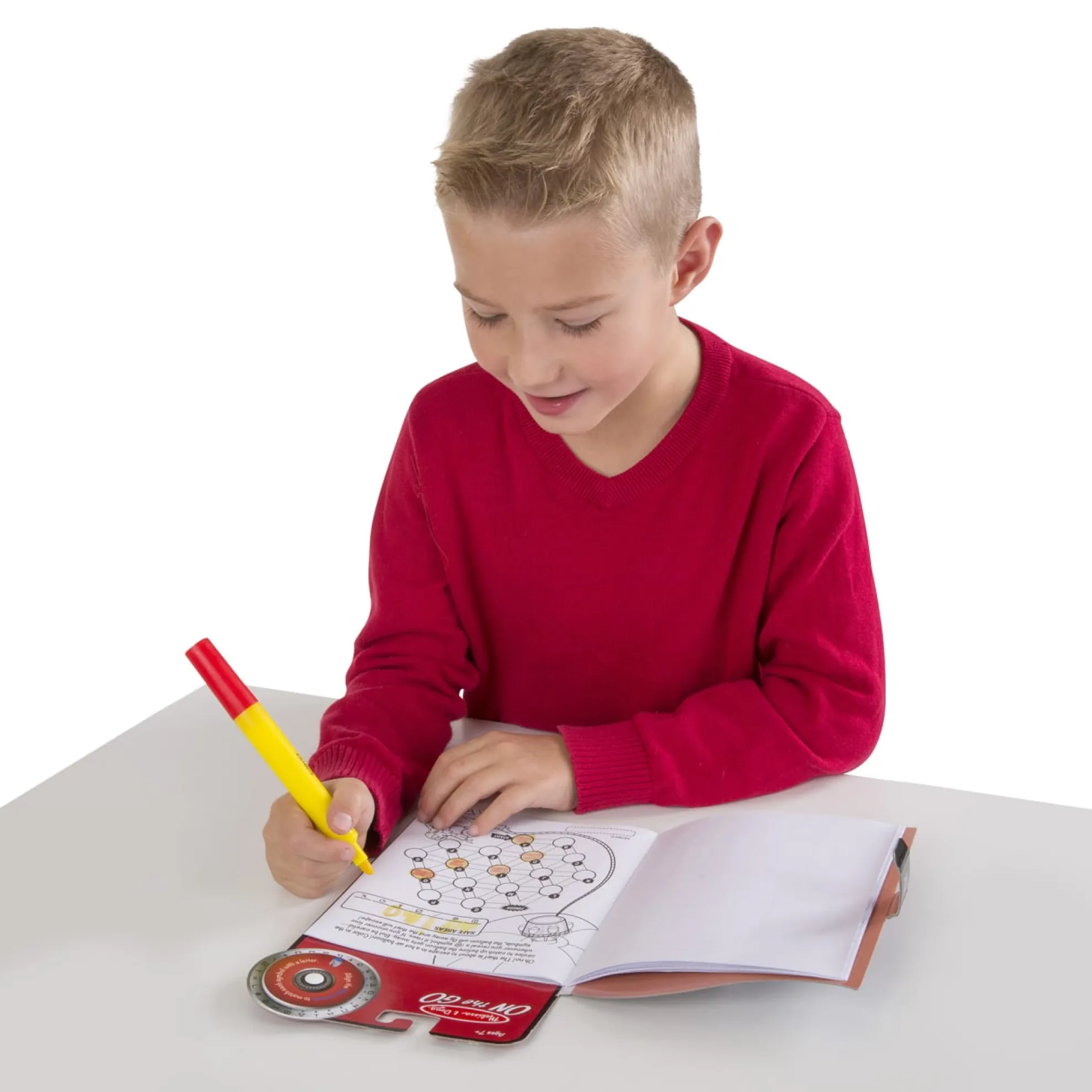 Young sleuths will love helping Gary Gumshoe find Madame Mahvelous’s missing ruby! This exciting spy activity book has 18 game pages of mysteries to solve. A few turns of the included decoder wheel–bound right into the book and visible from every page–will help detectives-in-training complete each challenge as they put their deductive skills to the test! To uncover even more case-cracking clues, master mazes, and complete puzzles, a magic-reveal pen is included, giving every page plenty of play value. It all stores neatly within the tab-close covers–perfect for spies on the go.
