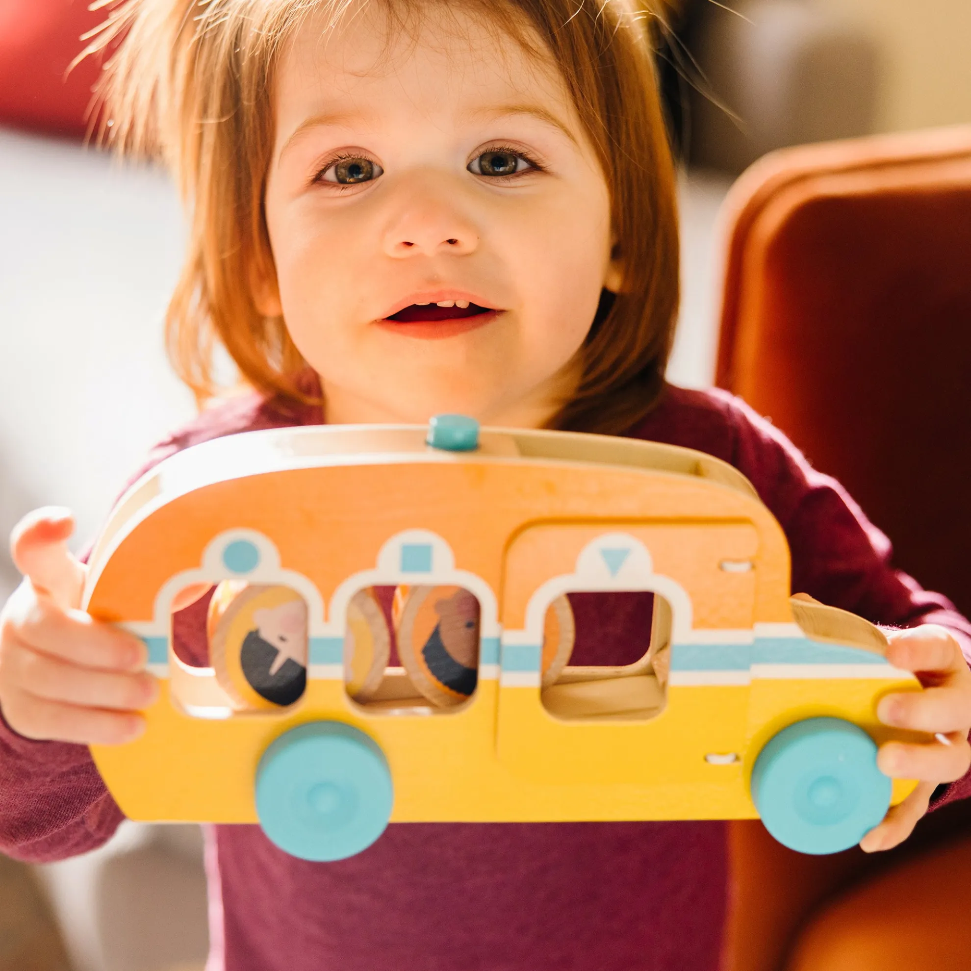 Let’s go play with friends that are fun to roll, stack, and grasp! Three double-sided chunky wooden GO Tots disks (six characters) spin and bounce as the bus rolls! Press the button on top of the sturdy wooden bus and GO Tots roll out the back! Compatible with other GO Tots play sets. With Melissa & Doug GO Tots, toddlers 12 months and older will discover a new kind of kinetic play that offers opportunities to explore cause-and-effect through delightful motion-driven moments. Relatable, diverse characters and appealing shapes and textures encourage connections and exploratory, skill-building play. This product is certified by the Forest Stewardship Council. FSC certification ensures that products come from responsibly managed forests that provide environmental, social, and economic benefits, and that forests are protected for future generations. Please note that FSC certification applies to new inventory only (FSC C156584)