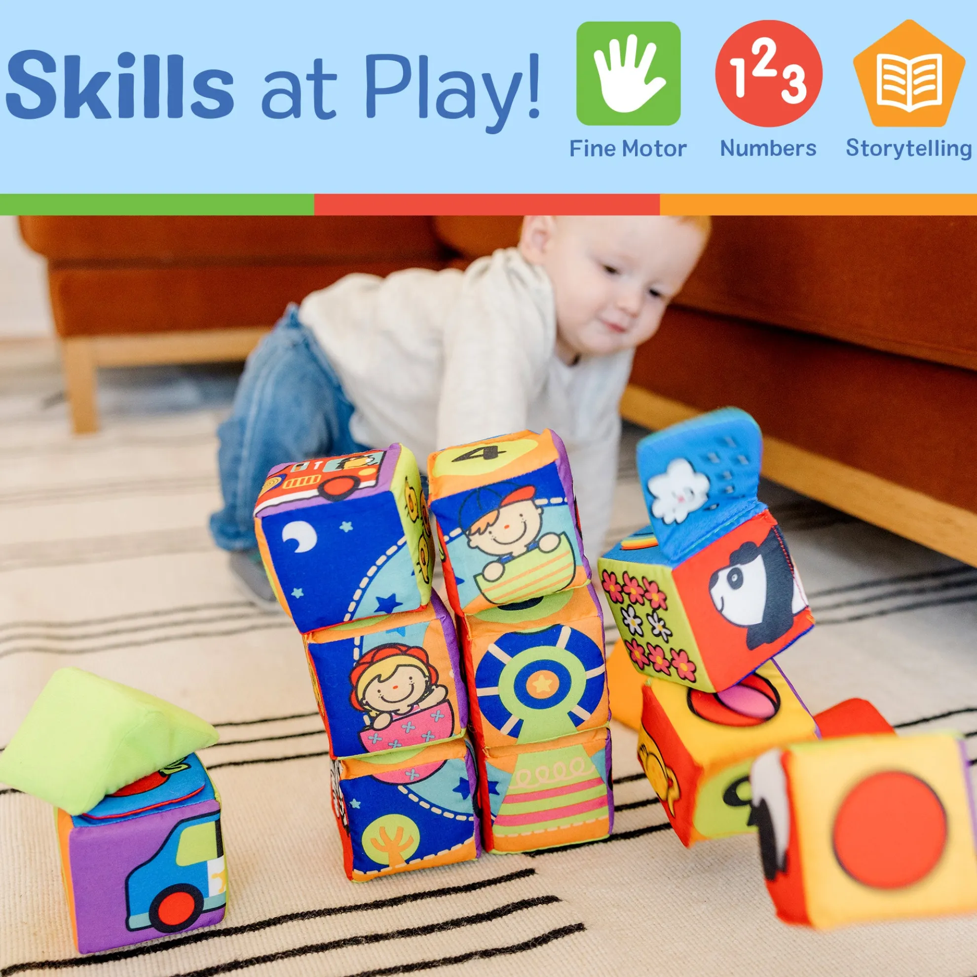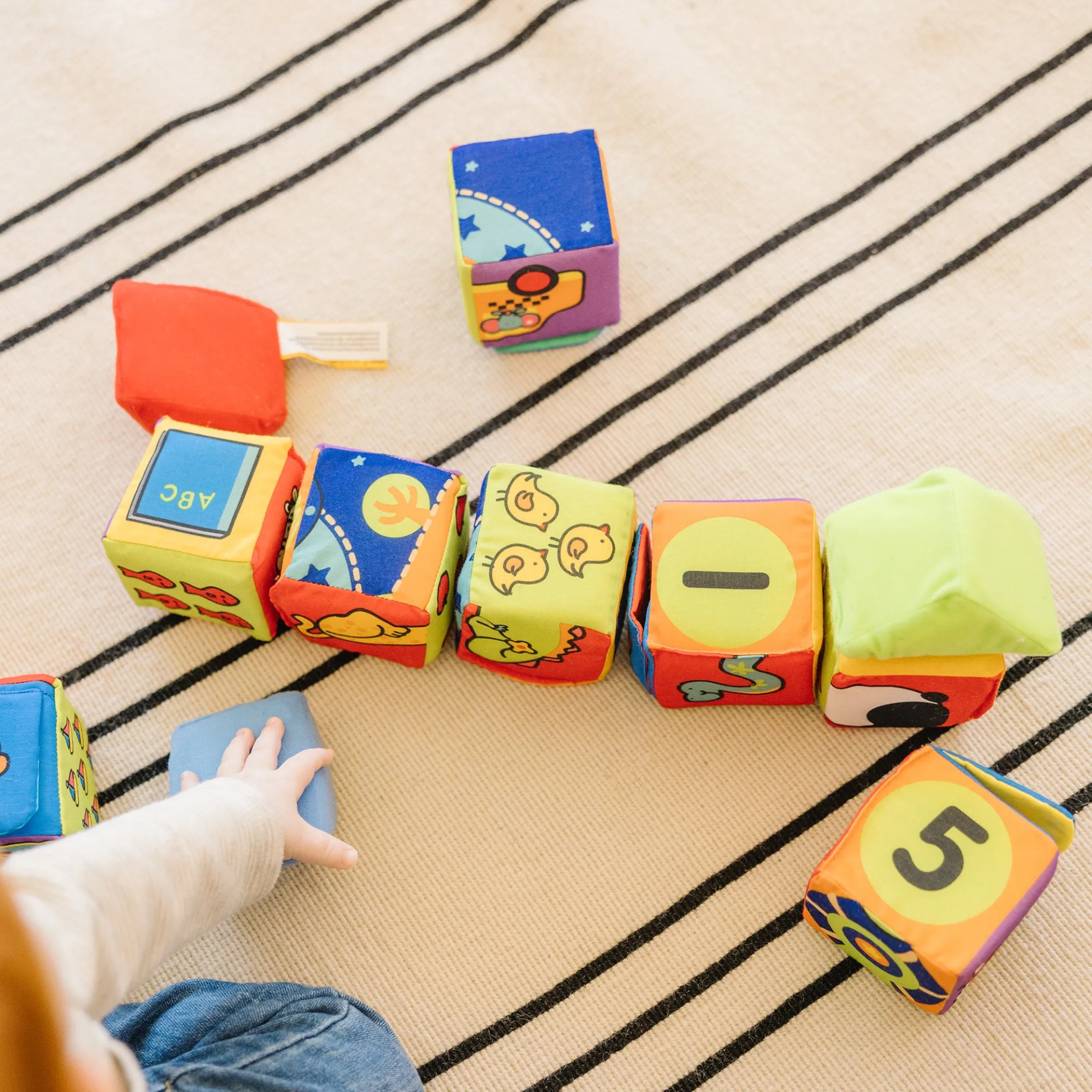 - Soft, lightweight pieces (10 cubes and 4 triangles) are easy for young children to lift and manipulate