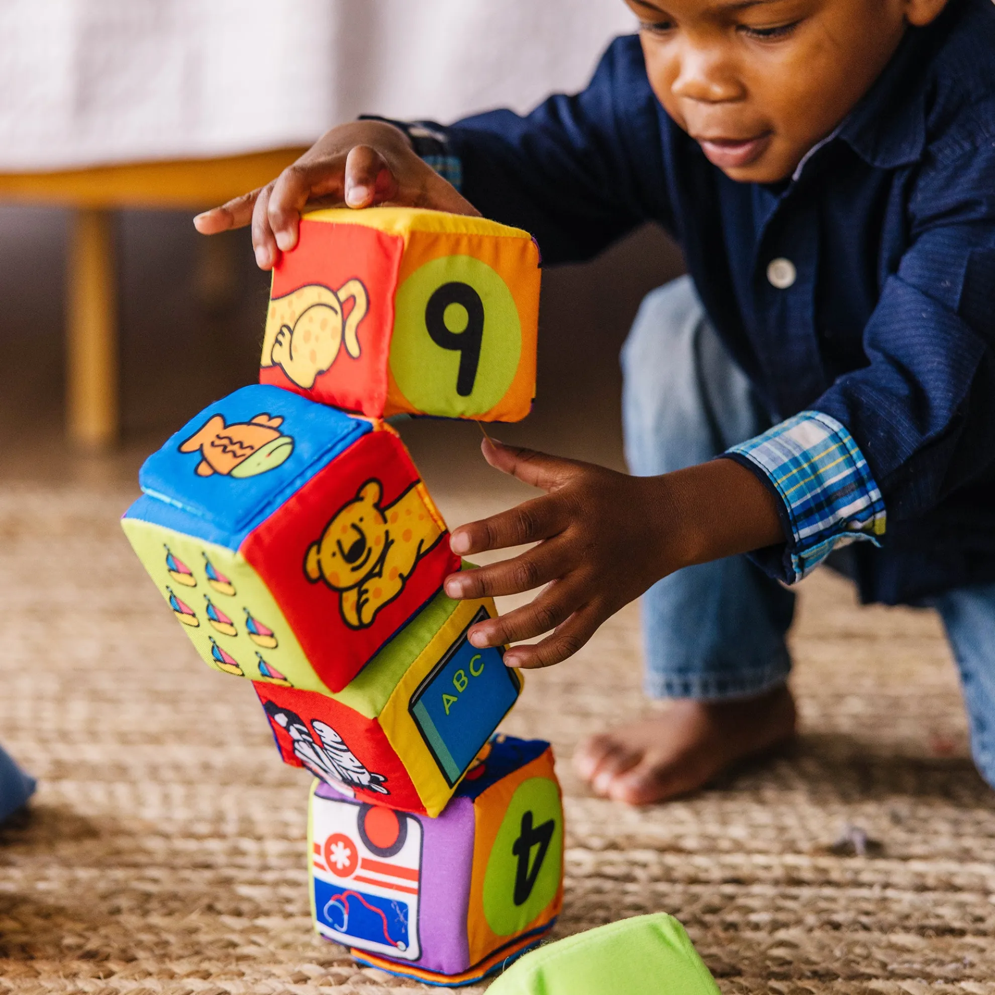 Build them up and knock them down–14 soft blocks combine in endless creative combinations . . . and topple with a gentle bounce that makes them safest for little ones. Match & Build Blocks can build much more than towers, too: This colorful soft-block set helps develop motor skills, logical connections, creativity, and more, so it grows along with a child, helping build key developmental skills along the way. Kid-friendly artwork on the coordinating cubes encourages matching activities (numerals with quantities, animal heads and tails, and everyday shapes), puzzling (complete the picture of a Ferris wheel!), and even sequential thinking and storytelling with before-and-after flaps on three of the blocks. With unlimited open-ended opportunities for learning and play, kids can also create their own sorting games and creative combinations–and of course, the 14 soft blocks make a terrific tower, castle, boat, or rocket ship! Melissa & Doug K’s Kids toys nurture early childhood development in three key skill areas: physical, cognitive, and social. With interactive designs and multisensory features, K’s Kids promotes constructive play and effortless learning, keeping interest high and new skills flourishing throughout the baby and toddler years!