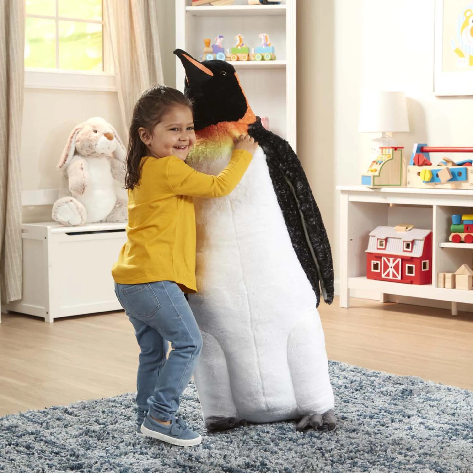 This gentle giant of a seabird is sure to waddle its way into the heart of any animal lover! Standing more than three feet tall (just like real full-grown emperor penguins), this regal bird’s super-silky-soft fur encourages hugs and cuddles, while quality construction and a strong interior structure keep it standing proudly for years to come. Sure to be the focal point of any room or play space, the penguin features realistic details like soft clawed feet that keep it standing upright,, a long beak stretching upward, and beautiful black, white, orange, and yellow coloring. This bird may never fly, but kids’ imaginations will certainly take flight with this adorable companion by their side!