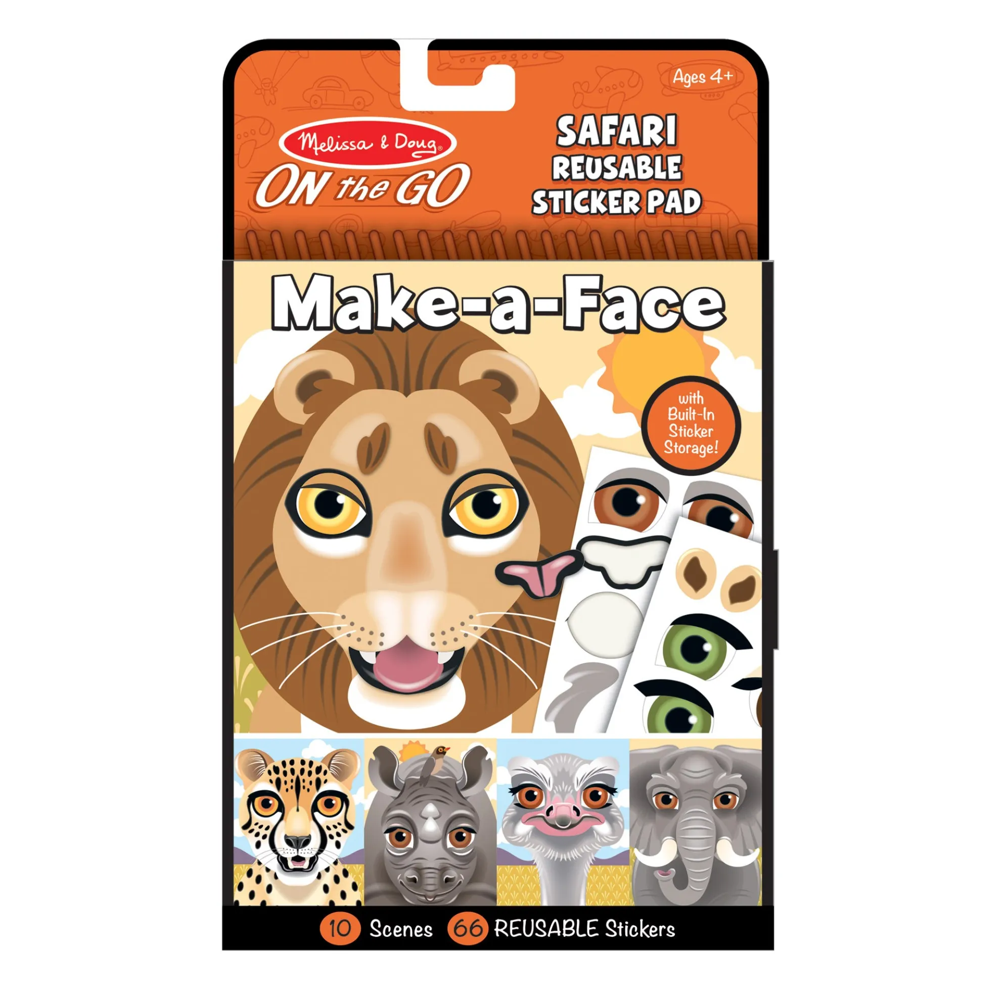 - Make fun and funny safari animal faces again and again with this reusable On the Go sticker pad