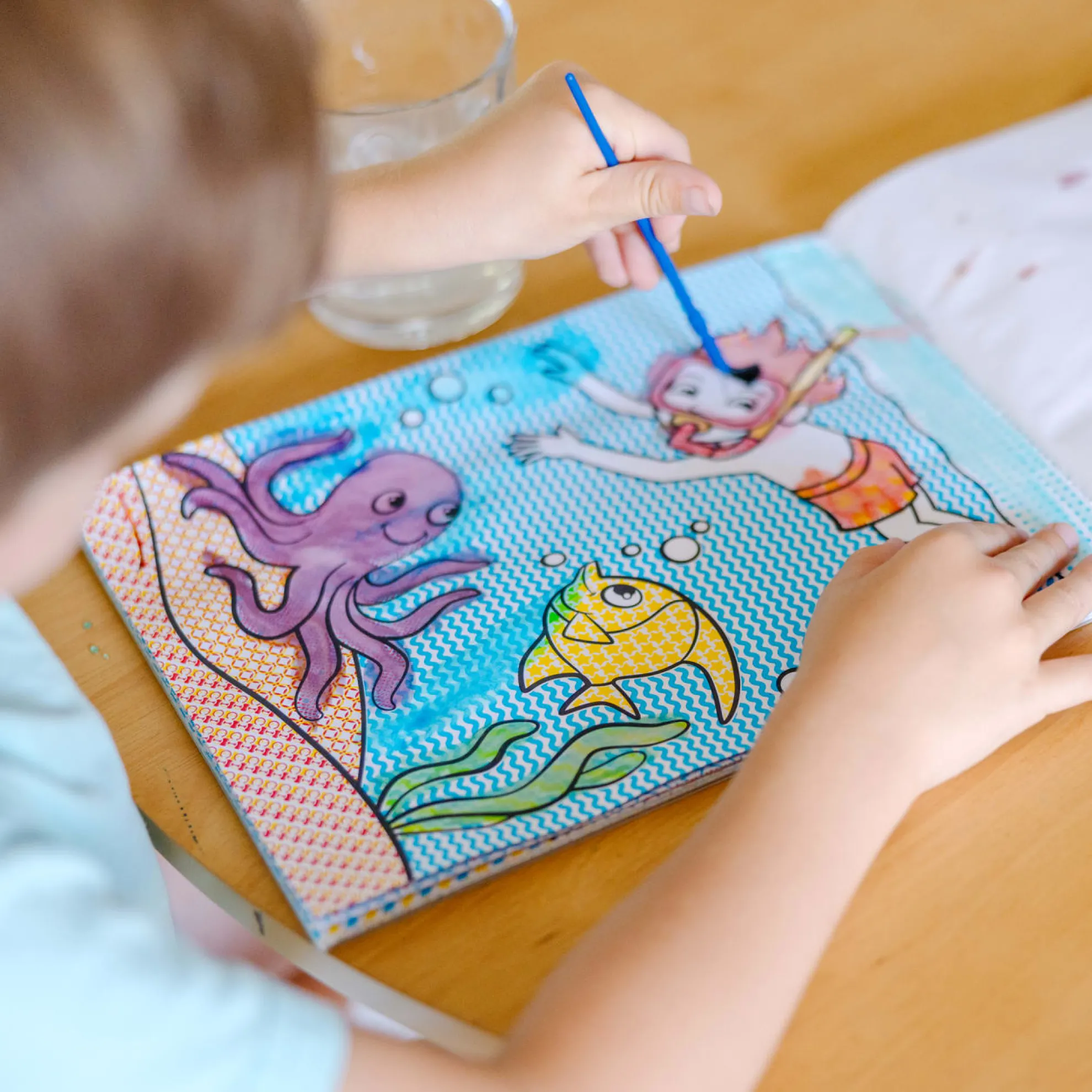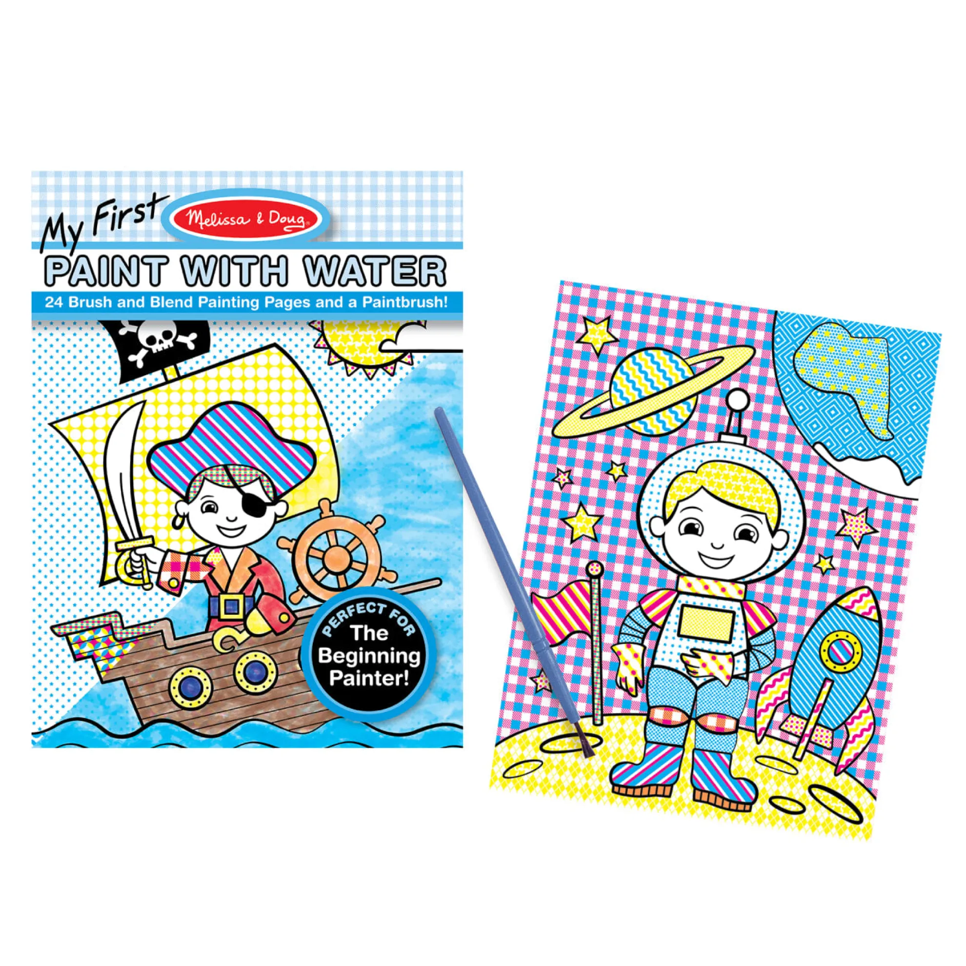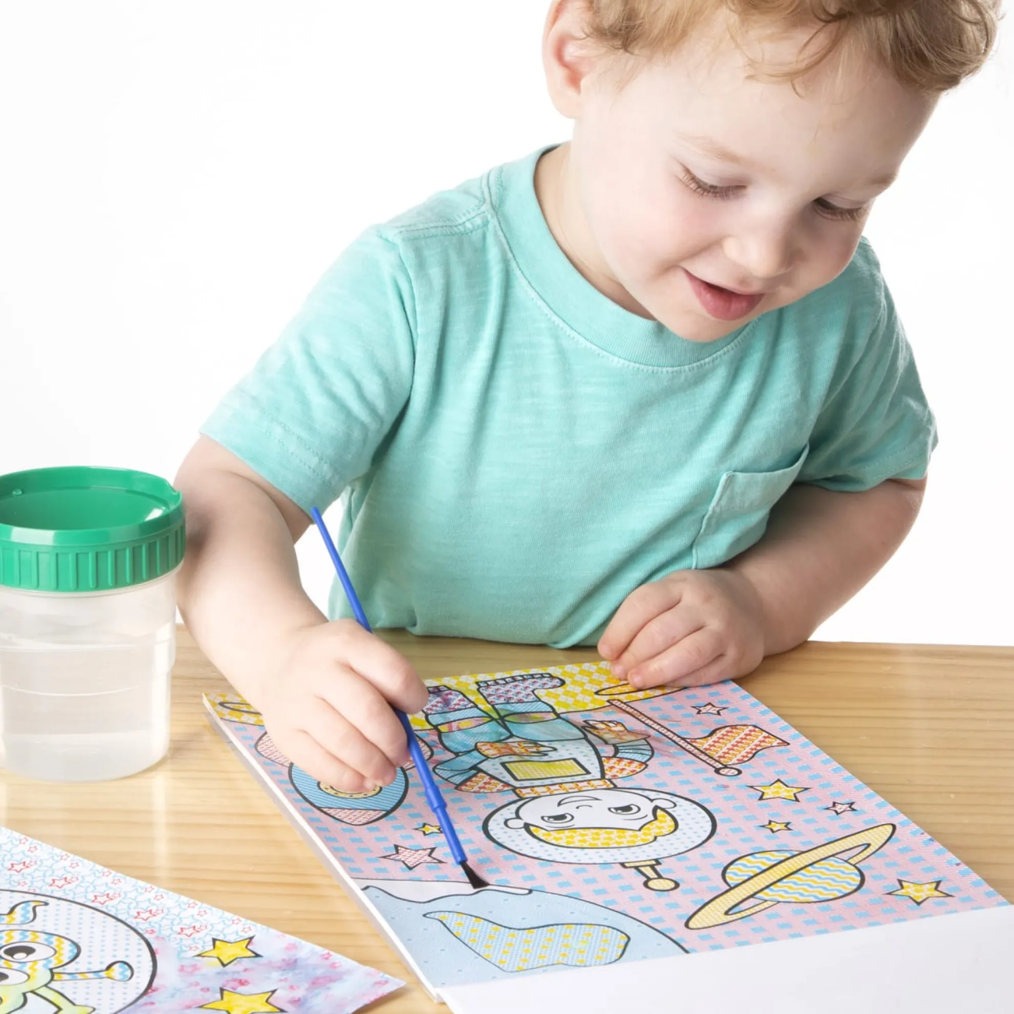This paint-with-water kids’ art pad lets little ones enjoy “painting”–with no messy paint spills! 24 brush-and-blend pages are filled with pretty outlined scenes, with pigment patterns printed right inside. The kids’ painting set includes a paintbrush, so all you add is water: Just brush it on to make the colors come to life and the pictures fill with vibrant color! This painting kit for kids is an ideal first art activity and a great kids’ party favor, too!