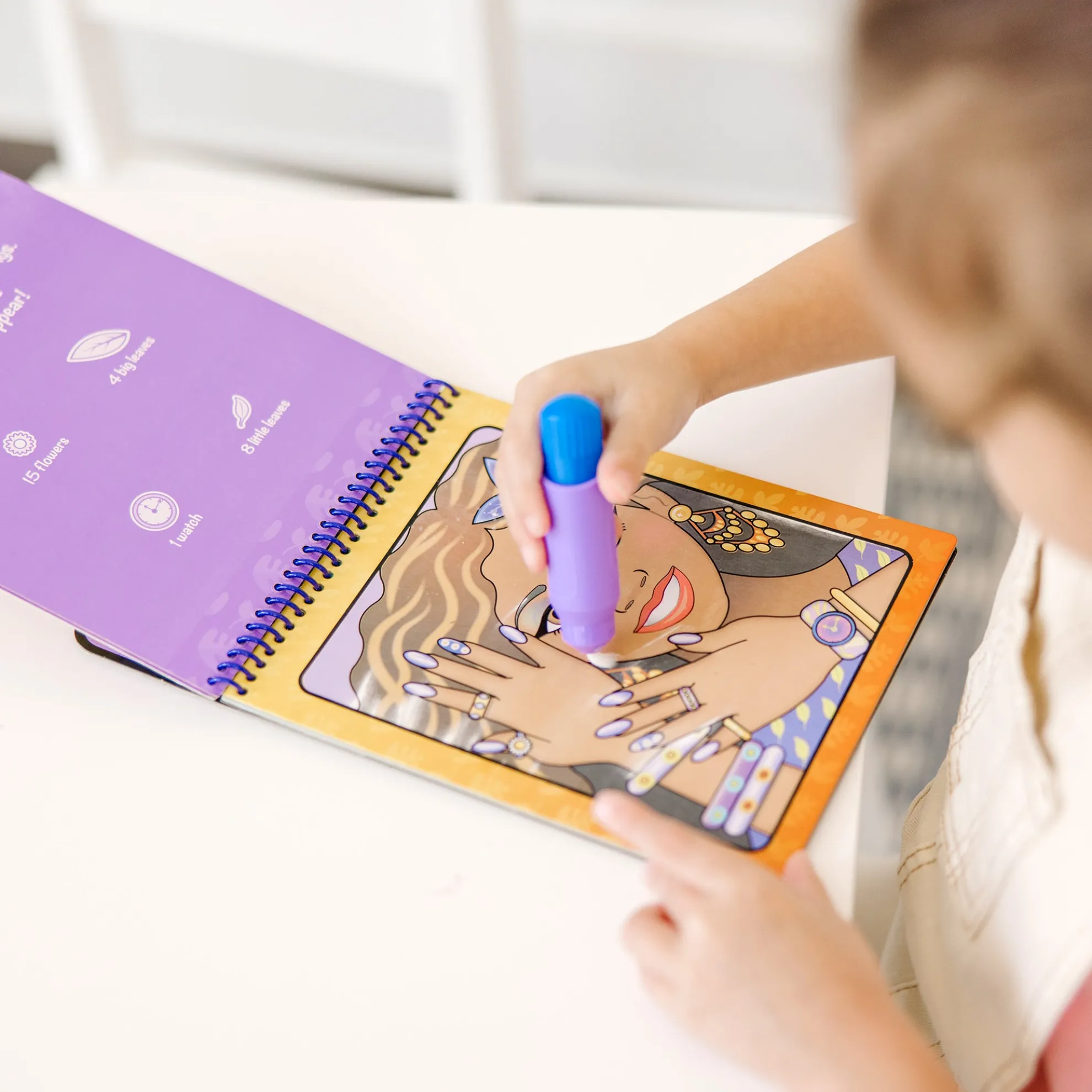 No-mess painting for kids! This exciting paint-with-water coloring book includes four reusable pages and a refillable water pen. Simply fill the pen with water and color in each scene–details and vibrant color appear with every stroke! Then let the pages dry to erase the pictures and fill them out again and again. This makeover-themed book includes four scenes of young ladies with beautiful makeup and accessories to color, plus search-and-find activities for each scene. The chunky-sized water pen is easy for kids to hold and stores neatly right in the front cover, so Water Wow! makes an ideal travel activity book and travel toy. This product is certified by the Forest Stewardship Council. FSC certification ensures that products come from responsibly managed forests that provide environmental, social, and economic benefits, and that forests are protected for future generations. Please note that FSC certification applies to new inventory only (FSC C156584)