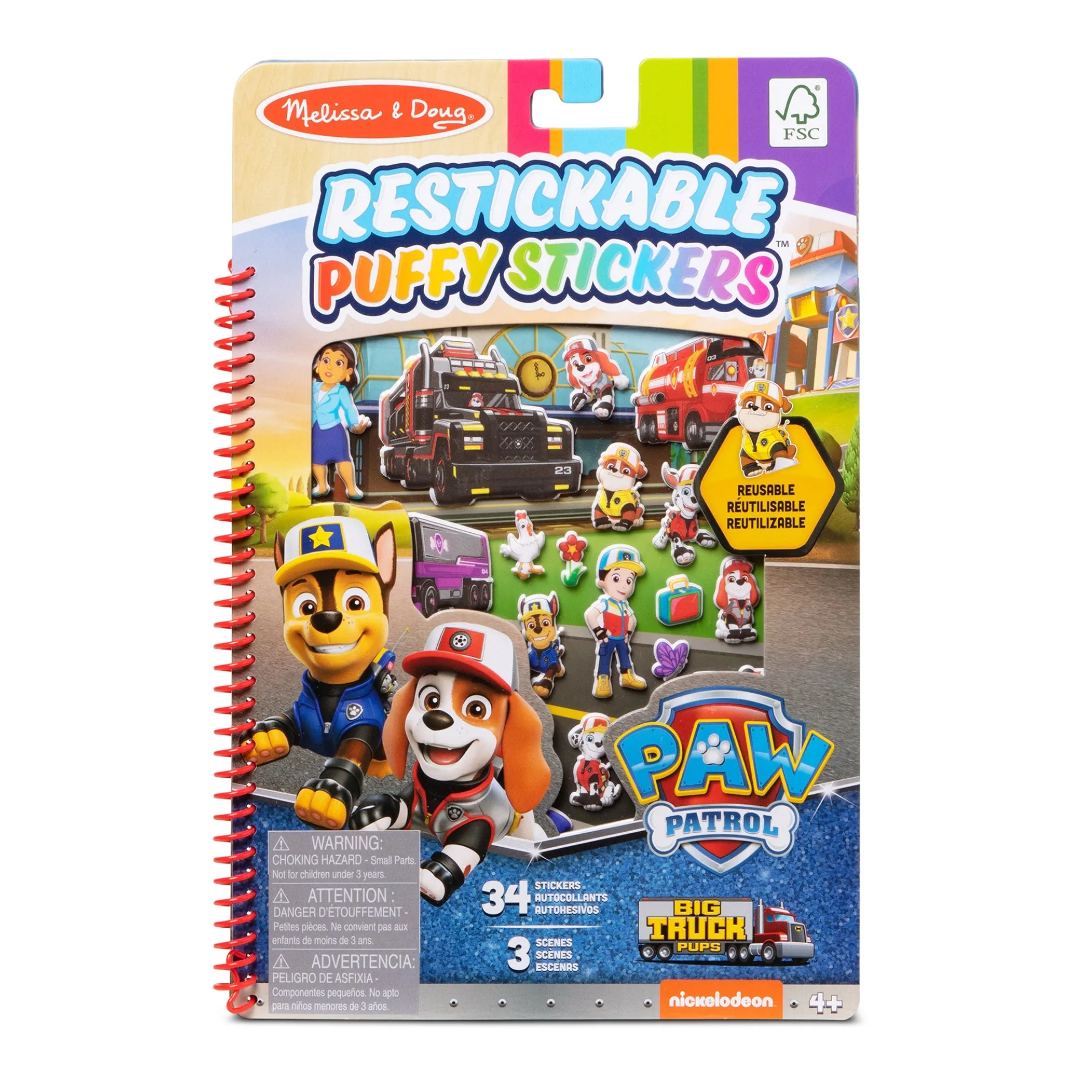Restickable Puffy Stickers let kids create PAW Patrol™ adventures again and again! Tell countless stories with these fun dimensional stickers and scenes. Just place and layer the Big Truck Pups puffy stickers onto the glossy fold-out scenes. Ready for a story change? It’s easy to lift, switch, and rearrange it all to depict whatever pup-filled tale a child can imagine! The built-in sticker collection—34 reusable puffy stickers in all–offers lots of opportunities for kids to express their creativity while improving fine motor and communication skills. The spiral-bound format is great for travel, too. PAW Patrol™ is always ready to help, inspiring preschoolers with a blend of teamwork, adventure, and humor as they develop social, emotional, and developmental skills through play. This product is certified by the Forest Stewardship Council. FSC certification ensures that products come from responsibly managed forests that provide environmental, social, and economic benefits, and that forests are protected for future generations. Please note that FSC certification applies to new inventory only (FSC C156584)