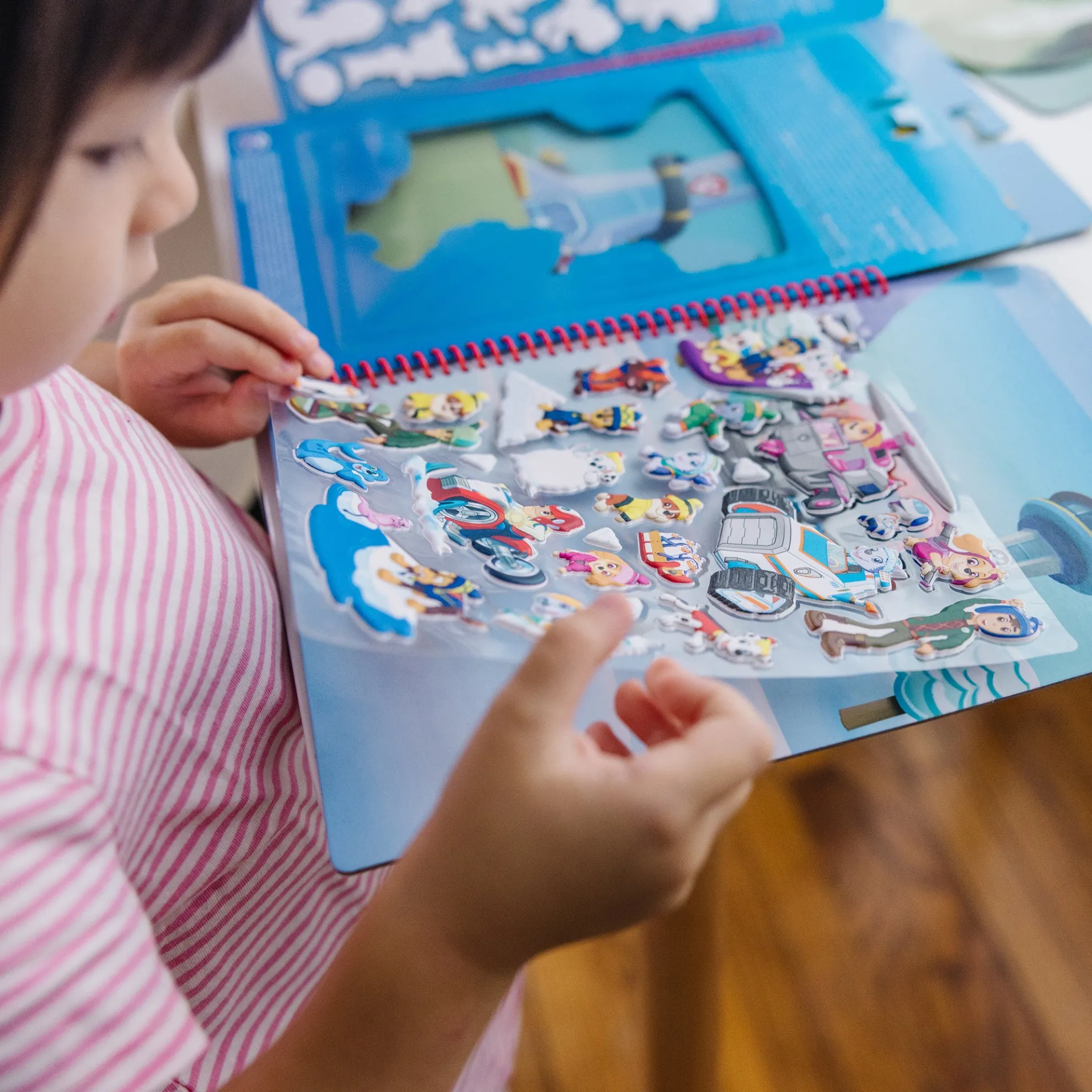 Restickable Puffy Stickers let kids create PAW Patrol adventures again and again! Tell countless stories with these fun dimensional stickers and scenes. Just place and layer the Jake’s Mountain puffy stickers onto the glossy fold-out scenes. Ready for a story change? It’s easy to lift, switch, and rearrange it all to depict whatever pup-filled tale a child can imagine! The built-in sticker collection – 27 reusable puffy stickers in all–offers lots of opportunities for kids to express their creativity while improving fine motor and communication skills. The spiral-bound format is great for travel, too. PAW Patrol is always ready to help, inspiring preschoolers with a blend of teamwork, adventure, and humor as they develop social, emotional, and developmental skills through play.