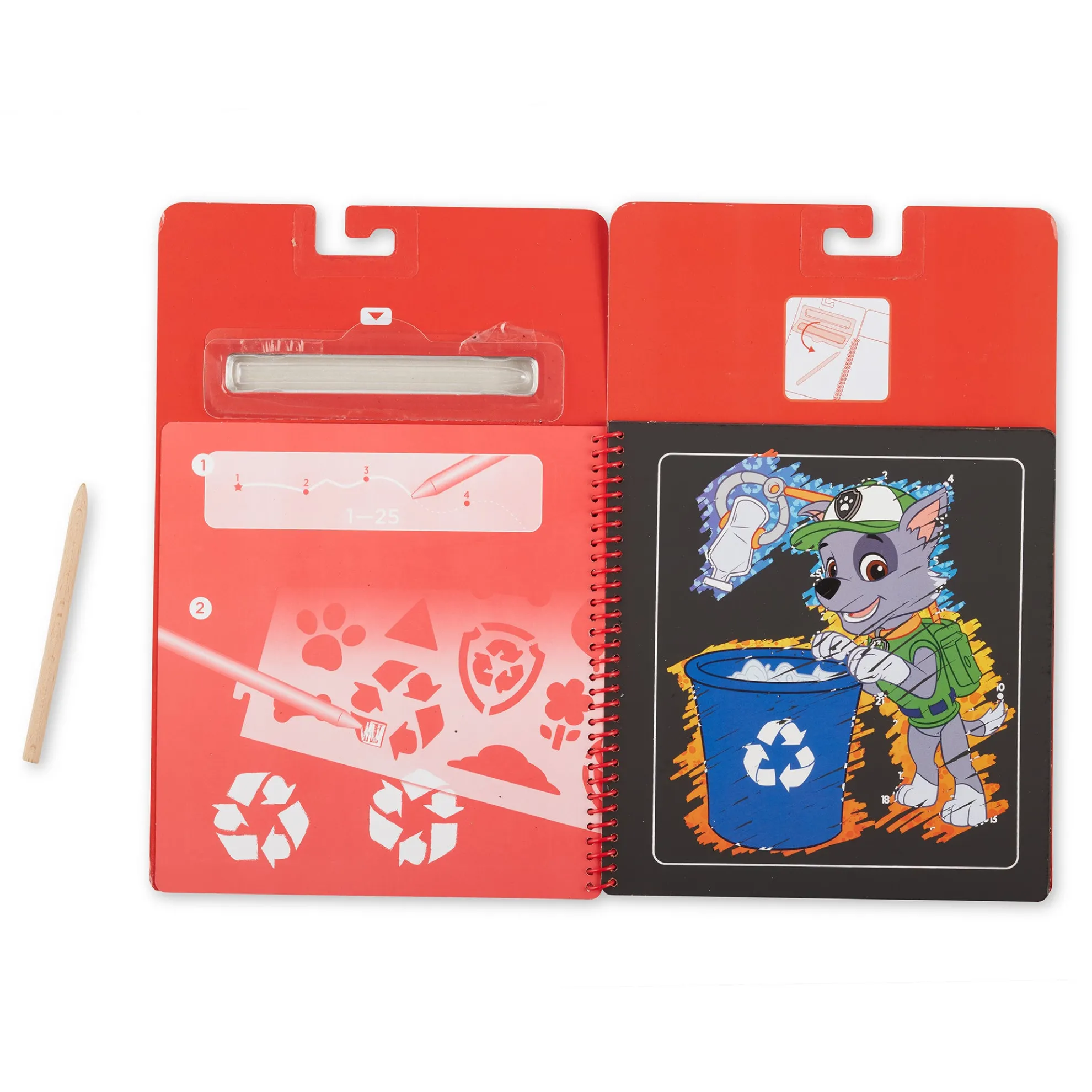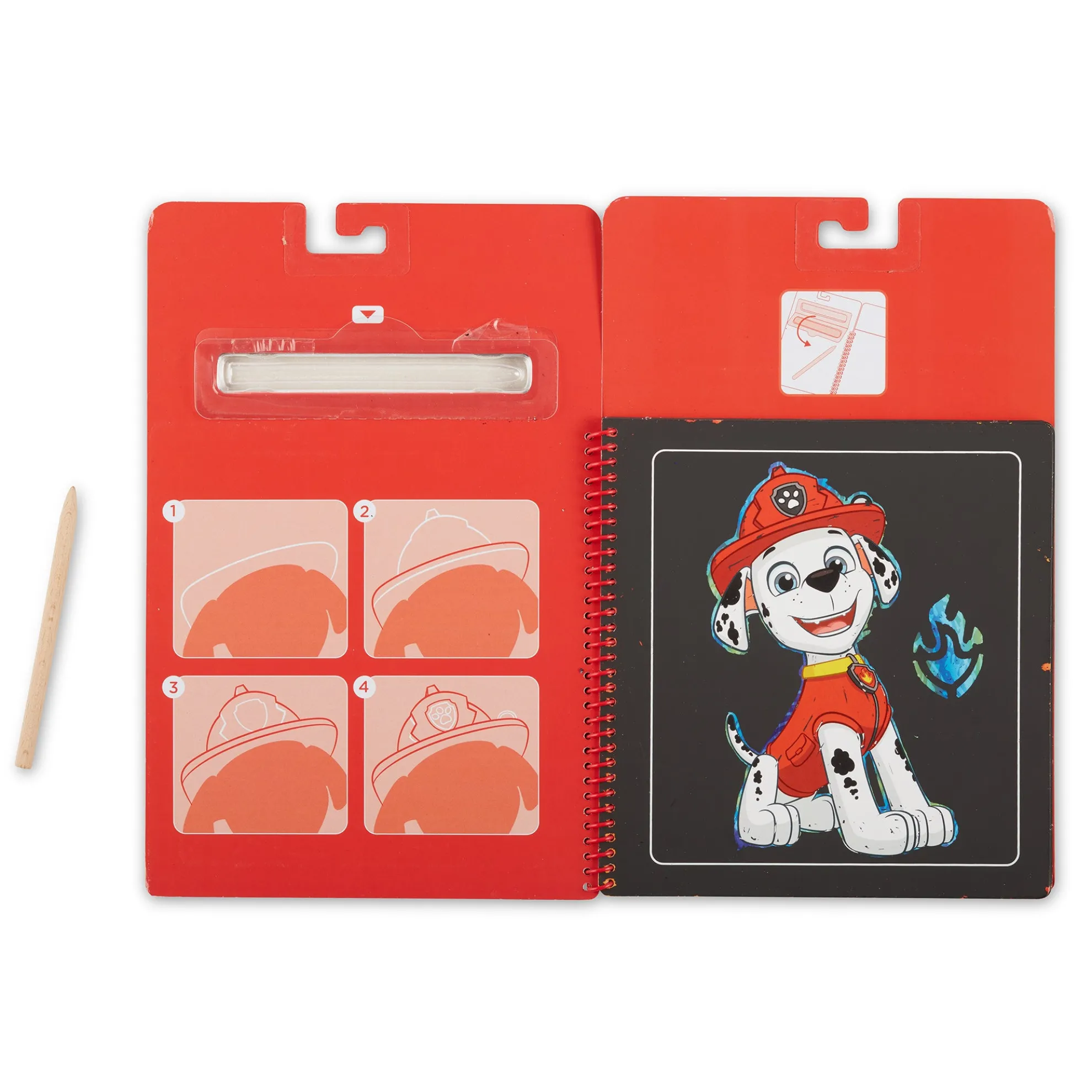 - 10 Scratch Art scenes featuring PAW Patrol pup Marshall and friends with dot-to-dot or stencil activities on each page