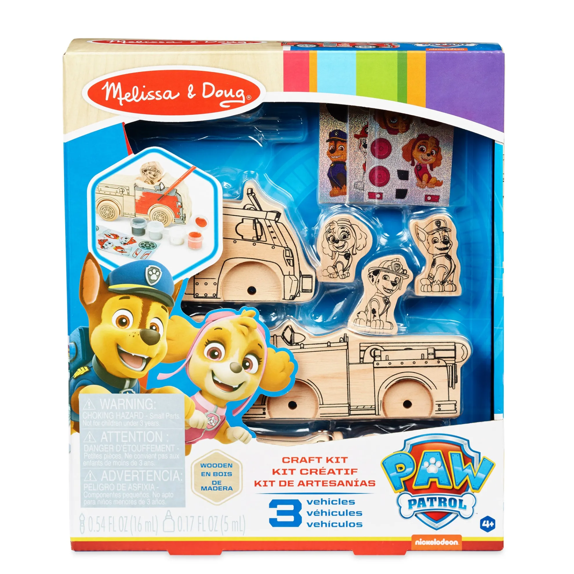 - Wooden PAW Patrol™ vehicles and removable play figures (Chase, Marshall, and Skye) to build and decorate with paint and foil stickers