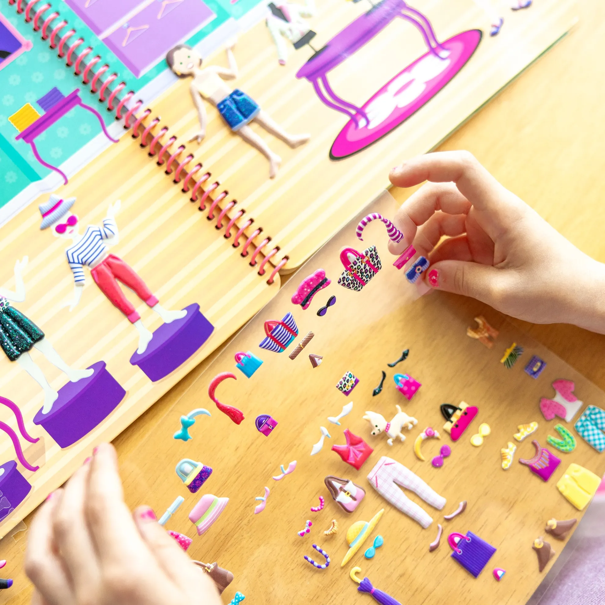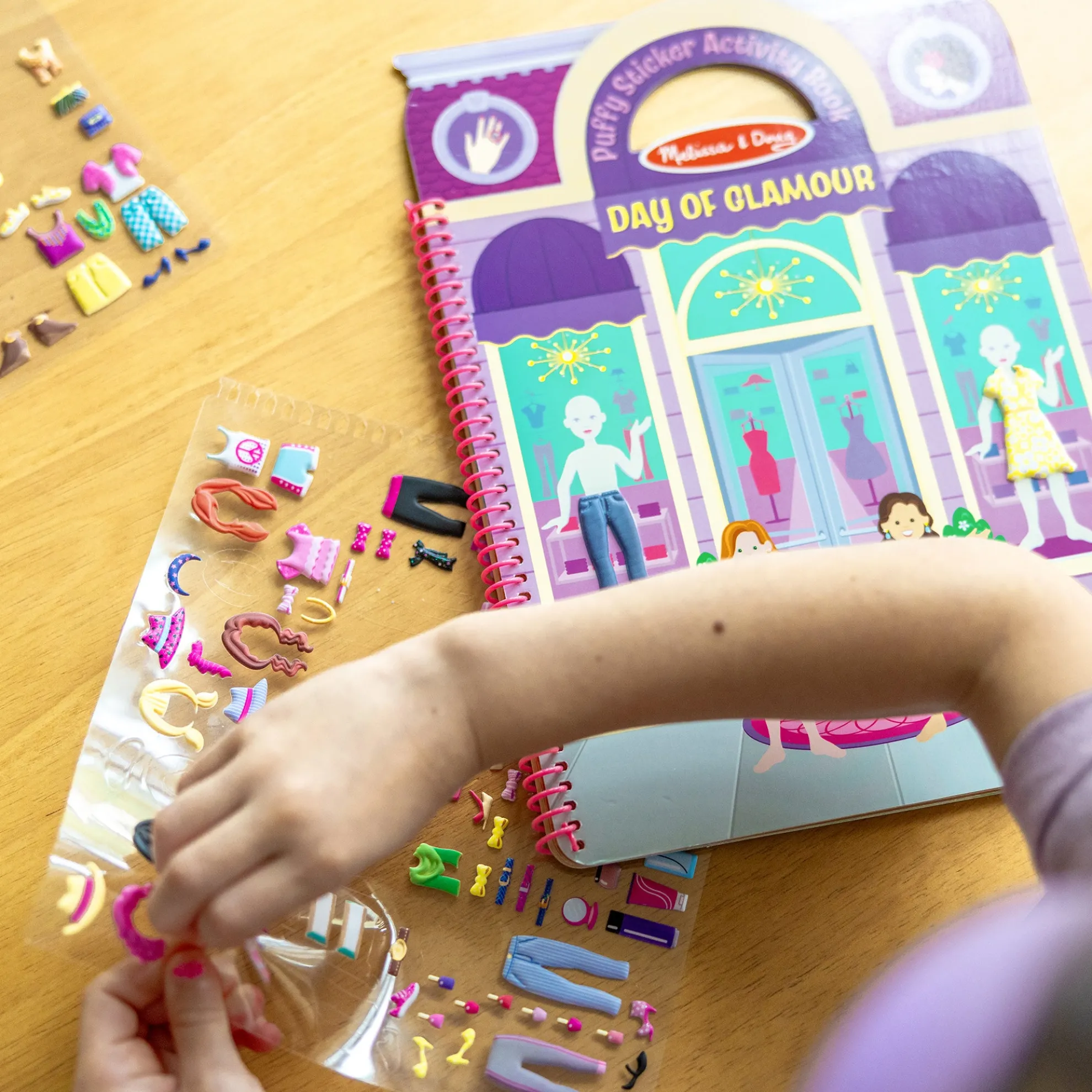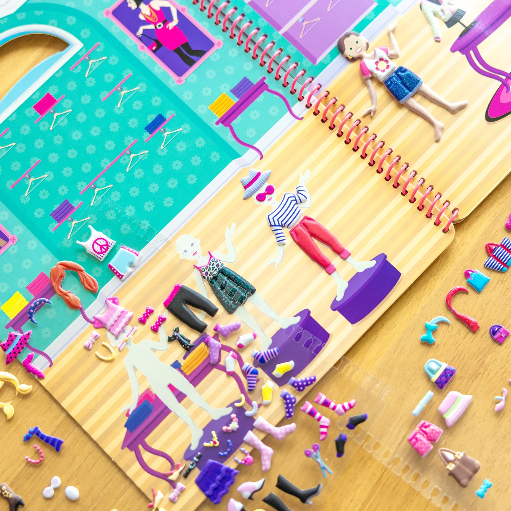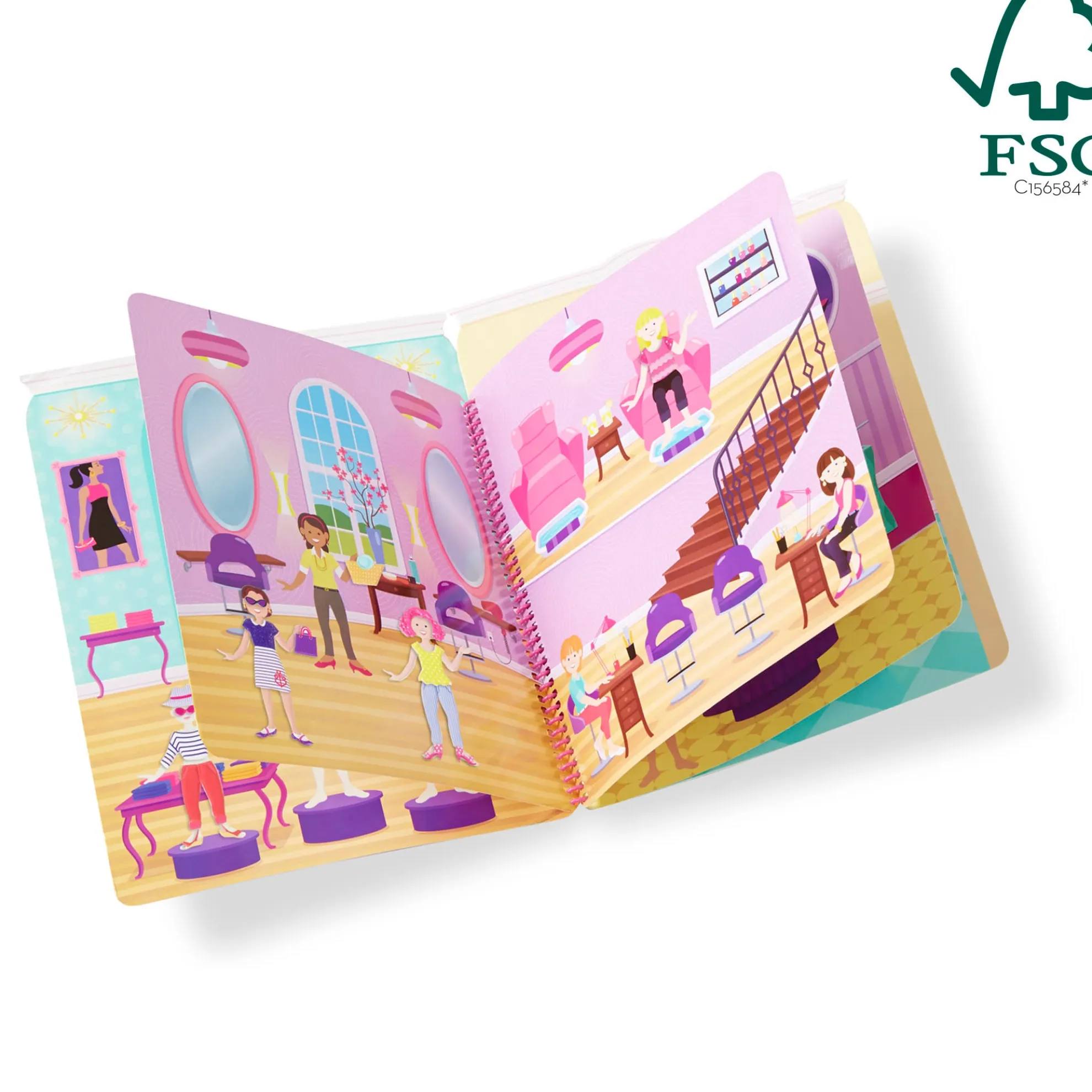 Day of Glamour Puffy Sticker Activity Book lets kids tell a sticker story filled with fashion fun! The spiral-bound book contains 10 sturdy background scenes, each one a fabulous backdrop for the characters to shop, relax, or be pampered. Character stickers can be layered with fashion stickers to create stylish ensembles that move with them through the book . . . or lift cleanly away to change outfits again and again. There are 196 stickers in all to fill the 10 reusable scenes, including a fashion boutique, shoe salon, spa, makeup counter, and more. Just open the book to be part of the fashion adventure! This product is certified by the Forest Stewardship Council. FSC certification ensures that products come from responsibly managed forests that provide environmental, social, and economic benefits, and that forests are protected for future generations. Please note that FSC certification applies to new inventory only (FSC C156584)