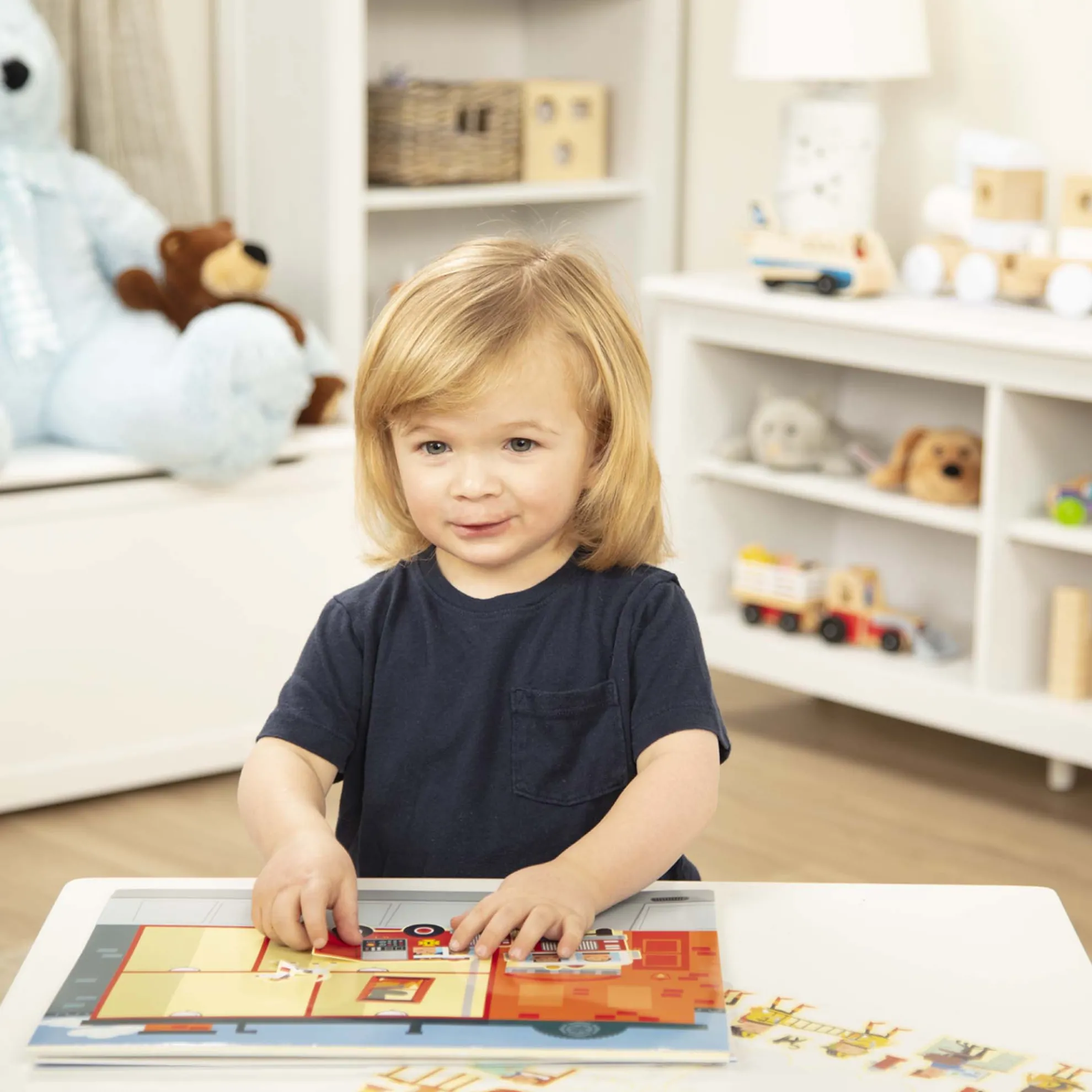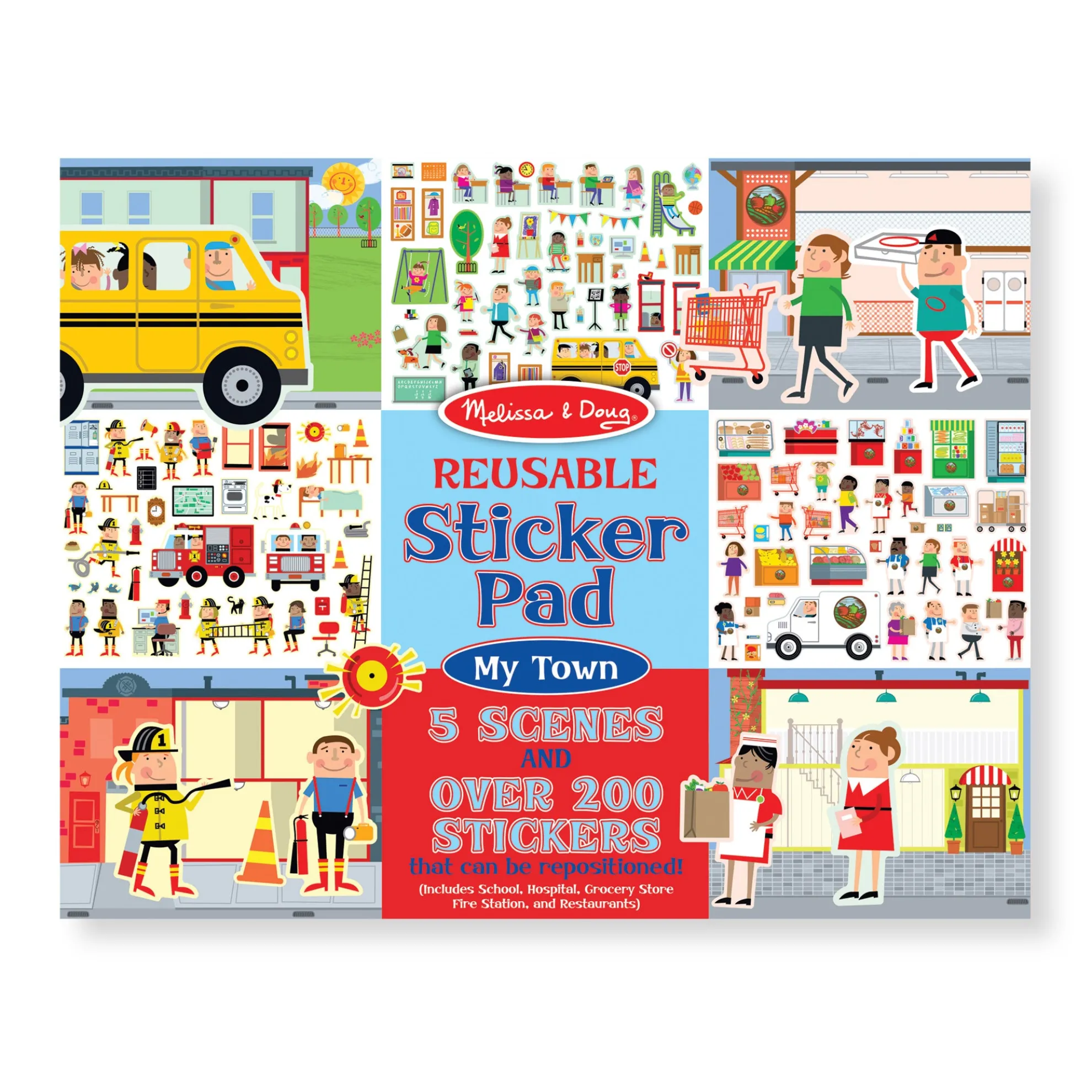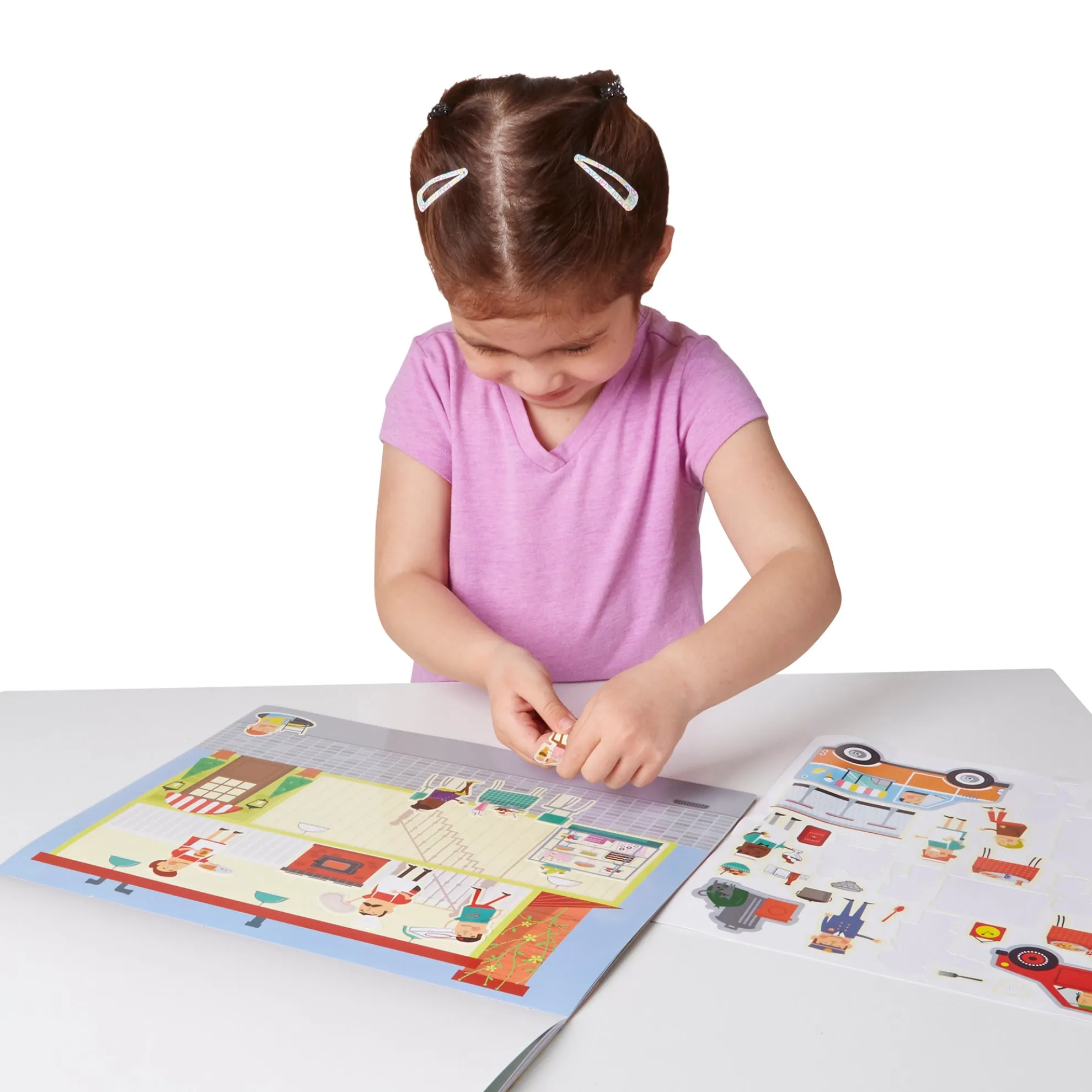 Over 200 reusable stickers include characters, vehicles, and furniture to fill five reusable play scenes! Glossy reusable backgrounds feature a school, grocery store, restaurant, hospital, and fire house, all with inviting cross-section art to encourage imaginative play and storytelling. The cling-style stickers are easy to place, peel, and reposition, and the oversize background scenes and sticker pages tear out cleanly to arrange side by side, or to pass around and share with a group. Great for fine motor skills, narrative thinking, communication skills, and creative expression. This product is certified by the Forest Stewardship Council. FSC certification ensures that products come from responsibly managed forests that provide environmental, social, and economic benefits, and that forests are protected for future generations. Please note that FSC certification applies to new inventory only (FSC C156584)