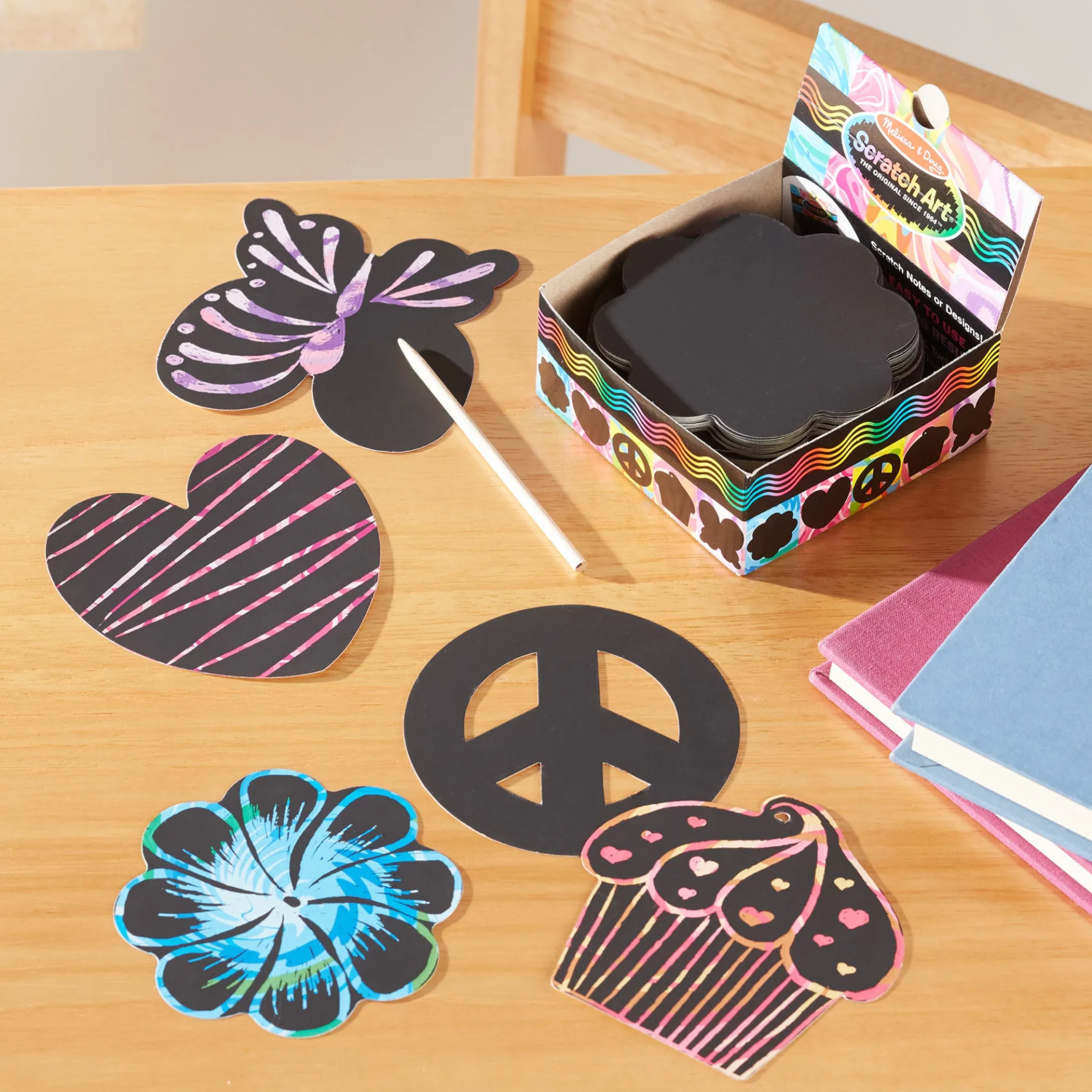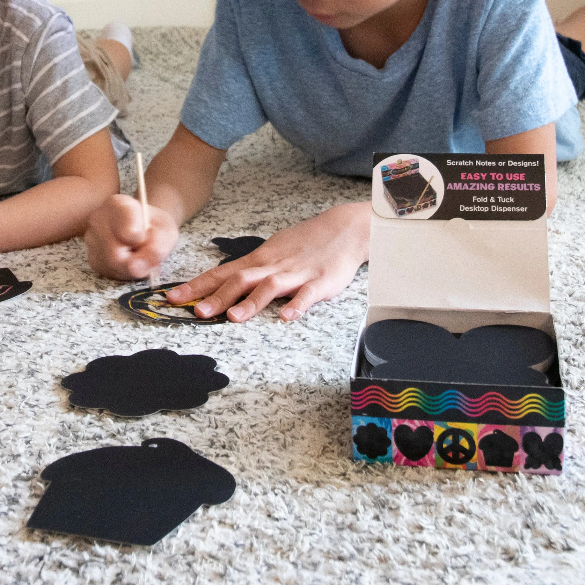 - Scratch messages, doodles, designs, pictures, patterns, and more on shaped Scratch Art® notes to reveal swirls of color and create unique messages, works of art, gift tags, and more