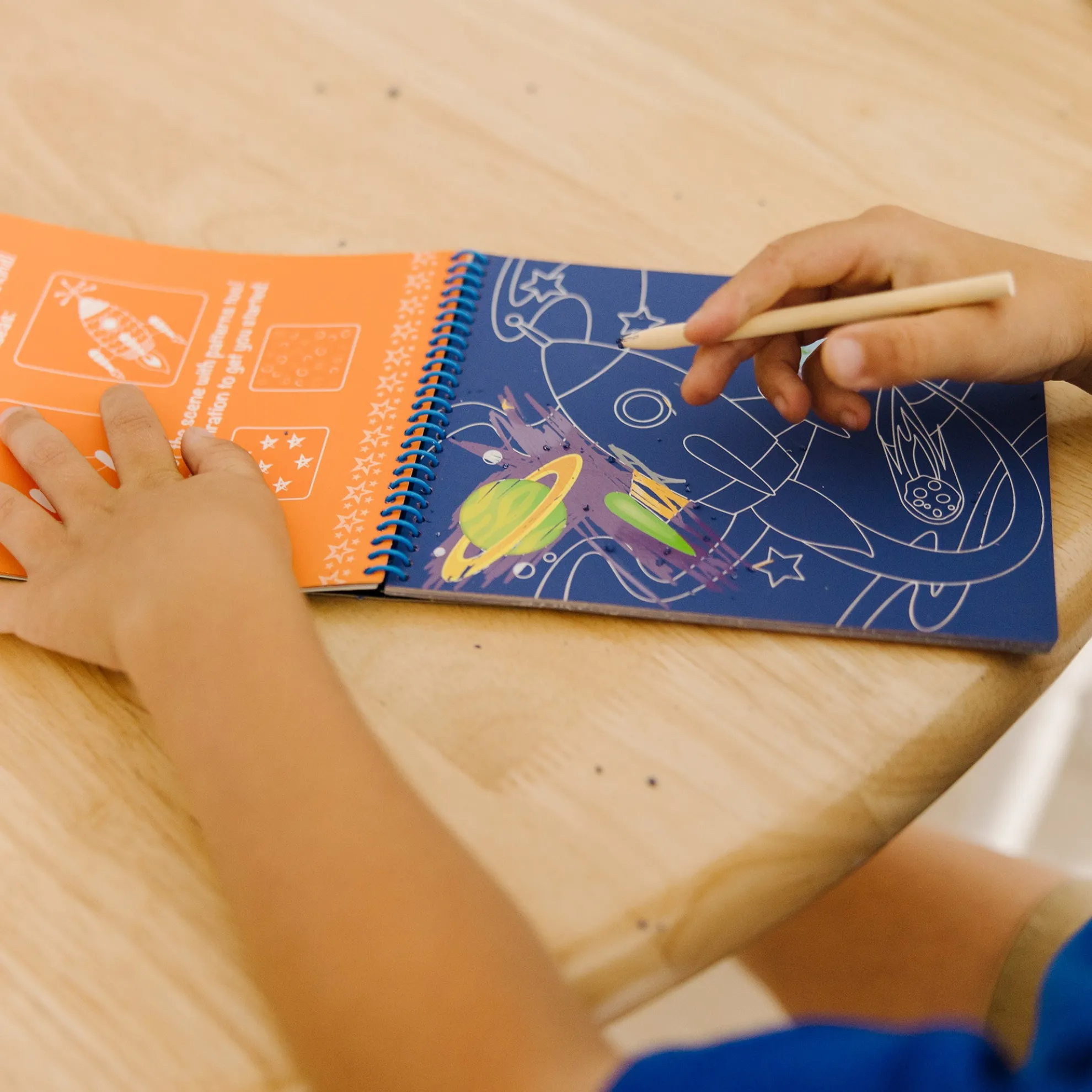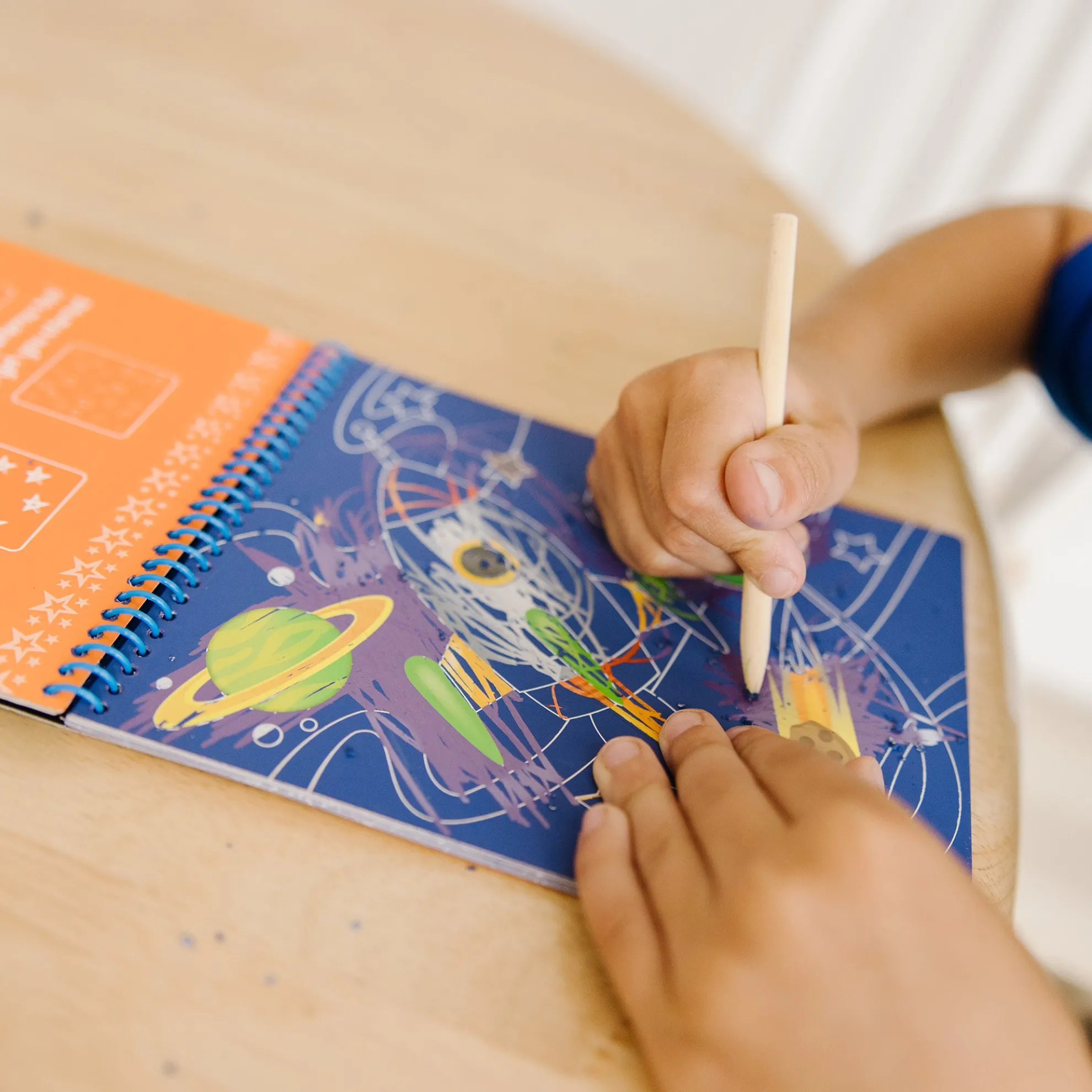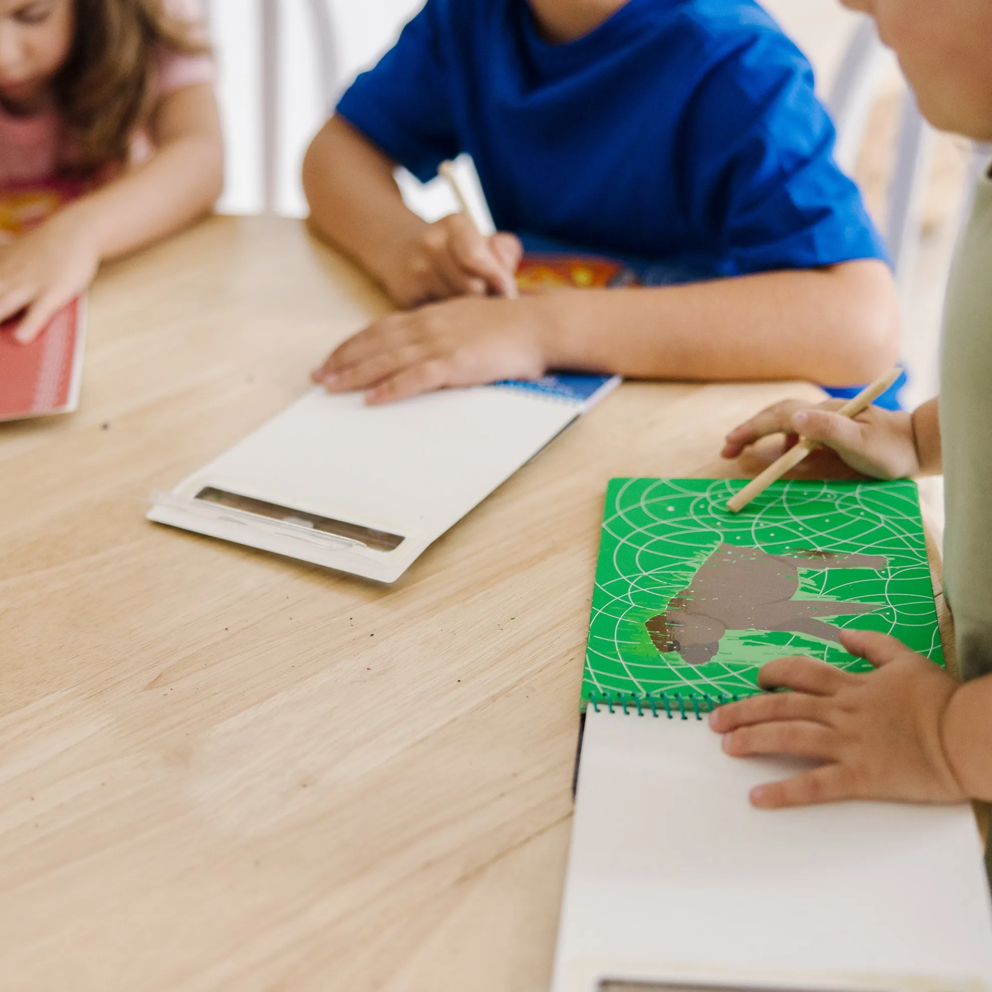 - 3 spiral-bound Scratch Art activity padsAges 5+; 6″ x 10″ pads