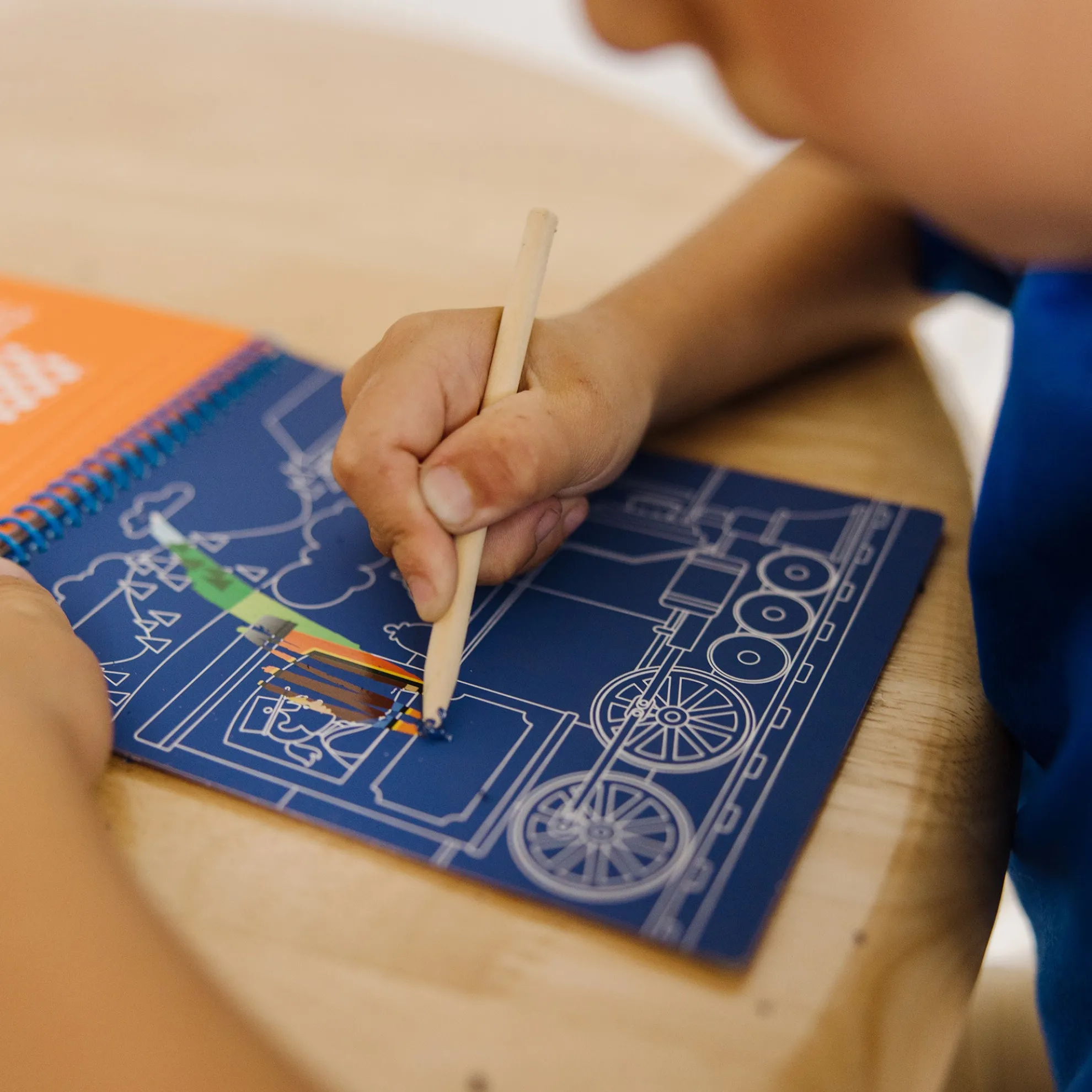 These all-inclusive and self-storing compact Scratch Art books bring the fun anywhere kids may go. Kids can etch within the lines with the included wooden stylus to reveal 12 vehicle scenes, or to reveal hidden pictures of favorite safari animals and animal families! The spiral-bound pads feature built-in stylus storage, making it a self-contained craft project that’s perfect for families on the go! This product is certified by the Forest Stewardship Council. FSC certification ensures that products come from responsibly managed forests that provide environmental, social, and economic benefits, and that forests are protected for future generations. Please note that FSC certification applies to new inventory only (FSC C156584)