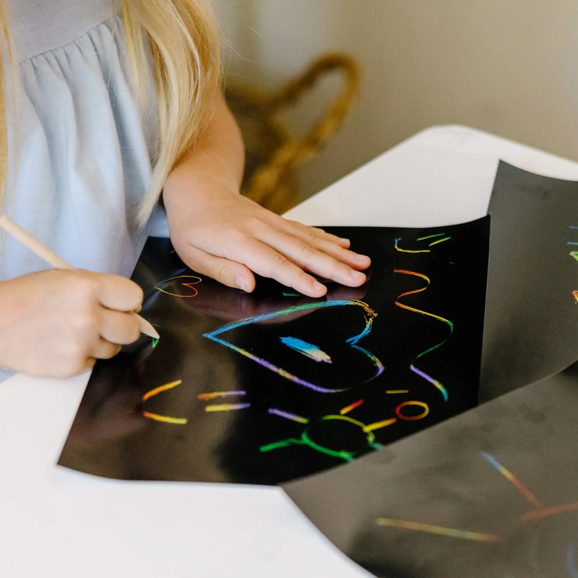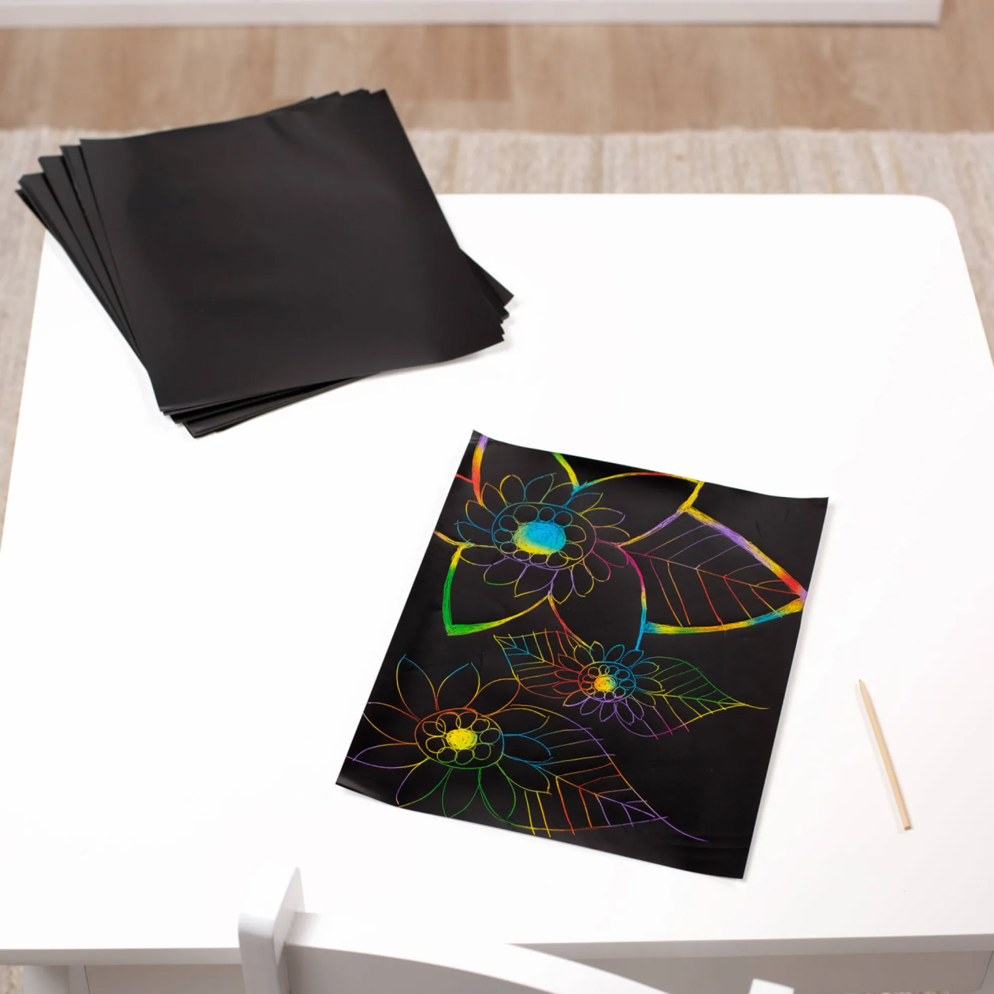 A perfect first Scratch Art experience! Simply scratch black-coated sheets with a wooden stylus (not included) to reveal brilliant colors. Spectacular results with no mess! Includes 50 sheets of 8.5 x 11″ paper.