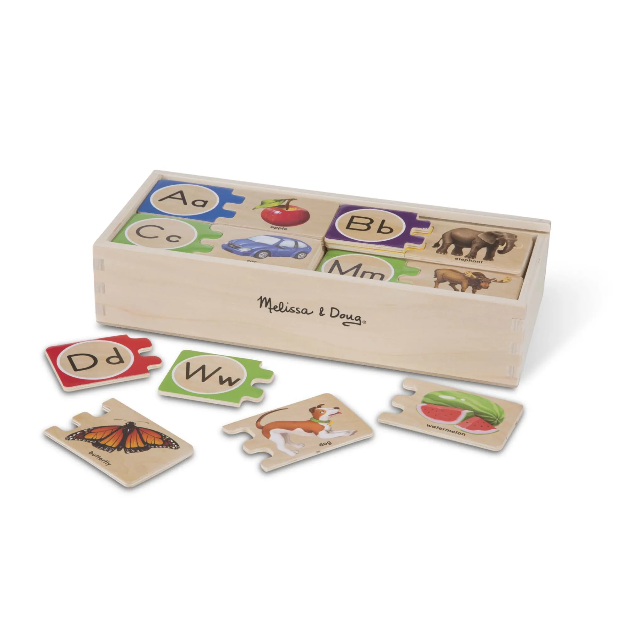 Kids can match these wooden puzzle pairs to make mastering letters as easy as A-B-C! A different object illustrates each letter of the alphabet shown in both upper and lower case, and the puzzles are self-correcting because each puzzle piece has only one match that fits. It’s a great way for children to play independently and learn at the same time. The puzzle includes 52 high-quality wooden pieces, and comes in a sturdy wooden box with a slide-in lid for easy storage and accessibility. The colorful puzzle pieces feature a familiar item to represent each letter ranging from an apple to a zebra. The Self-Correcting Alphabet Puzzles help kids practice letter recognition, matching and memory skills, eye-hand coordination, and fine motors skills. Finding the correct matching piece and solving a letter puzzle can also help kids feel a sense of pride and accomplishment. It makes a great gift for preschoolers and young learners ages four and older, for hands-on, screen-free play.