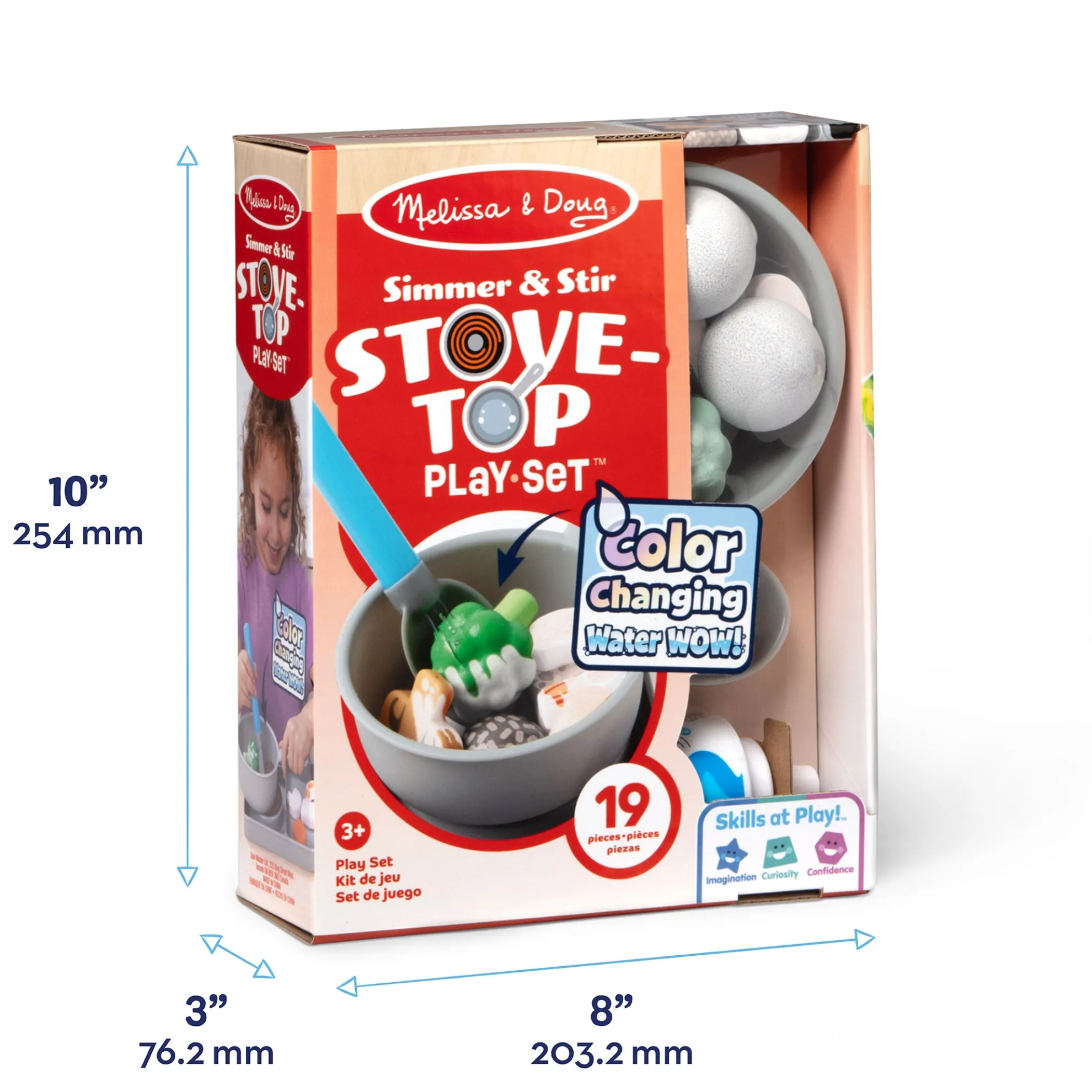 Satisfy hungry imaginations with Melissa & Doug Water WOW! color-changing play food stir fry! Drop play food into the pot or onto the stovetop griddle, squeeze water from the spoon or drip from the olive oil bottle, and watch colors change as food magically “cooks”! Little chefs can pretend to simmer mushrooms, carrots, and broccoli, sauté chicken, shrimp, and beans, and steam double-sided disks of rice, soup, spaghetti, and mac and cheese. Let the pieces dry and cook with water again and again!