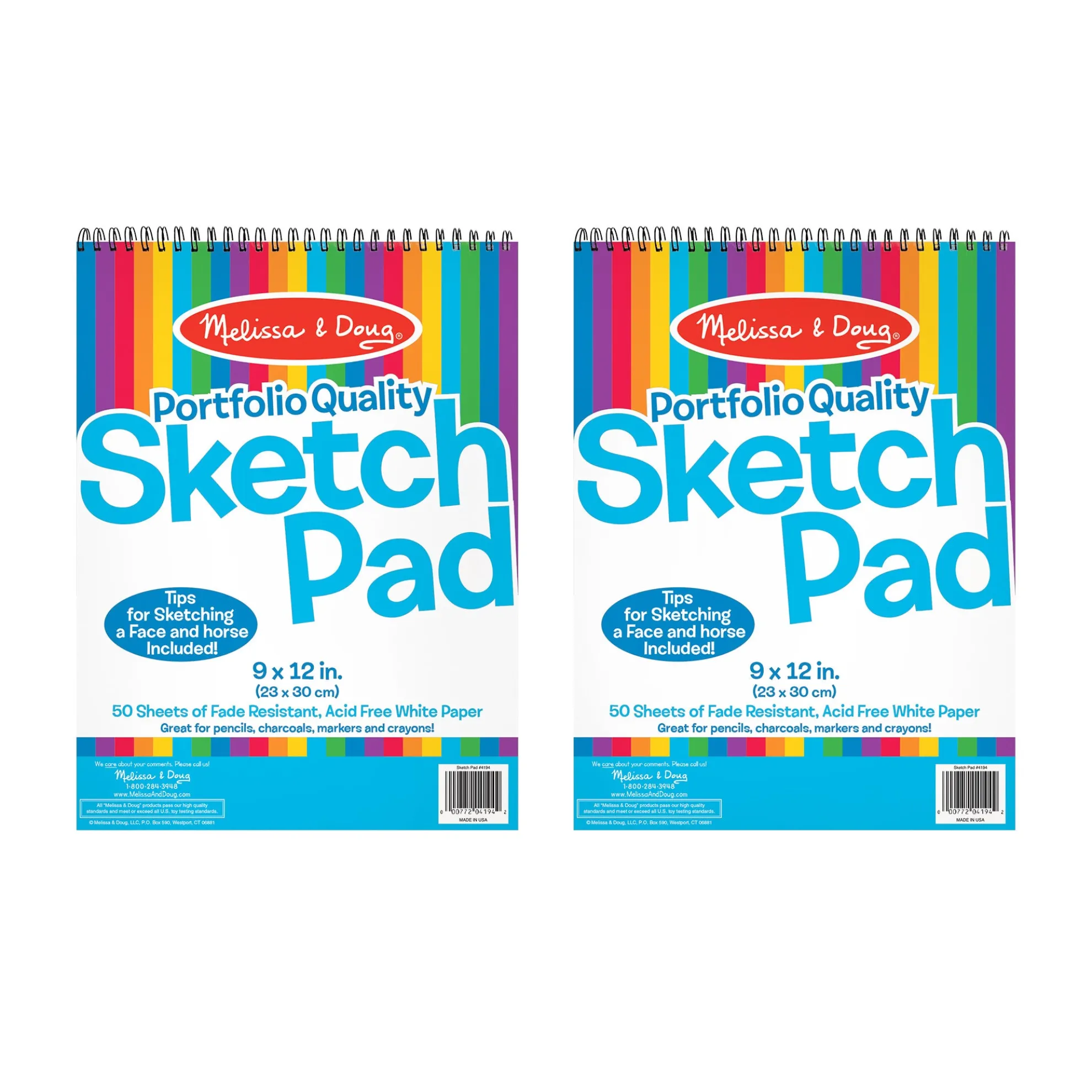 - SPIRAL-BOUND SKETCHPAD: The Melissa & Doug Sketch Pad 2-Pack features two 50-page spiral-bound full-size sketchpads measuring 9” x 12” that’s designed for the young artist on the go.