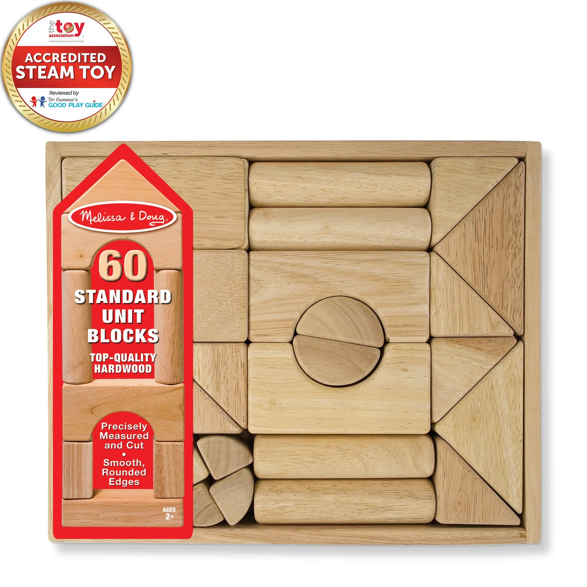 - 60 natural finished, smooth-sanded hardwood blocks to inspire hands-on, imaginative play