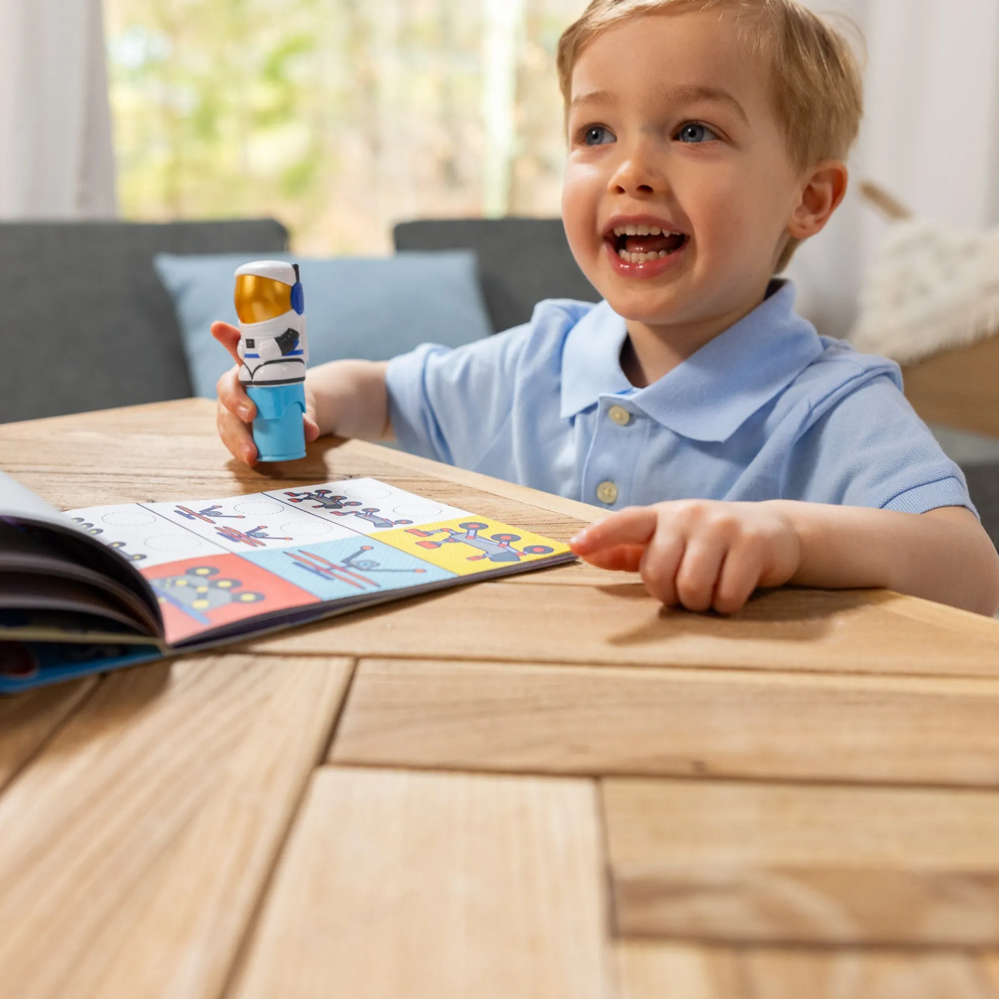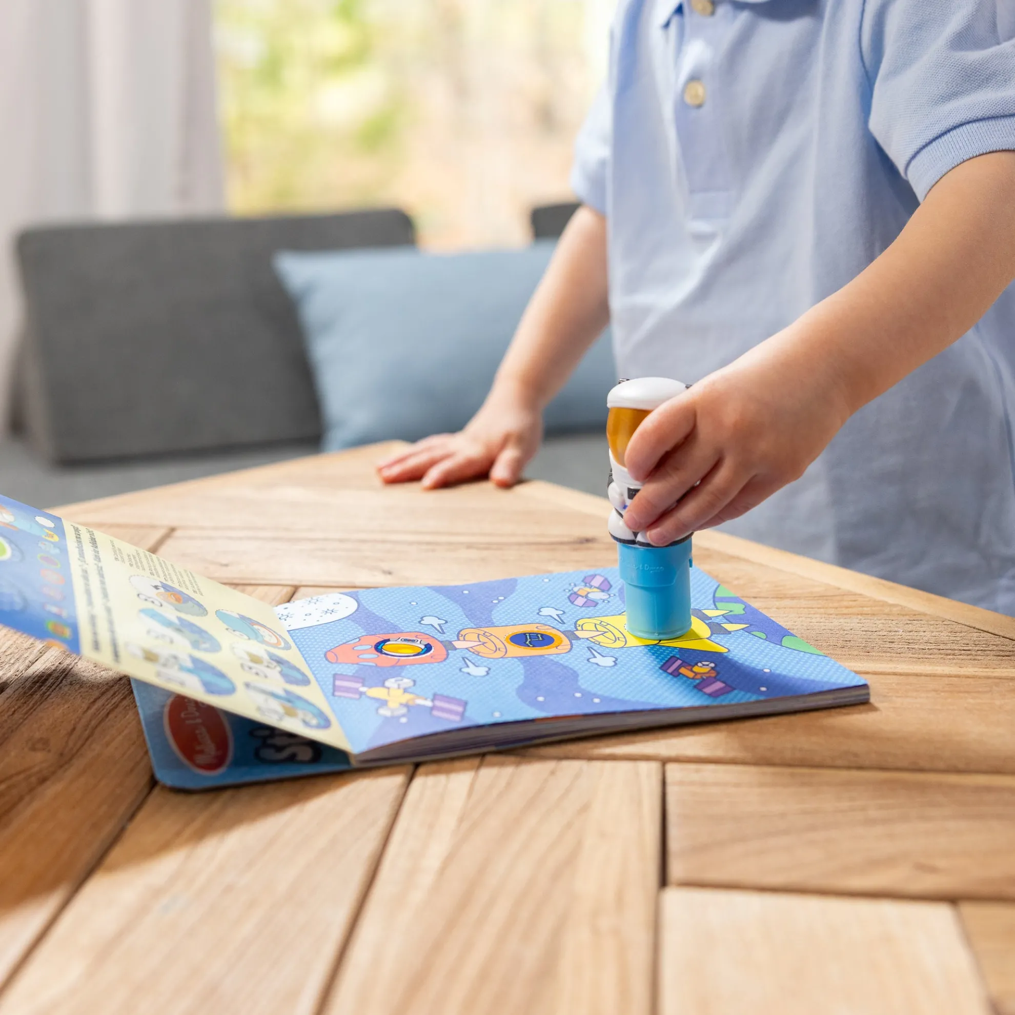 Melissa & Doug Sticker WOW!™ is a whole new way to play with stickers! Let the adorable, collectible Atlas the Astronaut stamp, stamp, stamp its way through 24 pages of fun-filled, space-themed counting, matching, and search-and-find activities. The refillable sticker stamper comes pre-loaded with a sticker stack of 300 assorted stickers – with 100 unique designs in every stack, each sticker is a surprise! Themed refill packs are sold separately and are compatible with any Sticker WOW!™ sticker stamper. Stickers are not reusable, but are easy to remove if necessary. Fill in the activity pages and use for creative art projects, such as bookmarks, posters, cards, and more. Easy-to-remove stickers and the convenient on-the-go format with built-in sticker stamper storage makes Sticker WOW!™ a great mess-free travel activity. Sticker WOW!™ (patent pending) promotes fine motor skills, encourages creative play, and it’s satisfying, fidget fun! This product is certified by the Forest Stewardship Council. FSC certification ensures that products come from responsibly managed forests that provide environmental, social, and economic benefits, and that forests are protected for future generations. Please note that FSC certification applies to new inventory only (FSC C156584)