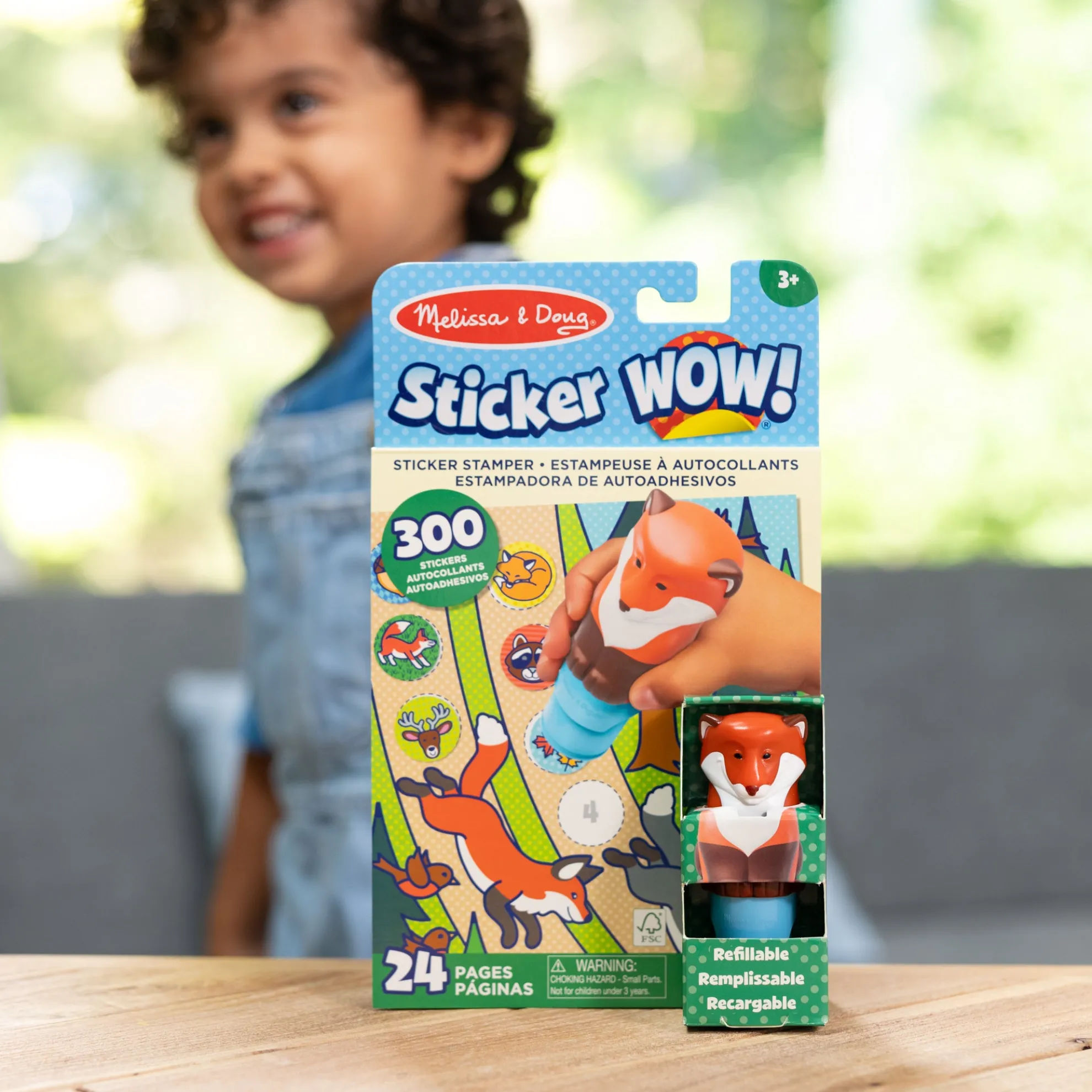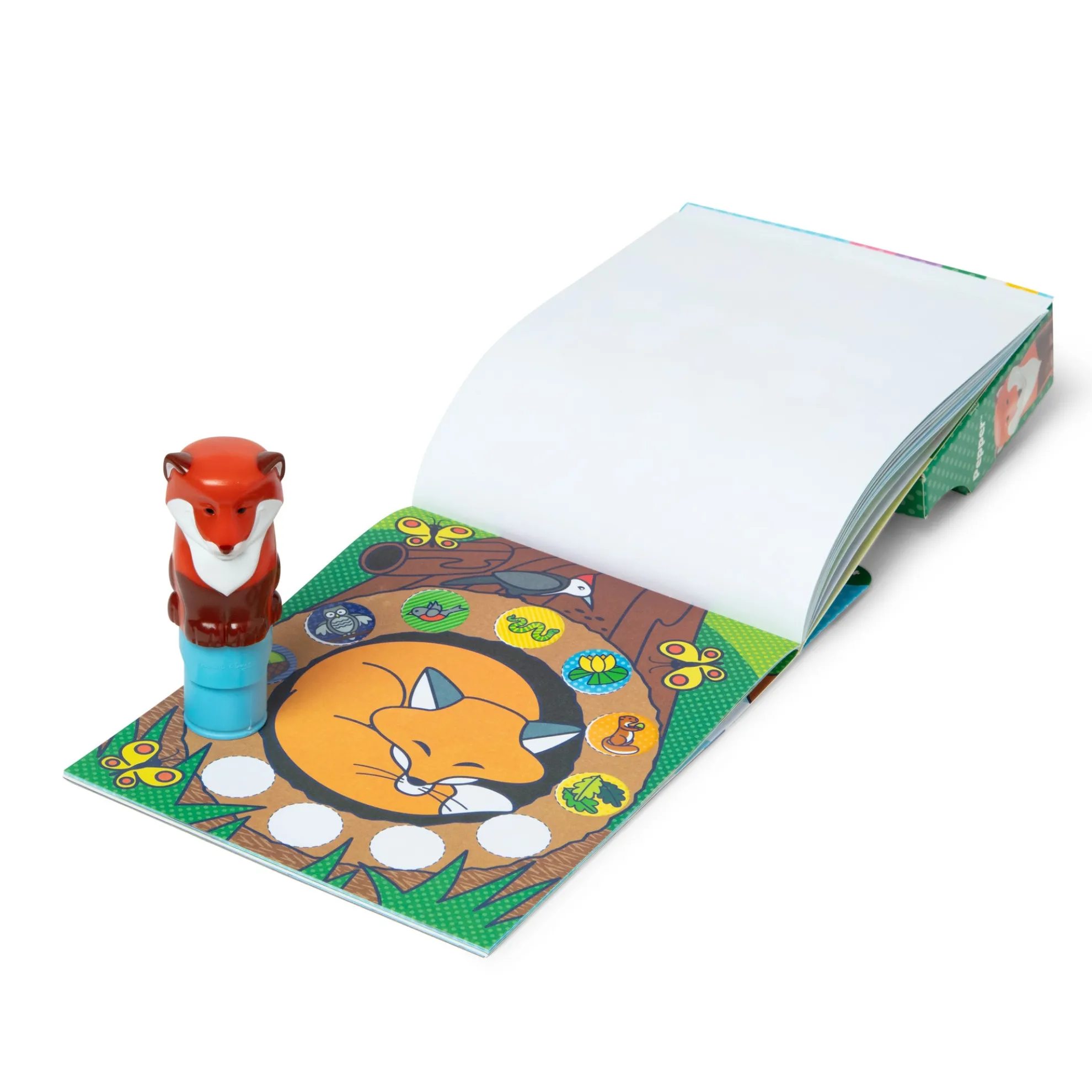 - Melissa & Doug Sticker WOW!™ is a whole new way to play with stickers – use the cute, collectible character to stamp woodland-themed stickers on the 24-page Fox activity pad and on other creative art projects