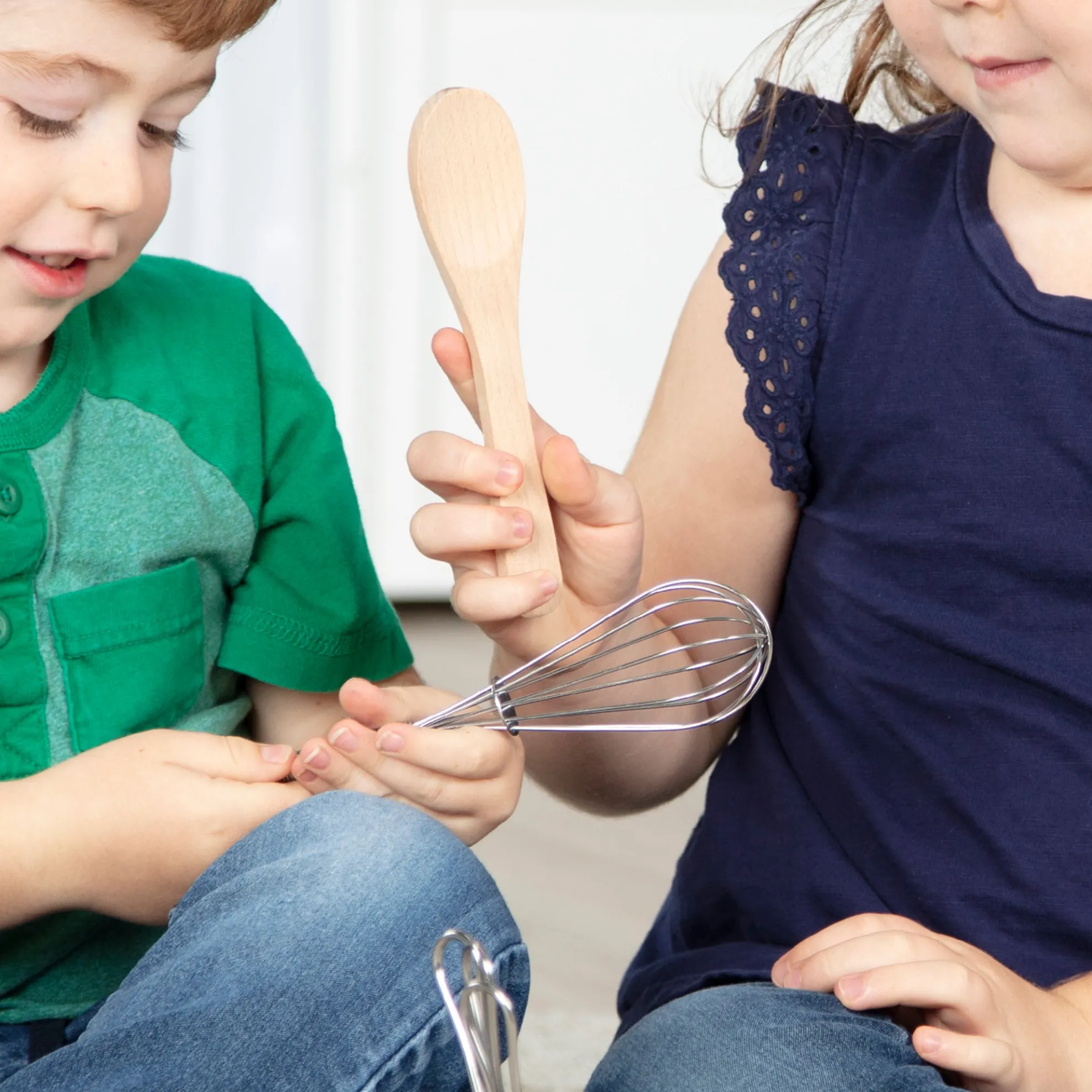 - Shiny metal and wooden utensils for pretend play that look like the real thing