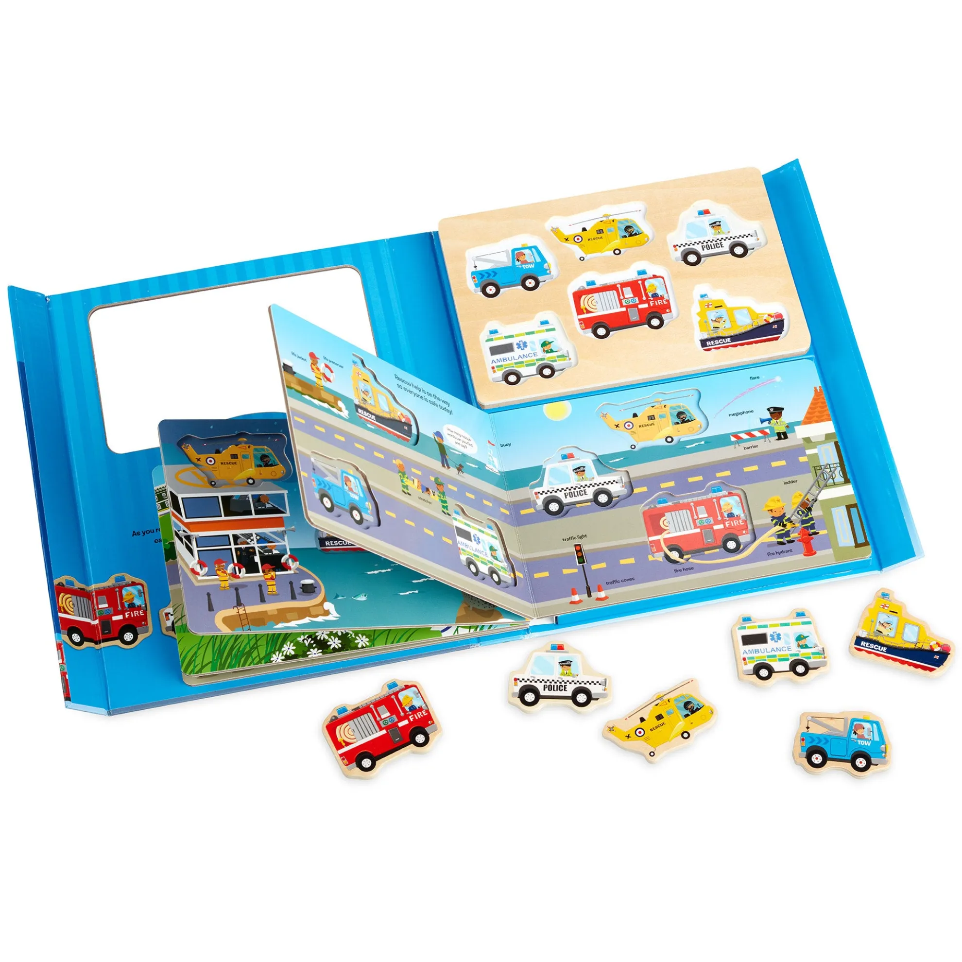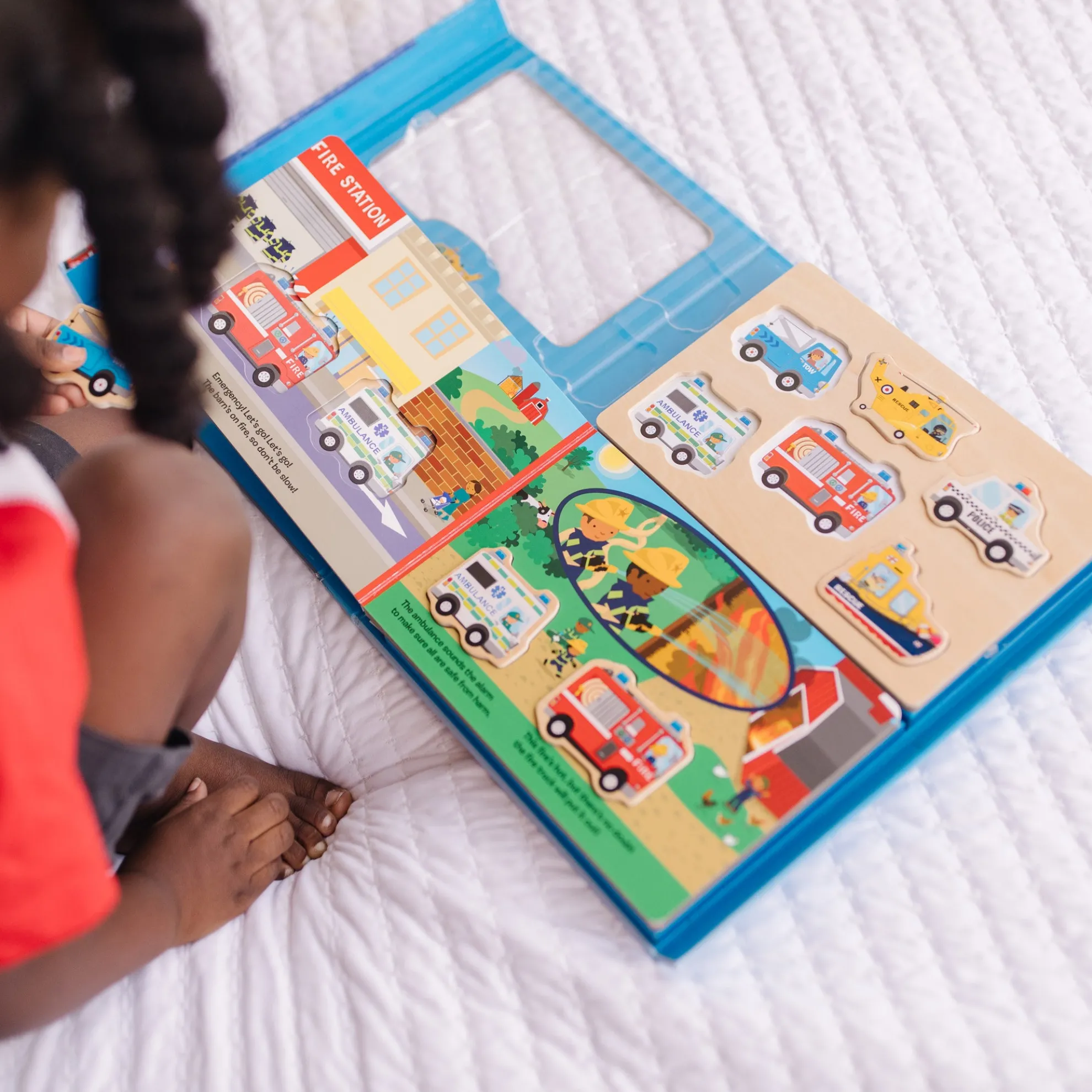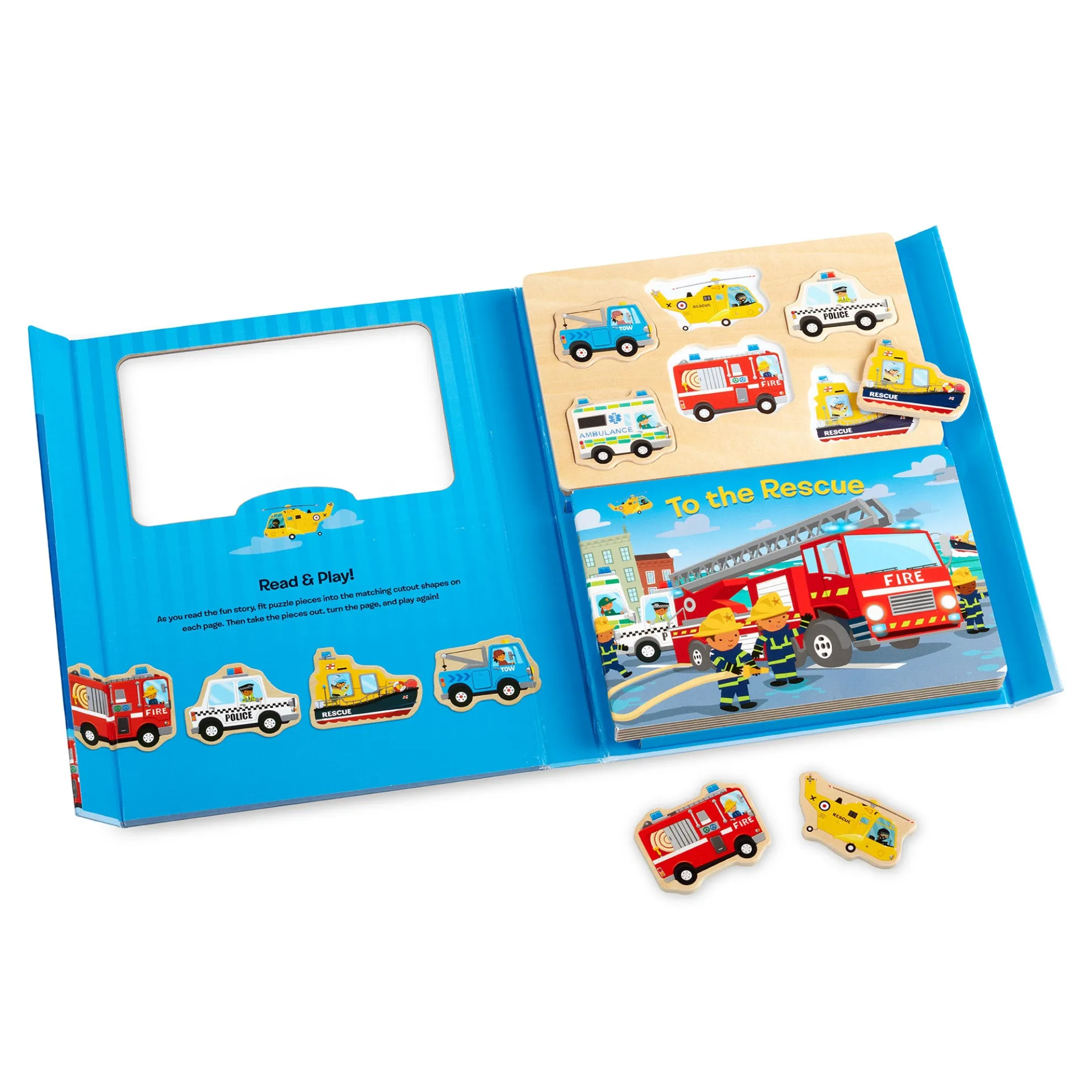- Read and play with this rescue vehicle storybook with attached wooden puzzle