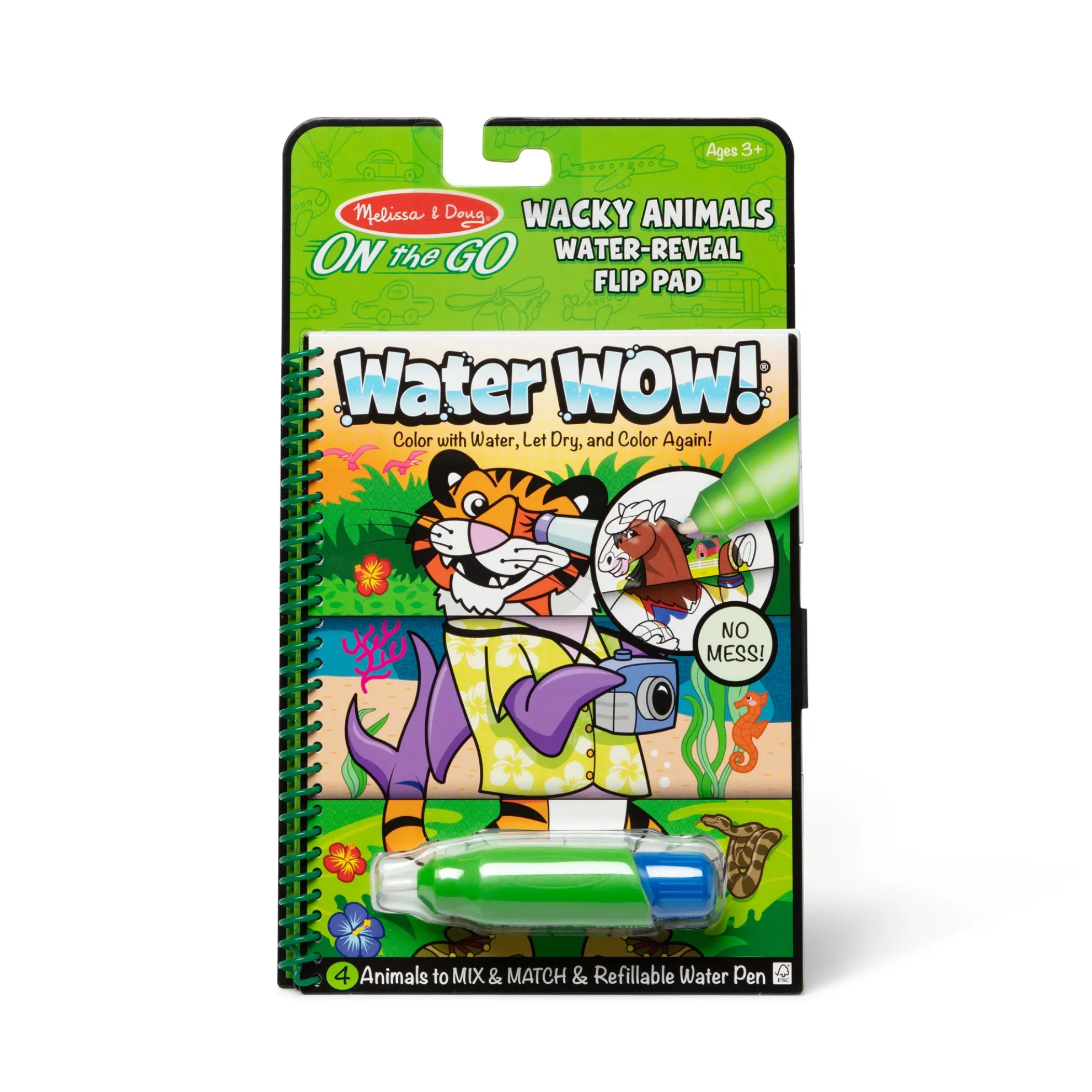 No-mess painting for kids! This exciting paint-with-water coloring book includes four three-part reusable flip pad pages and a refillable water pen. Flip to mix or match an animal head, middle, and feet, then simply use the pen to color in the panels—details and vibrant color appear with every stroke! Let the pages dry to “erase” the pictures and color in again and again. This wacky animal-themed book includes search-and-find activities on each panel. The chunky-sized water pen is easy for kids to hold and stores neatly right in the front cover, making this Water WOW! an ideal travel activity book for kids! This product is certified by the Forest Stewardship Council. FSC certification ensures that products come from responsibly managed forests that provide environmental, social, and economic benefits, and that forests are protected for future generations. Please note that FSC certification applies to new inventory only (FSC C156584).
