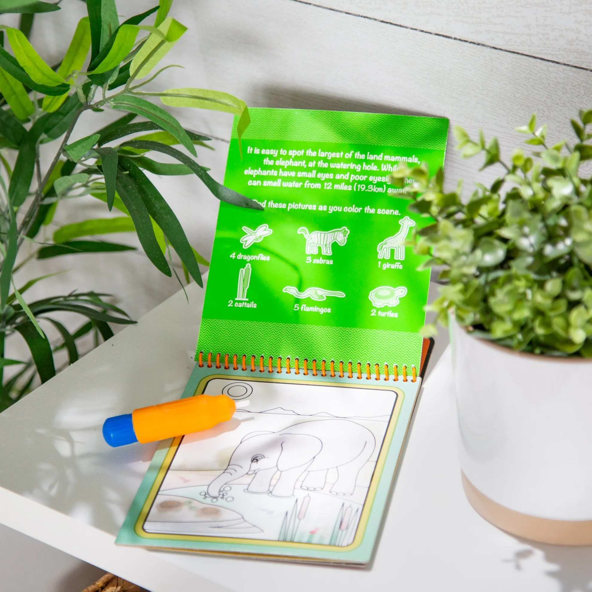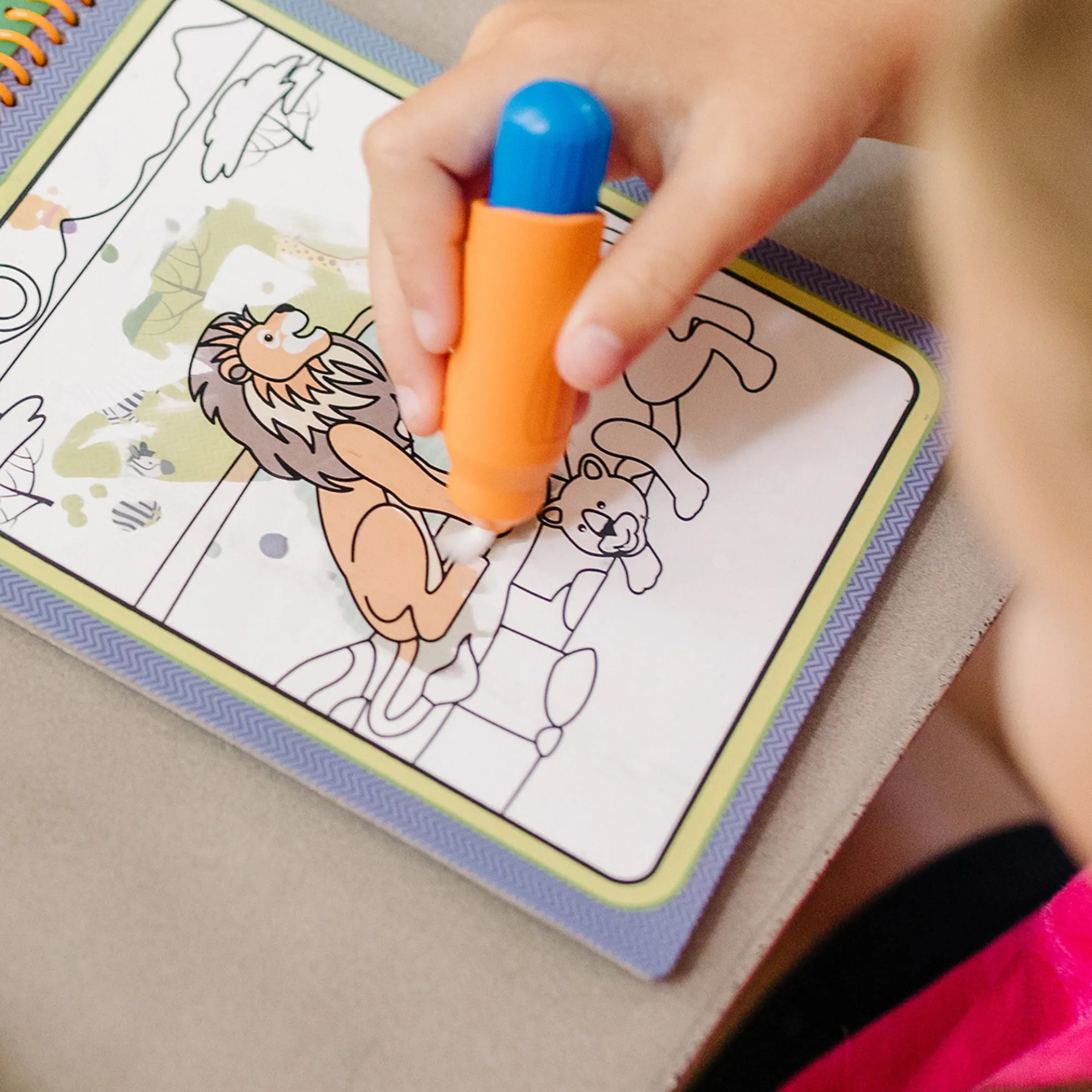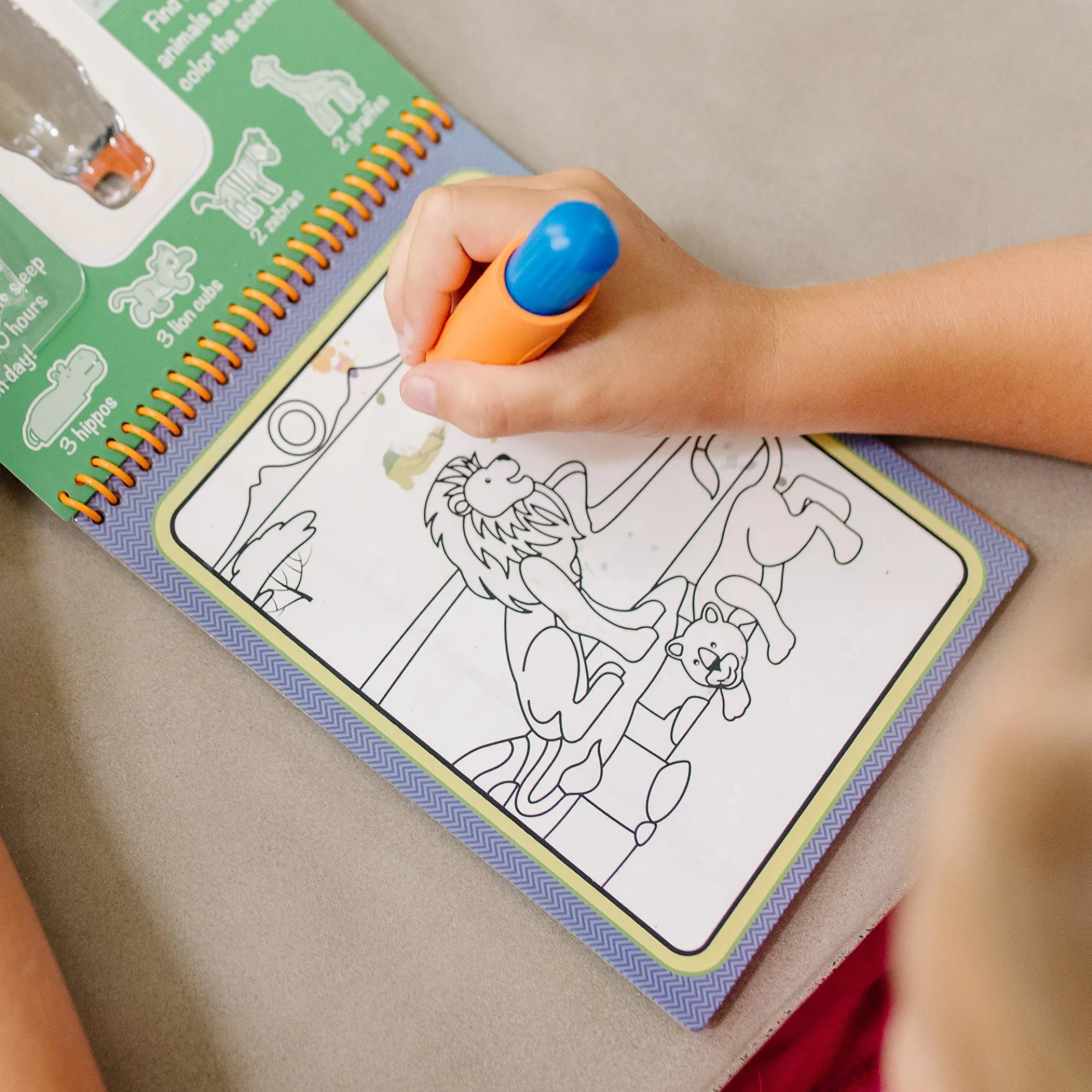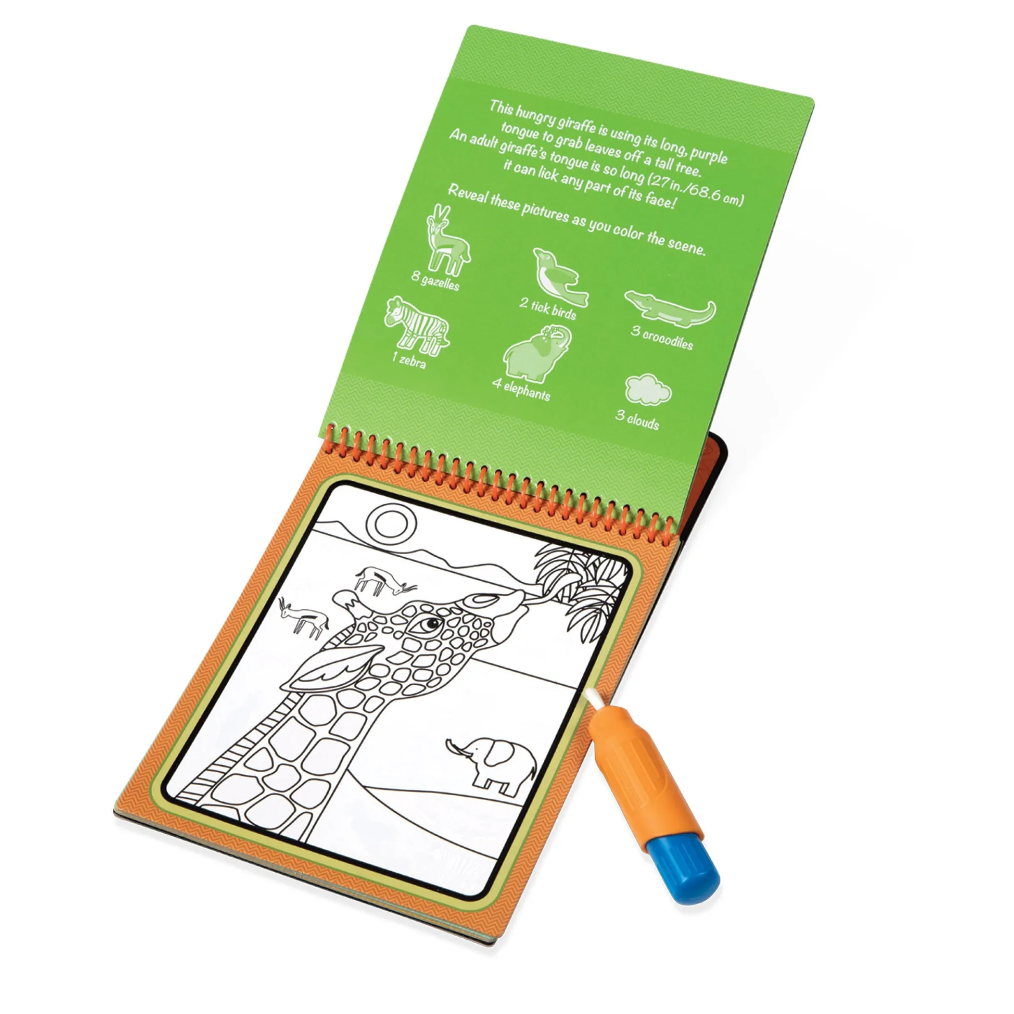 - Activity book of 4 safari-themed coloring boards and refillable water pen