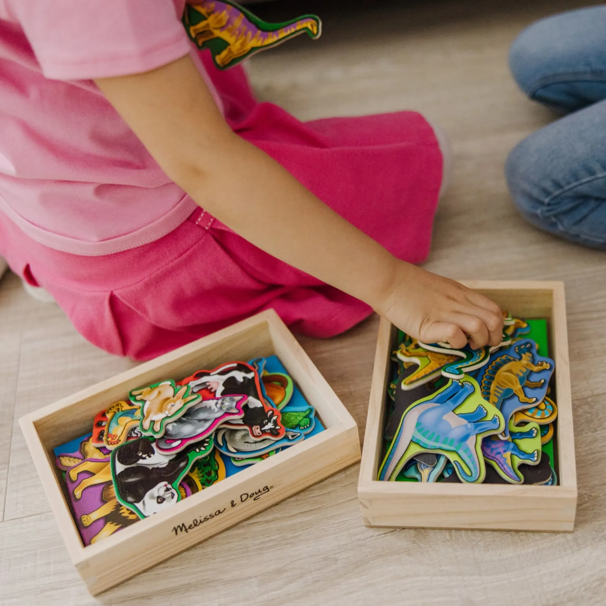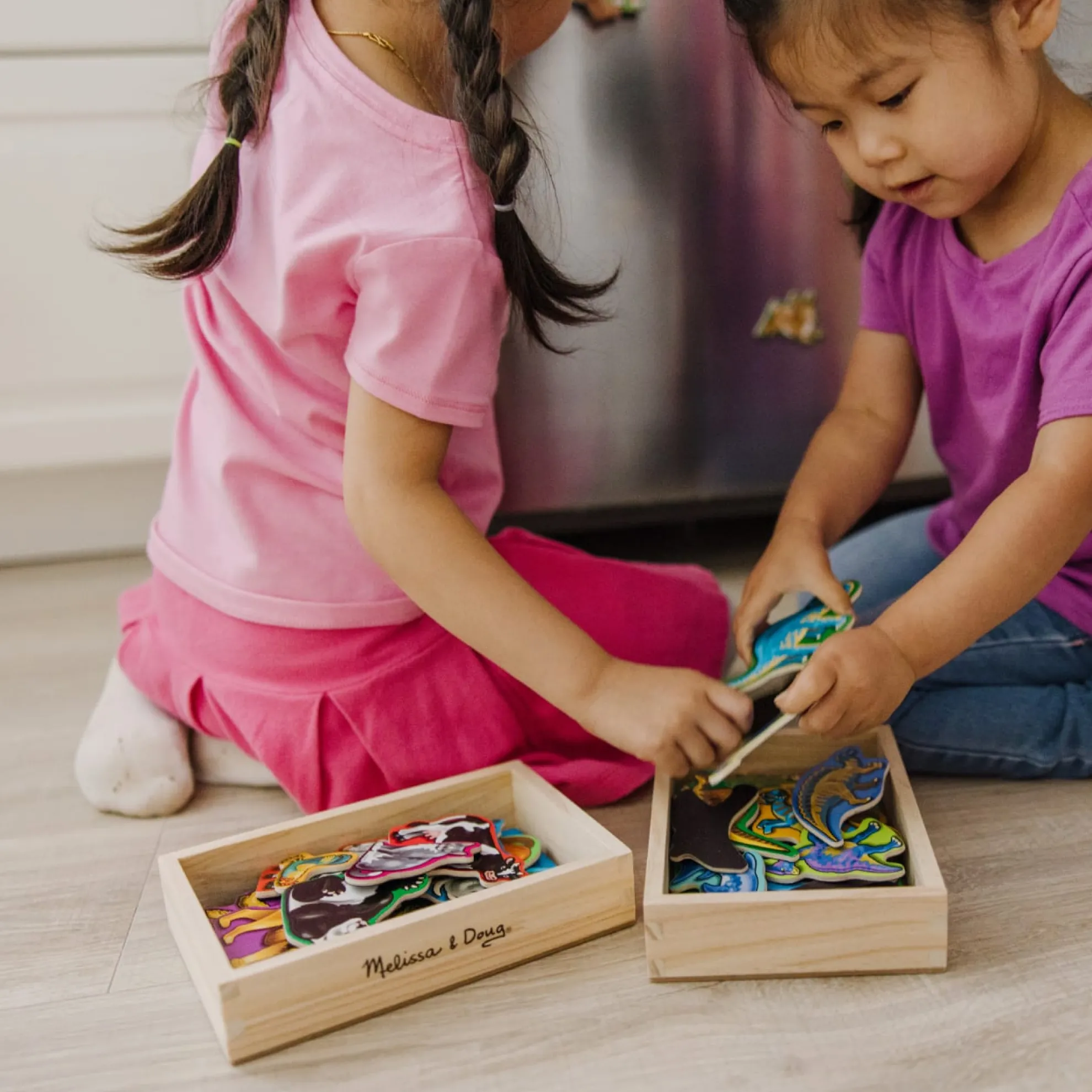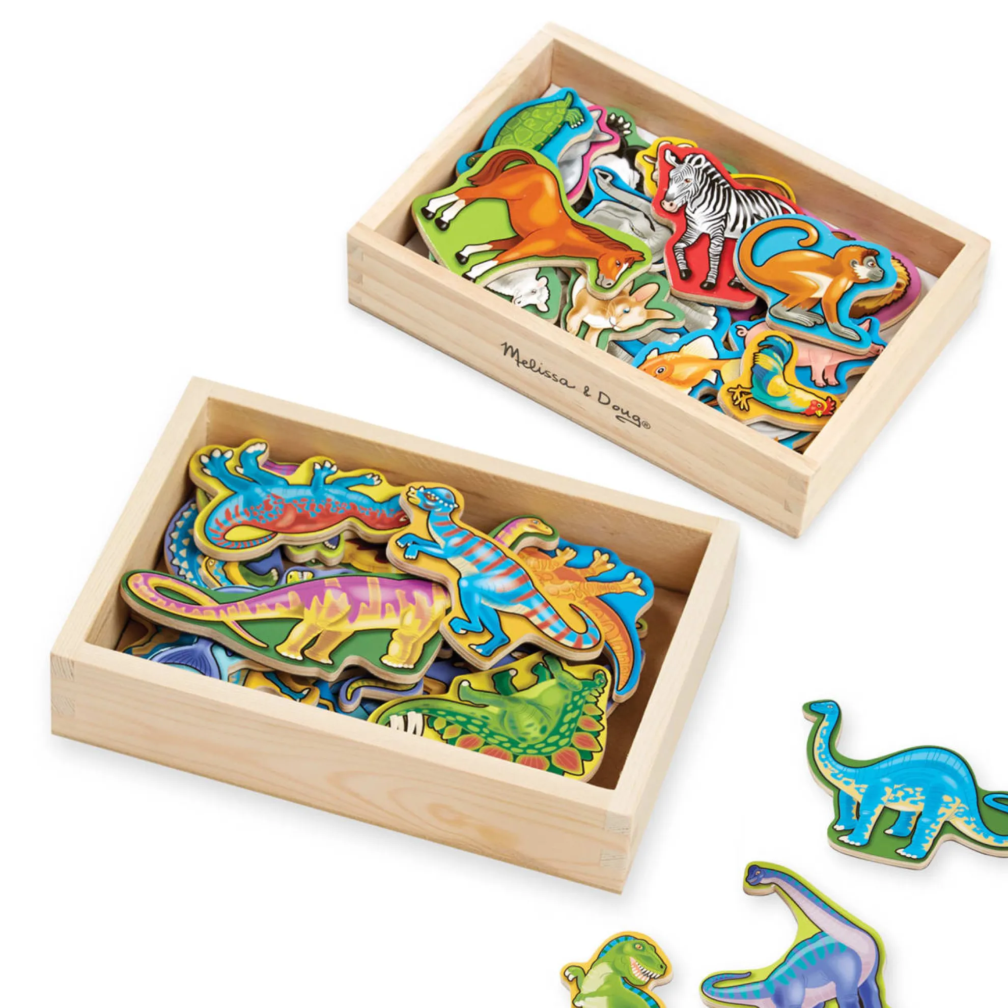 Everyone is attracted to these magnetic creatures! Twenty animal magnets and twenty dinosaur magnets make up this extra-large set, all packaged in two wooden boxes to make them easy to organize and store.