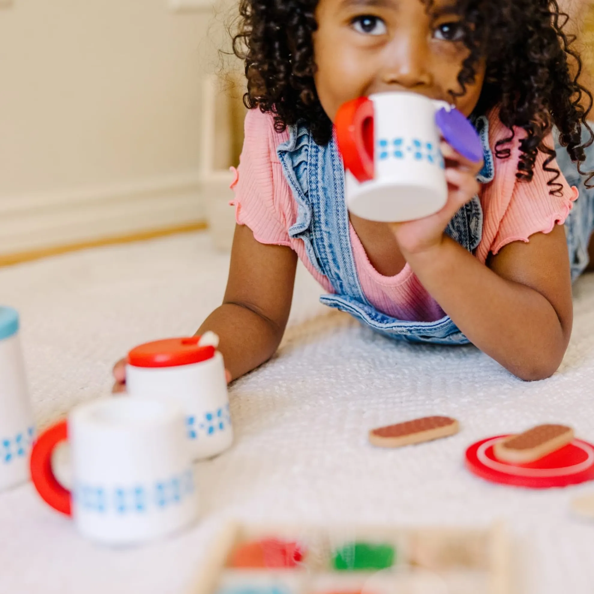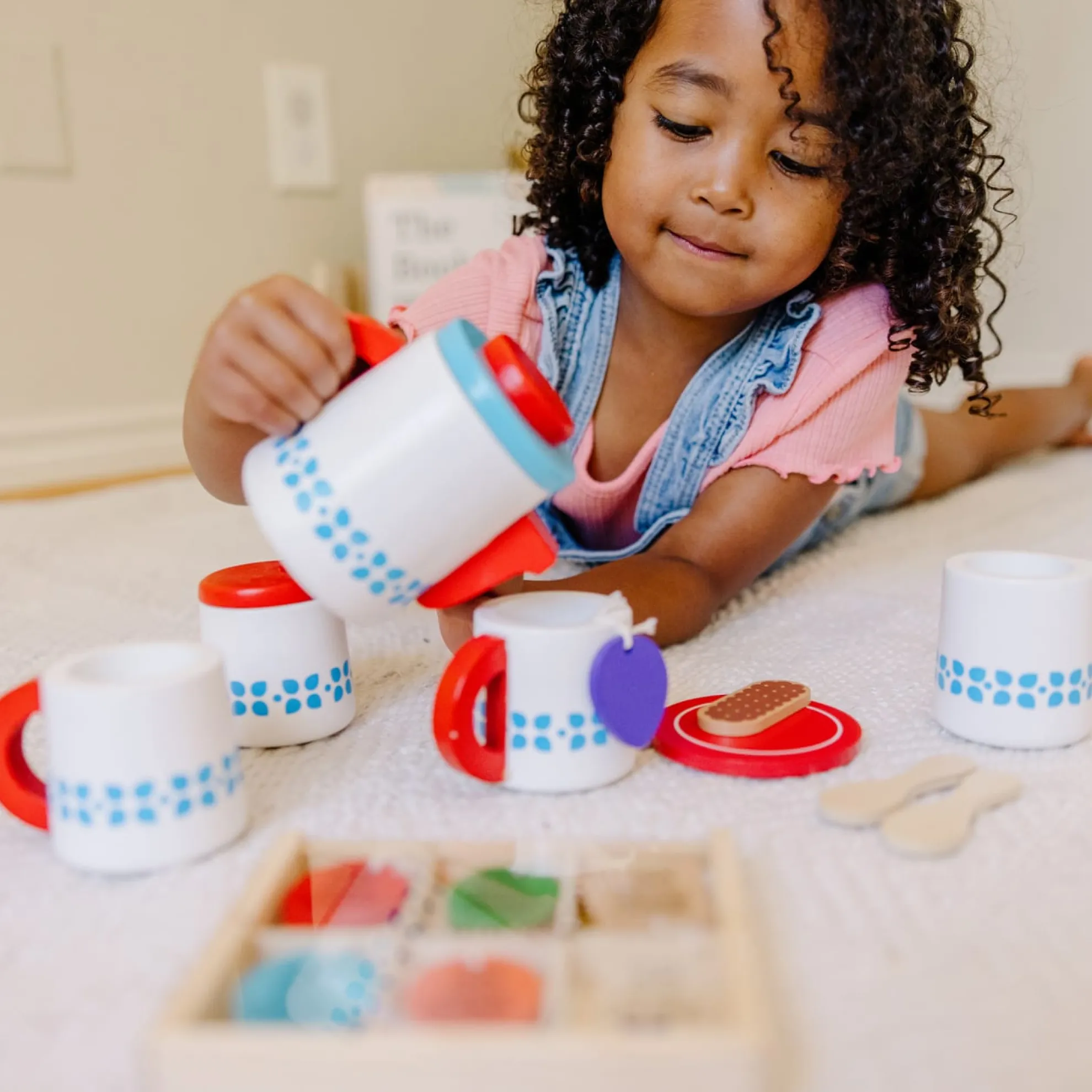 - Brightly colored tags help child to identify different teas