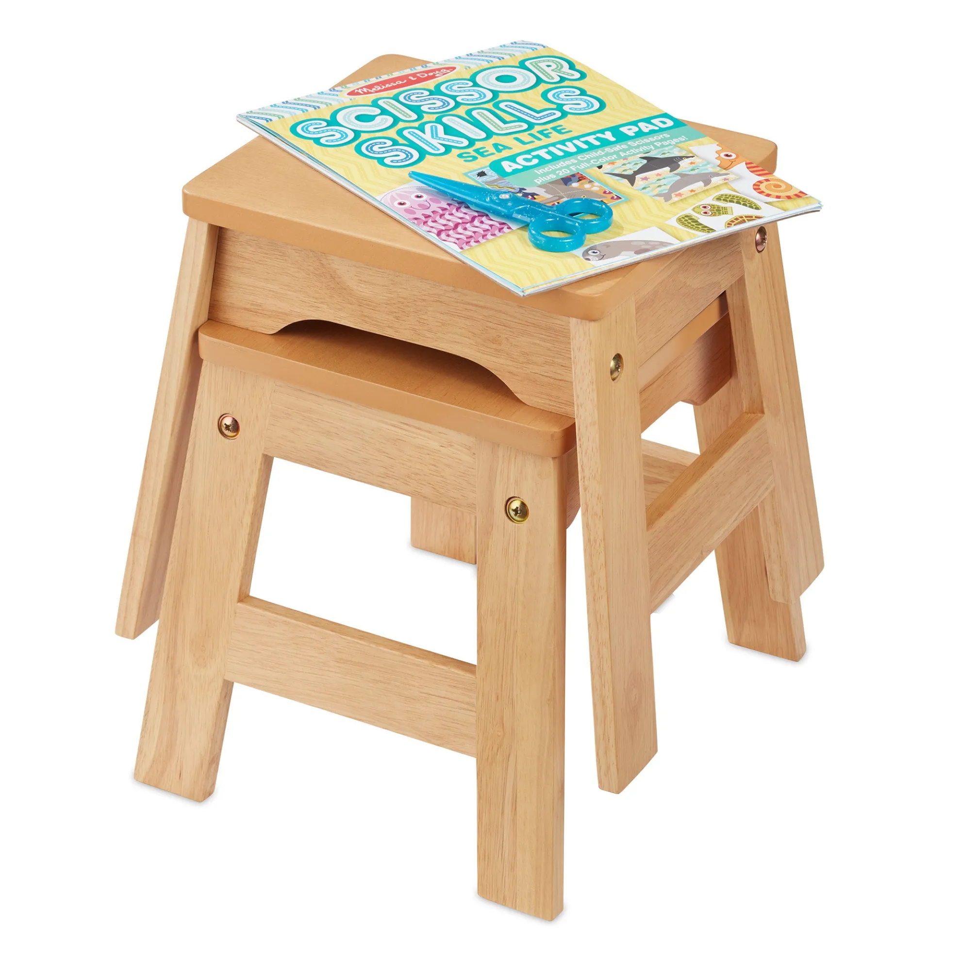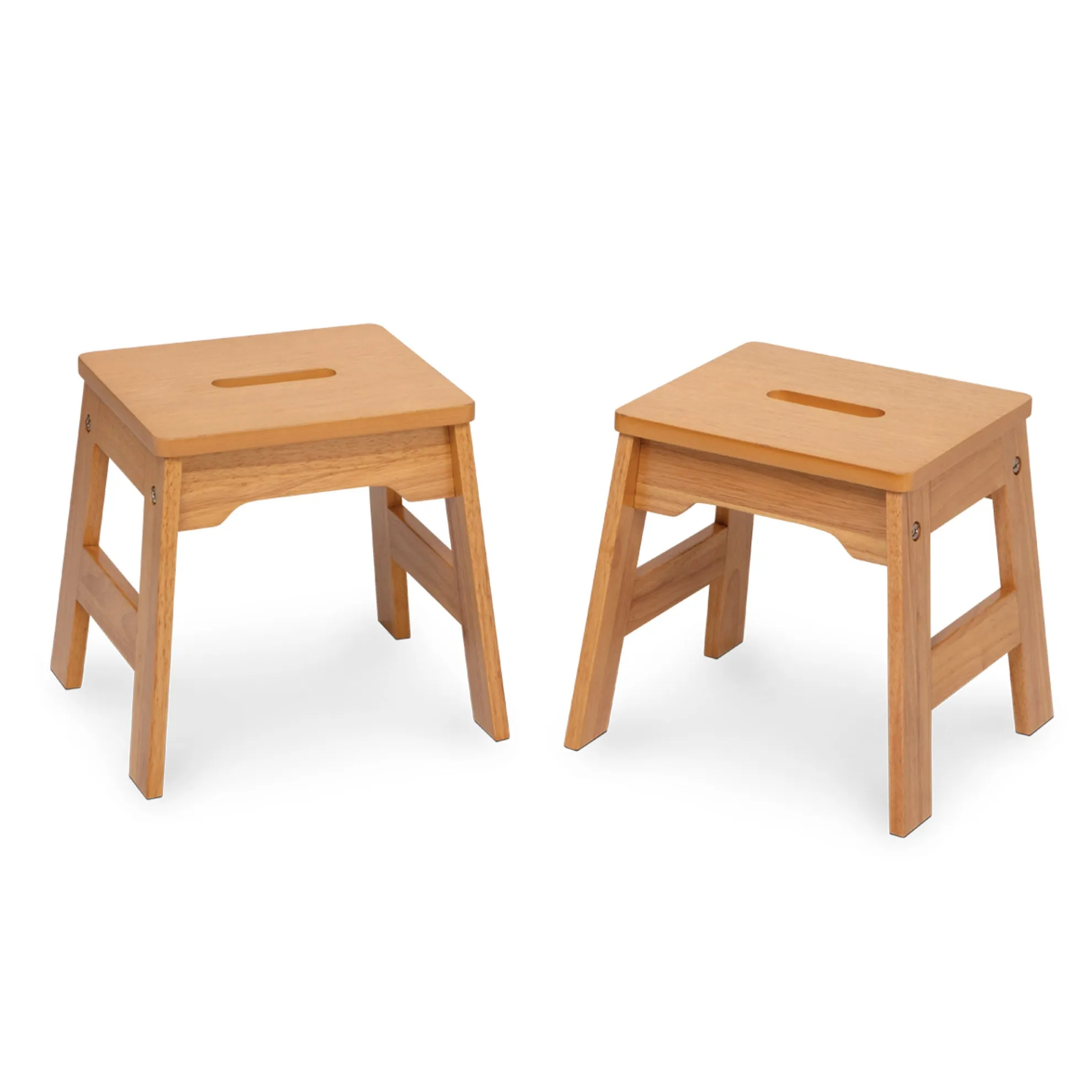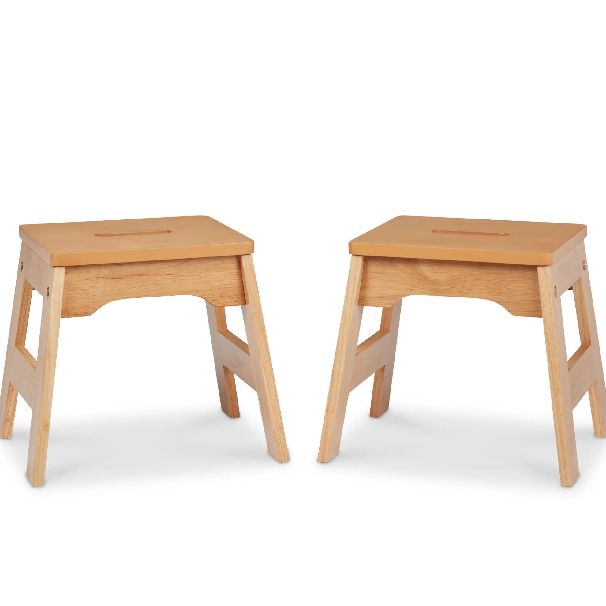 - Set of 2 sturdy wooden stools, sized for kids, but strong enough to hold most adults