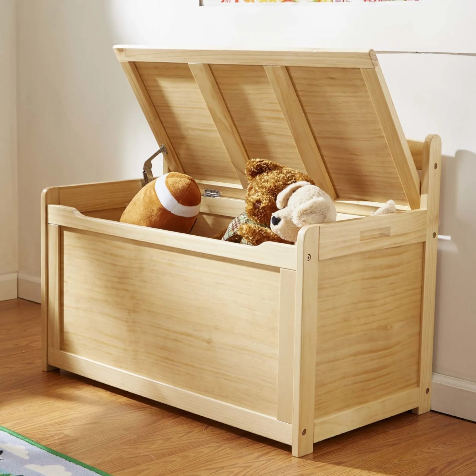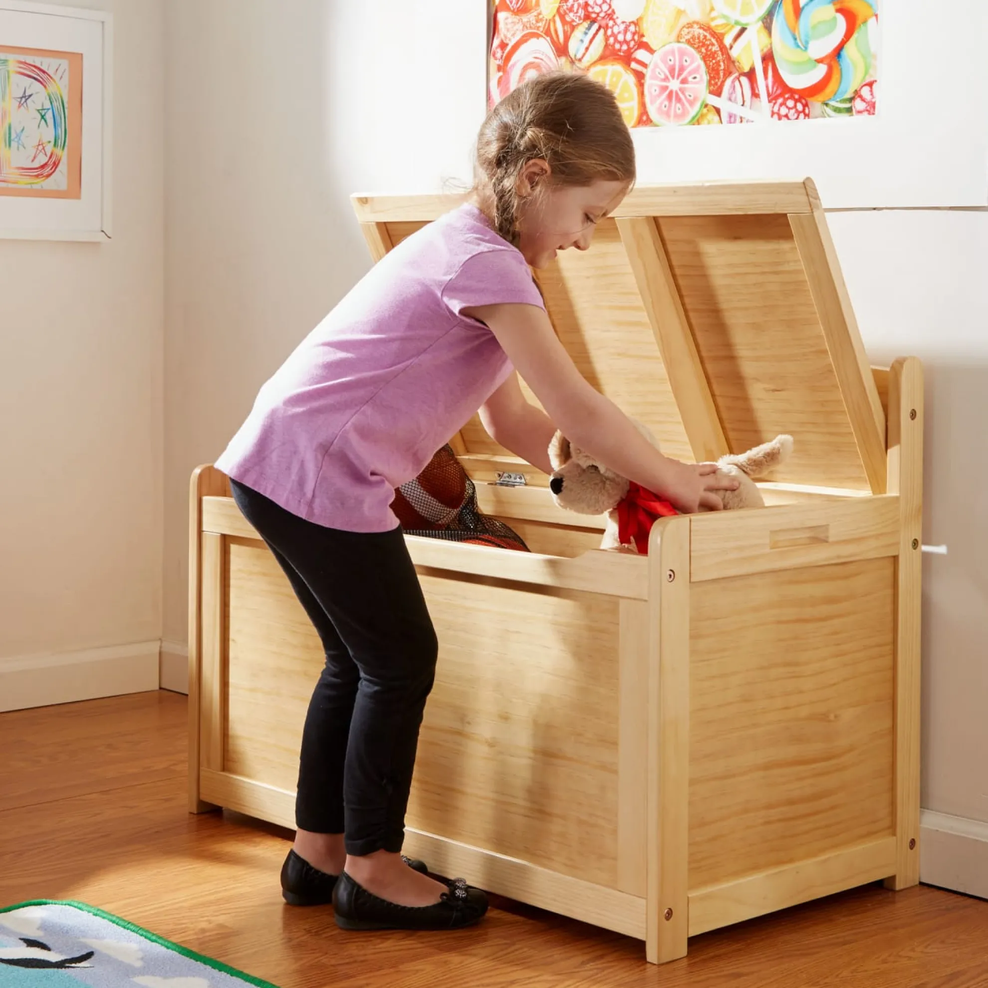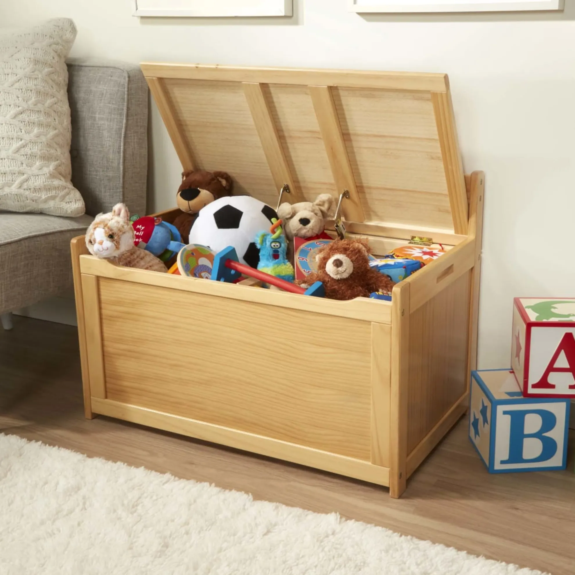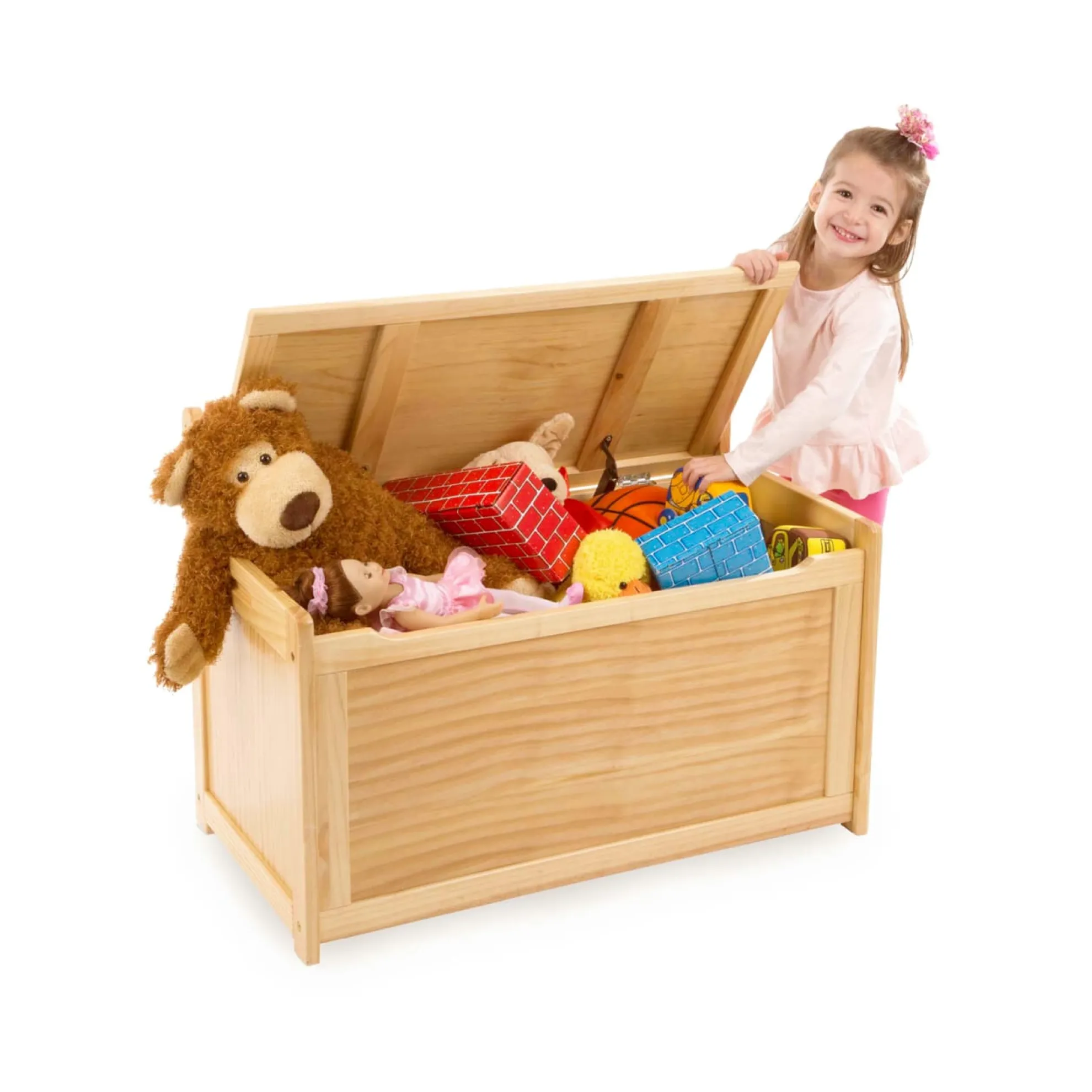 Kids will love having a handy place to store all their toys, and adults will love the classic styling and durability of this wooden toy chest! Available in honey, white, espresso, and gray finish that’s easy to wipe clean and fits with any home décor, the toy chest features 8.25 cubic feet of storage space and a safety-hinged lid. Easy to assemble with a Phillips head screwdriver, not included.