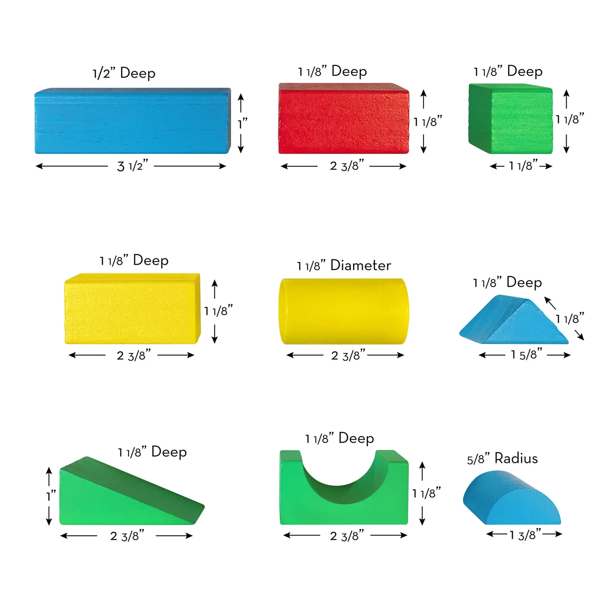 This favorite collection of 100 wooden blocks comes in four colors and nine shapes. Little builders three and older will find it easy to grasp the approximately 1-inch to 2.25-inch smooth building toy blocks. Kids delight in stacking, building, balancing, and knocking them down in countless colorful combinations, while gaining invaluable practice with fine motor skills and dexterity, color and shape recognition, and pre-math skills. This product is certified by the Forest Stewardship Council. FSC certification ensures that products come from responsibly managed forests that provide environmental, social, and economic benefits, and that forests are protected for future generations. Please note that FSC certification applies to new inventory only (FSC C156584)