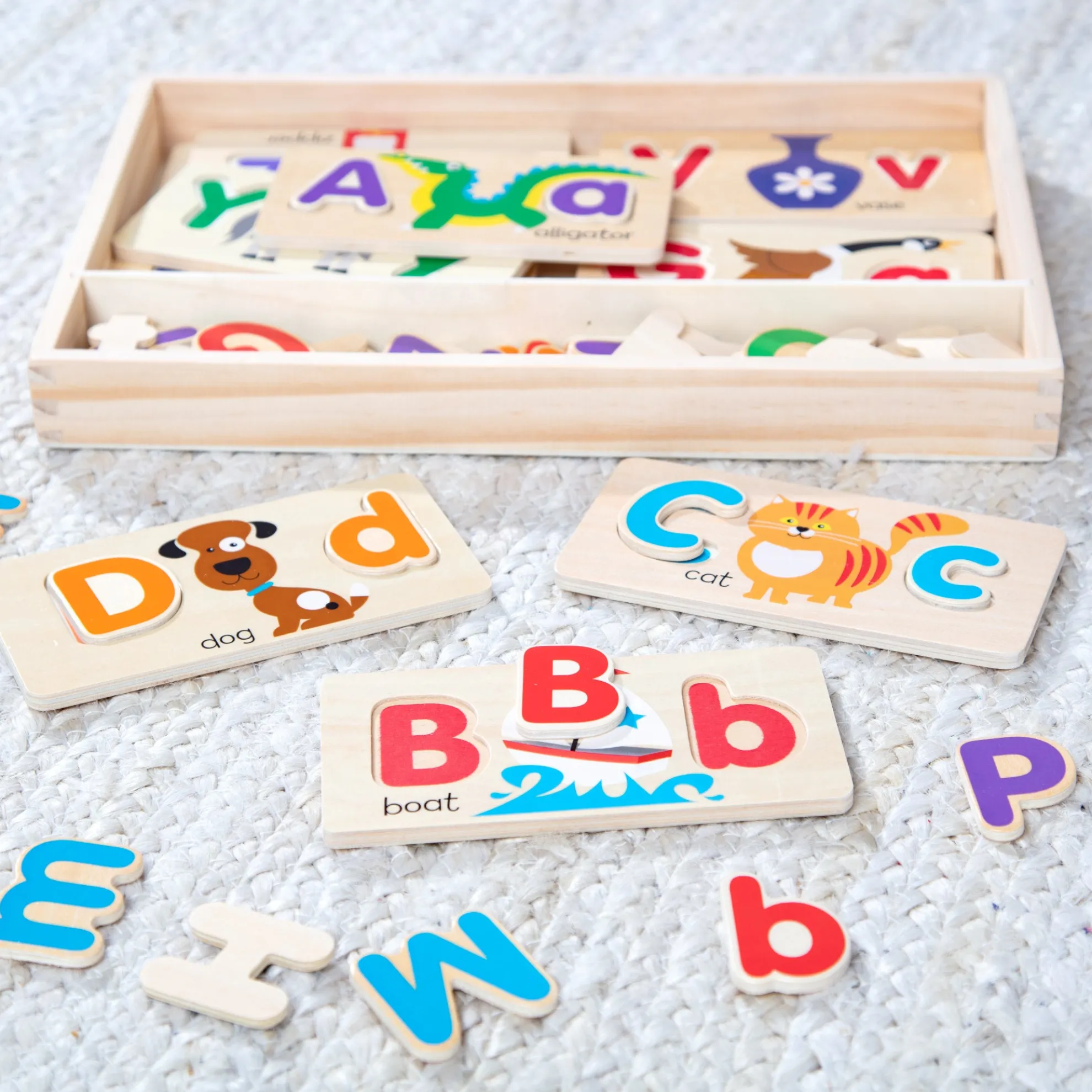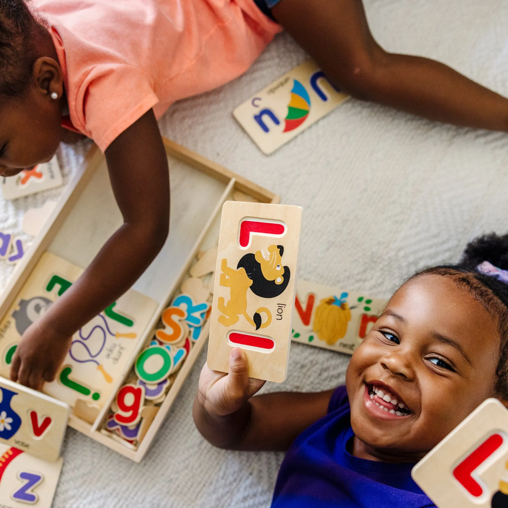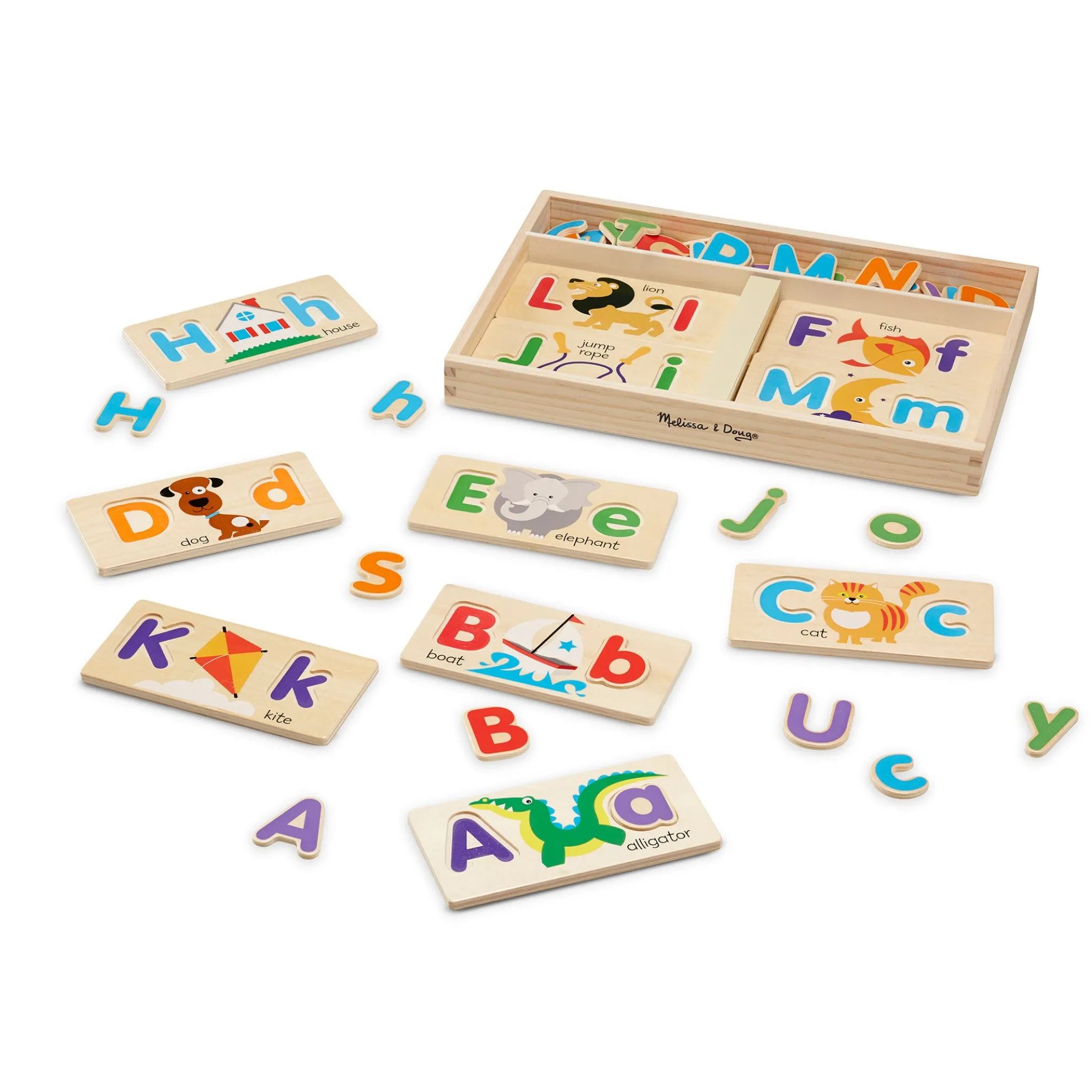- Sturdy wooden construction for years of play; encourages letter, word, and color recognition; promotes matching, memory, and fine motor skills