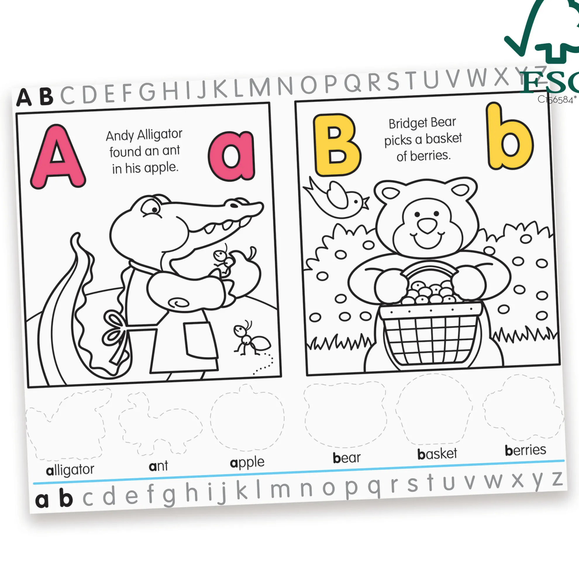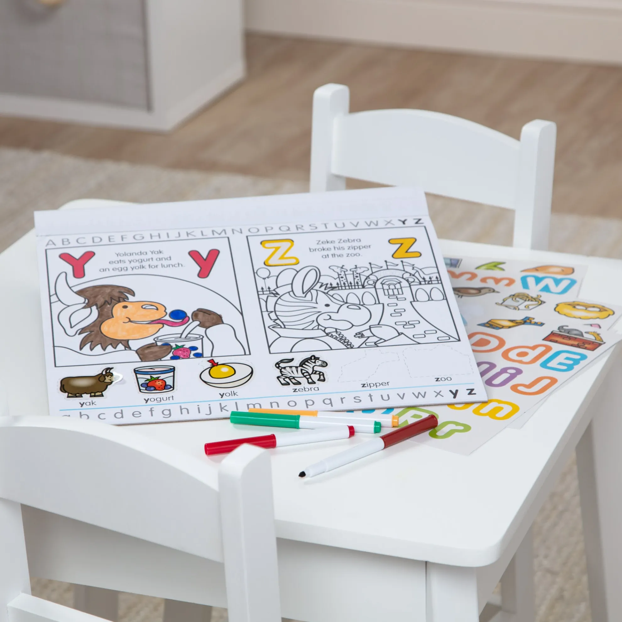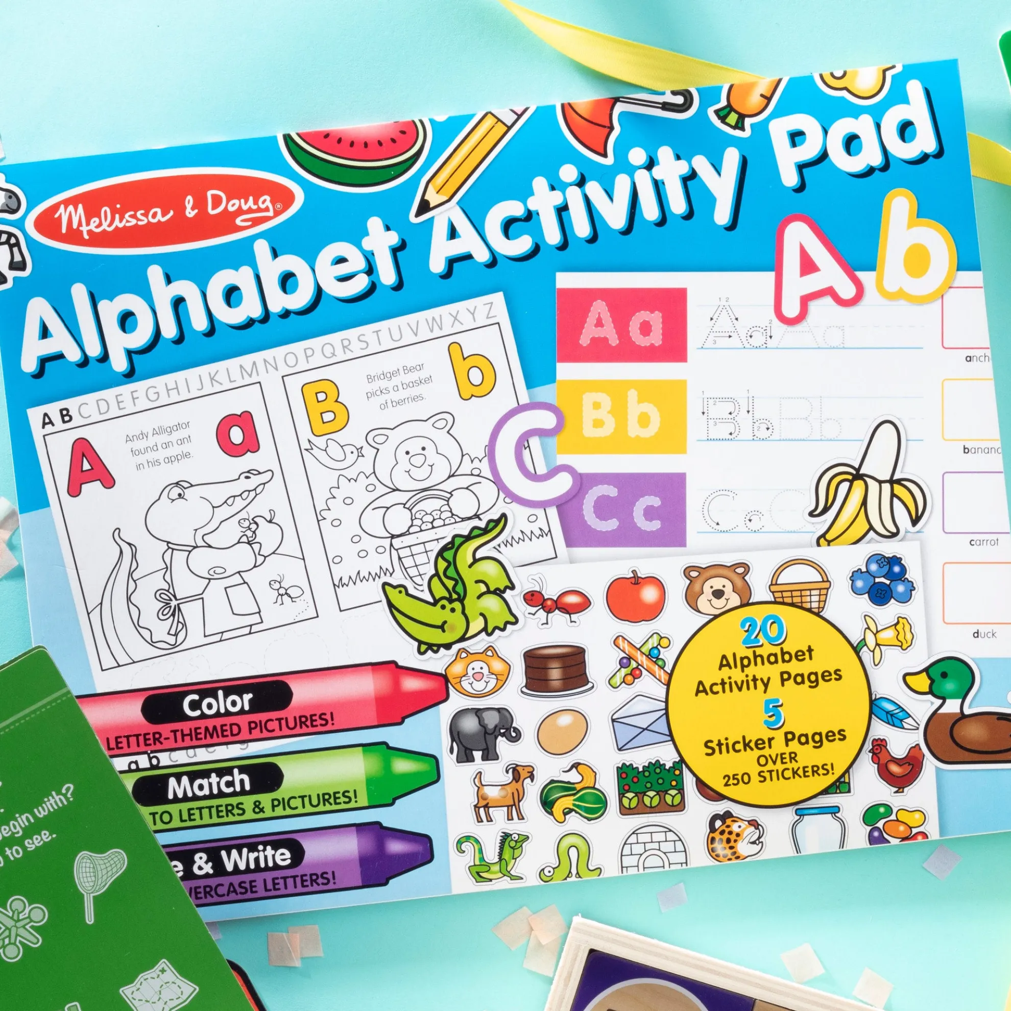 More than just a sticker pad, this activity book features 20 pages of alphabet activities for kids four and older. Kids can color in letter-themed pictures, Match stickers to letters and pictures, and learn the alphabet by tracing and writing both uppercase and lowercase letters! There are more than 250 stickers to fill the pages, with extra letter stickers included for creative projects. This product is certified by the Forest Stewardship Council. FSC certification ensures that products come from responsibly managed forests that provide environmental, social, and economic benefits, and that forests are protected for future generations. Please note that FSC certification applies to new inventory only (FSC C156584).