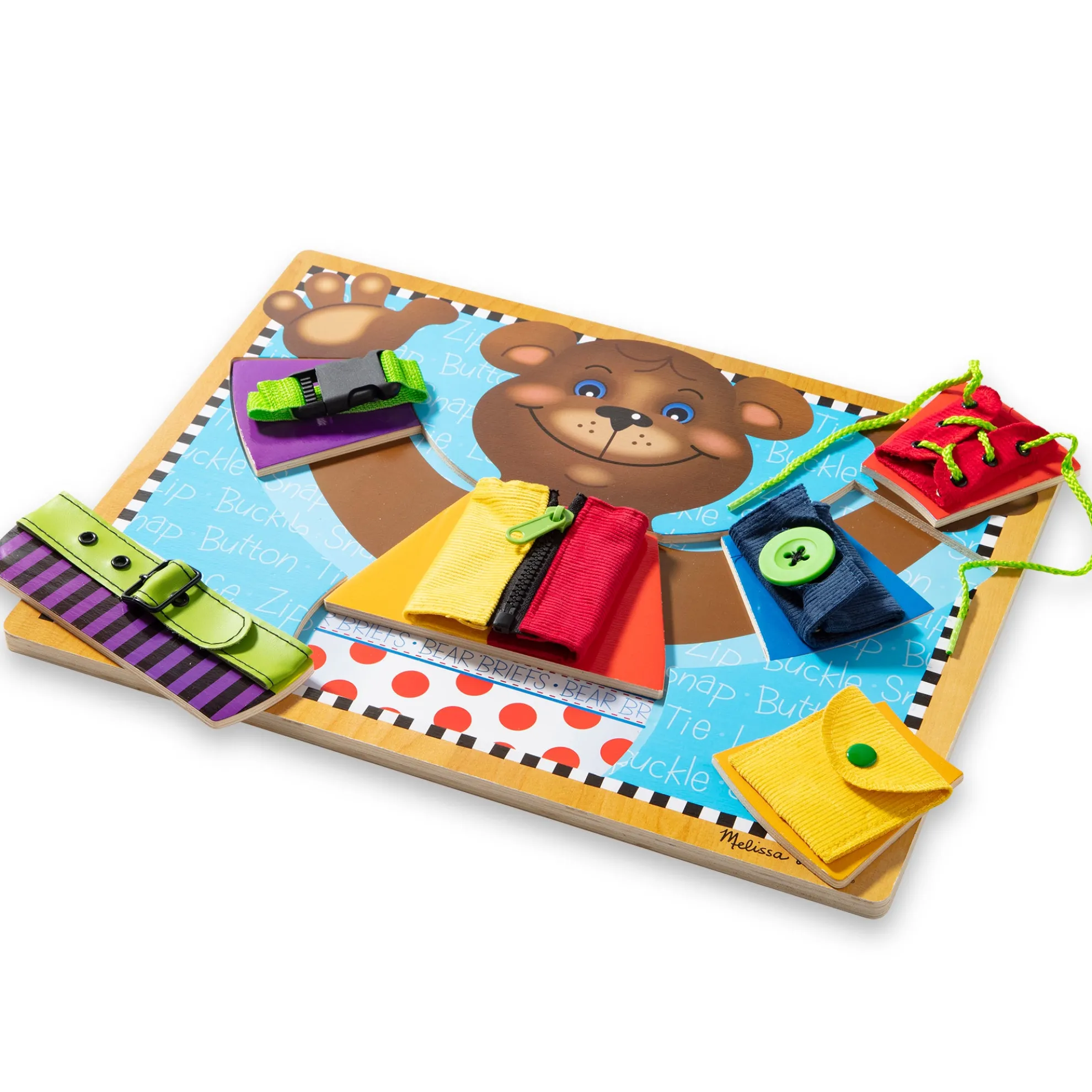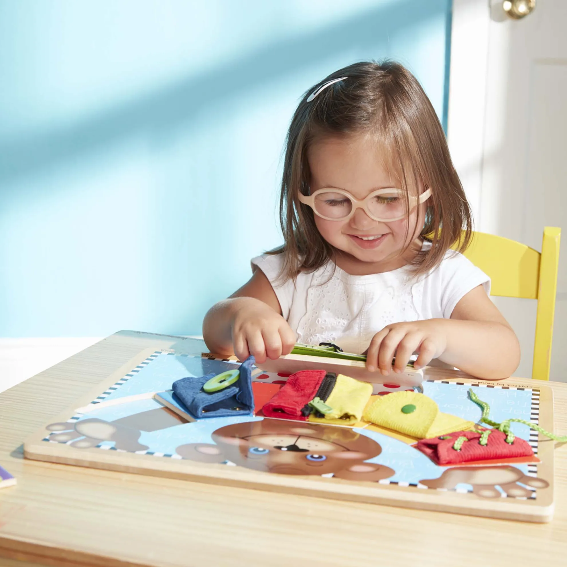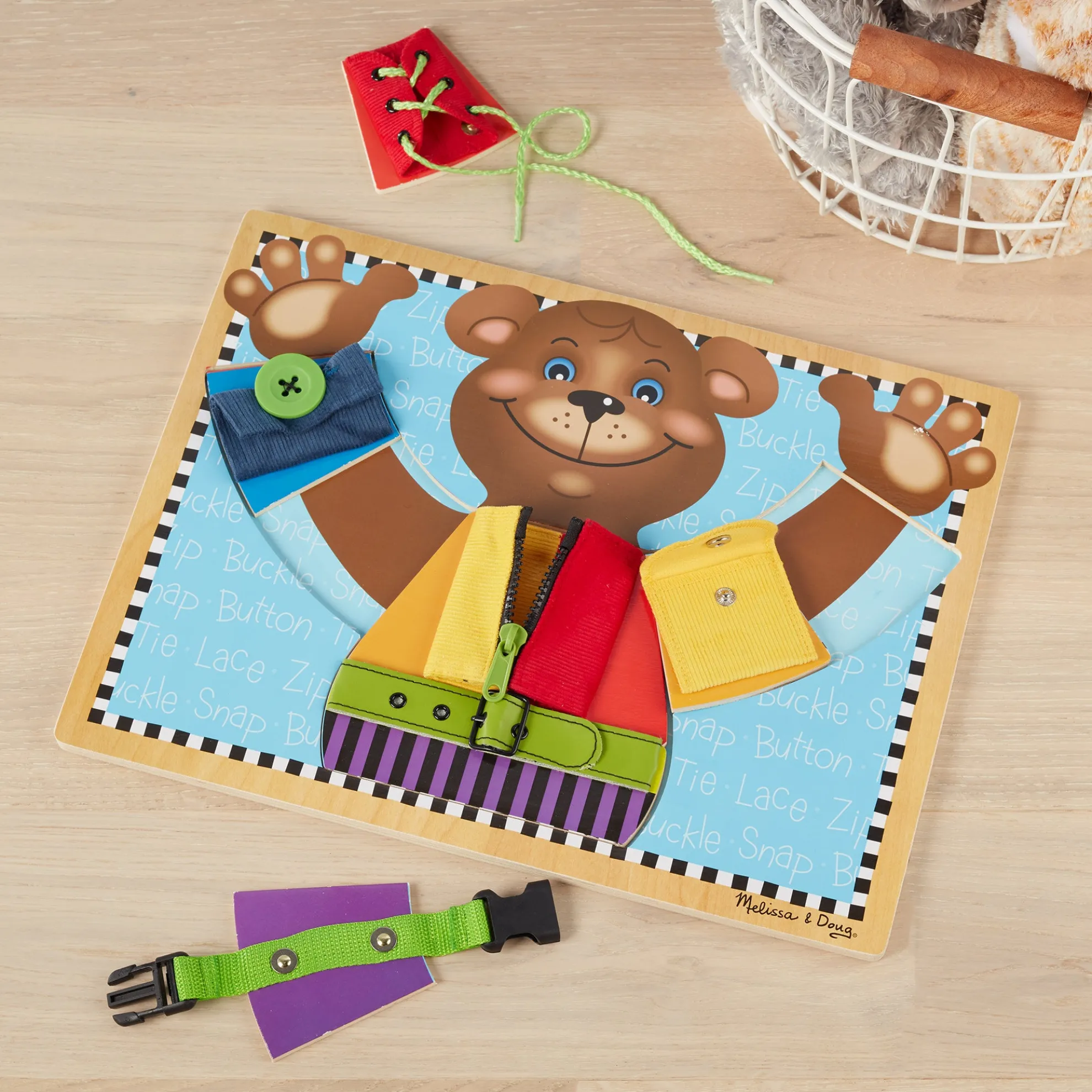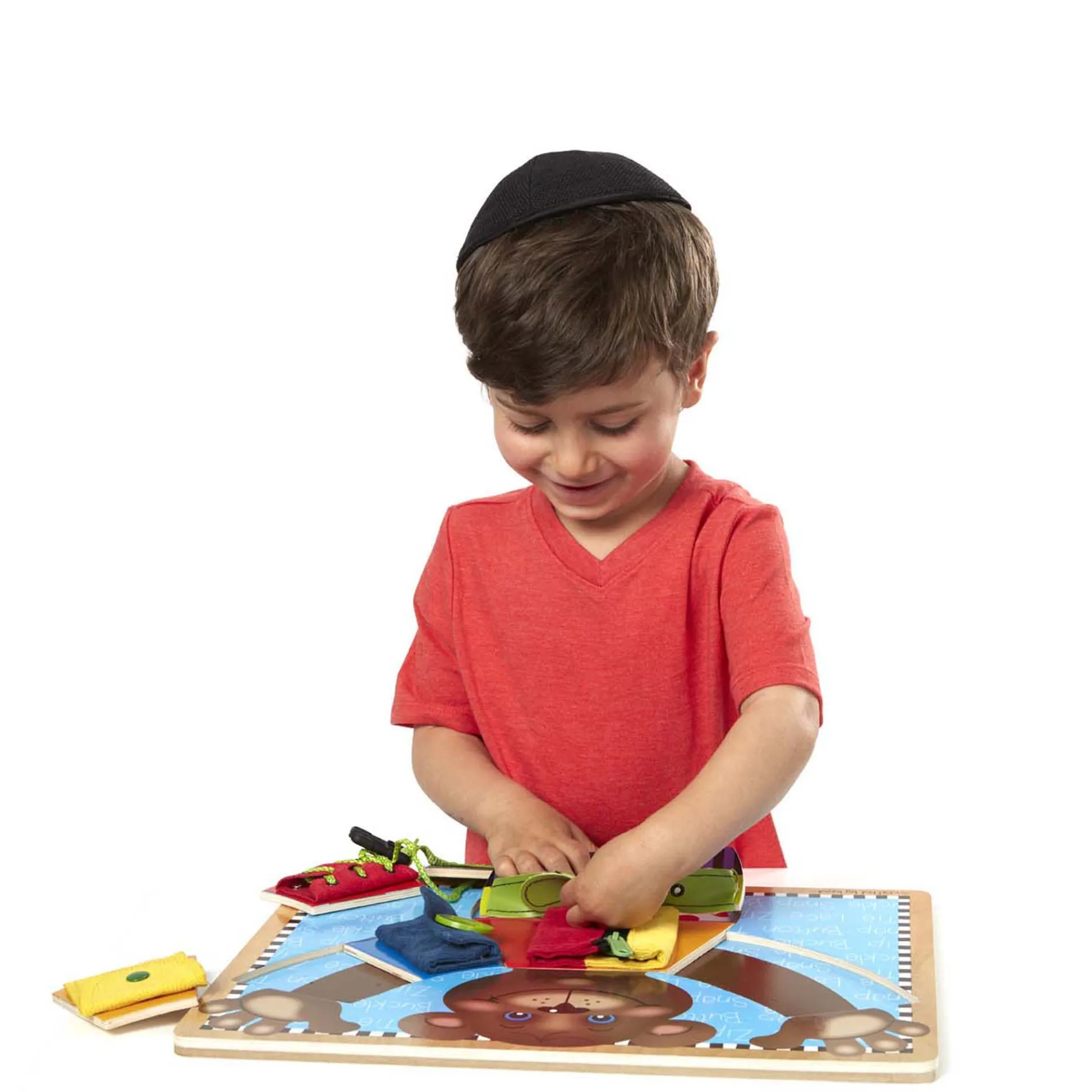 This wooden bear is always smiling, but he’s happiest when fully dressed! Getting dressed won’t be such a puzzle once zipping, buckling, snapping, lacing and tying, and other dressing skills are mastered. Each skill is contained on a separate, removable wooden puzzle piece for easy practice. Develop fine motor and life skills with this great activity.