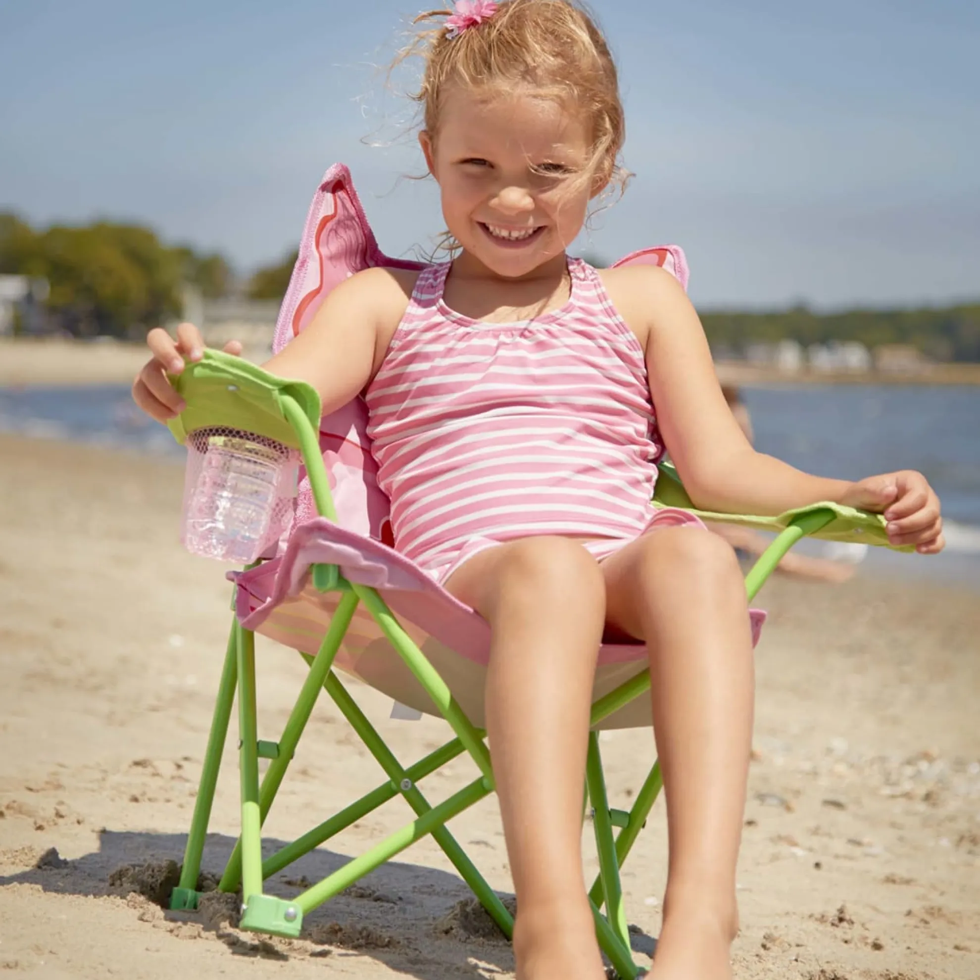 Your child will be “sitting pretty” in this delightful outdoor folding chair made just for kids. It features the adorable Bella Butterfly character on a sturdy metal frame. It even has a handy cup holder built right into the armrest, so kids can sit back, relax, and not worry about where to put their water bottle or cup. The child-sized folding lawn and camping chair is easy to open and close, so kids can set it up where and when they like. This can help them practice gross motor skills, hands-on exploration, and having a chair of their own helps them enjoy outdoor play. The Sunny Patch Bella Butterfly folding lawn and camping chair is constructed of durable materials that are designed for longevity and reliability, and the surface materials have been made for easy cleanup. When it’s time to pack up and go, the chair folds up easily and can be stored in the convenient and colorful storage bag. The Butterfly chair makes a great gift for preschoolers and kids ages 3 and older.