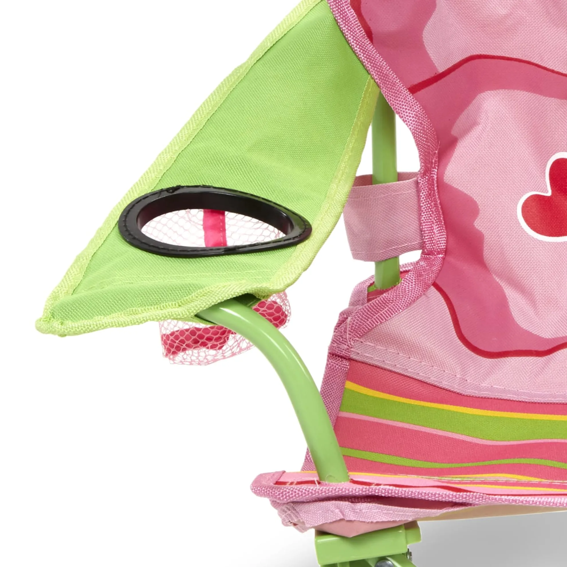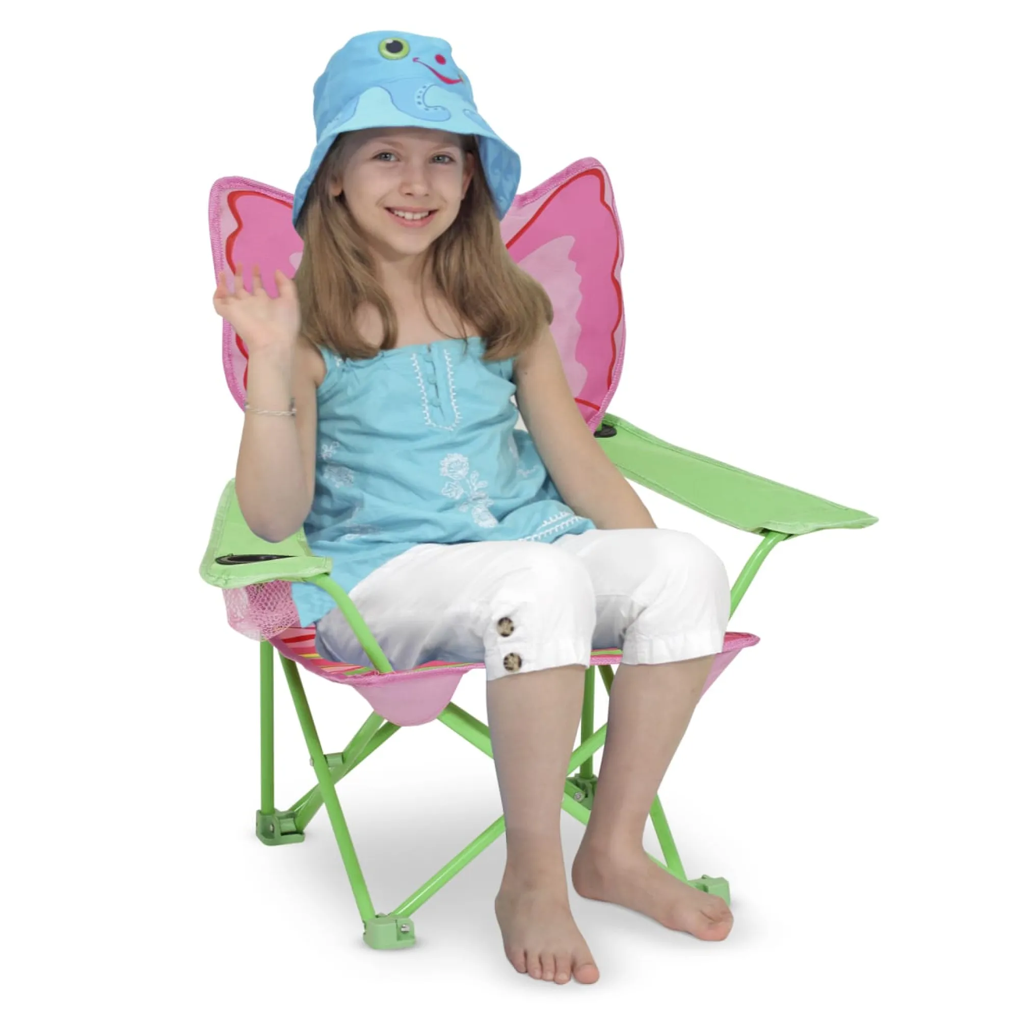 - Child-sized folding chair with butterfly-shaped back and matching storage bag