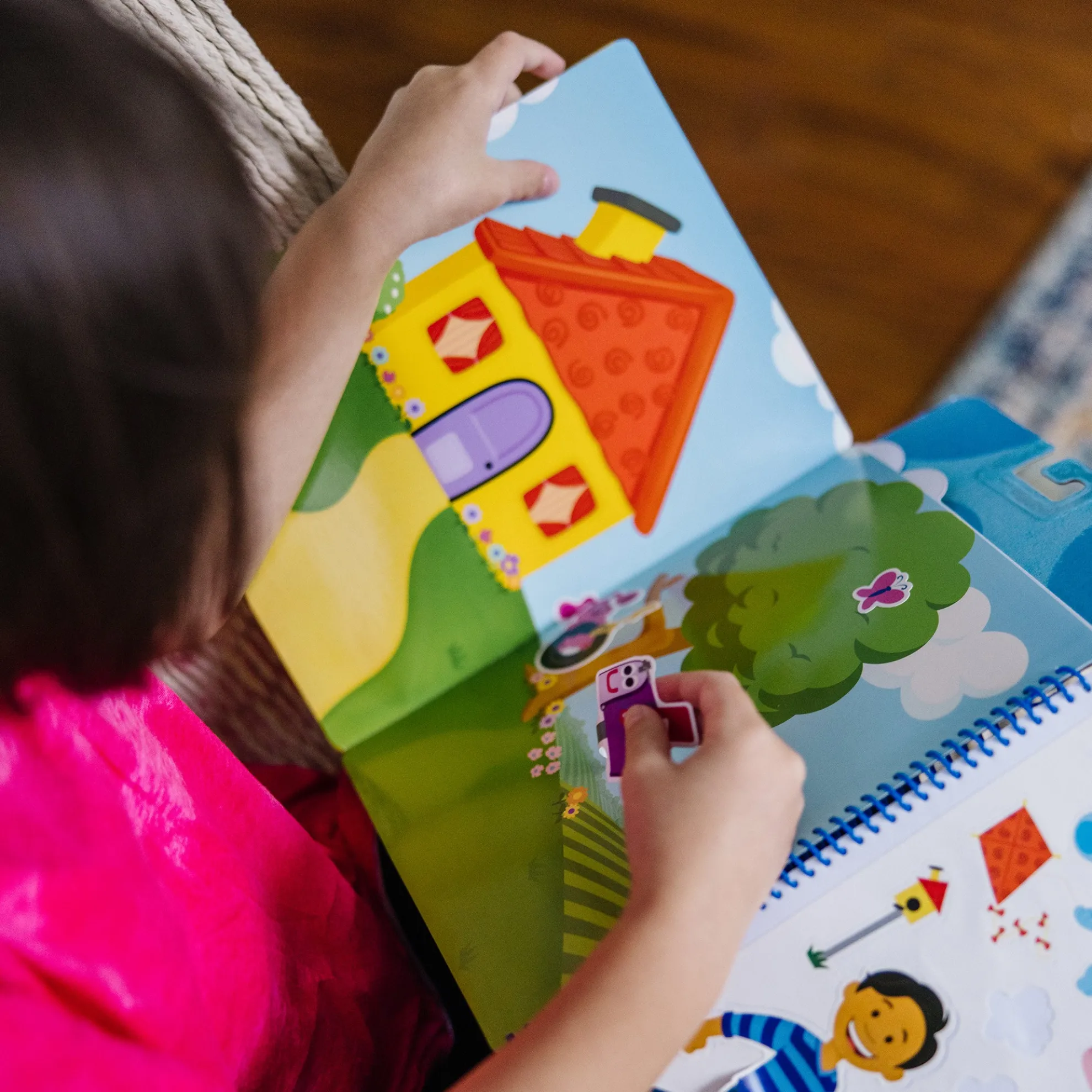 Set the scene and spark imagination again and again with the Blue’s Clues & You! Restickable Stickers Pad! Fill the five full-color, glossy fold-out scenes with 80 reusable cling-style stickers featuring Blue’s Clues & You! friends and elements. Each page has a coordinating restickable sticker sheet–or mix and match stickers to create countless custom scenes! The colorful, kid-friendly stickers stick easily, pull up cleanly, and store conveniently in the spiral-bound pad, making it a great mess-free travel activity for kids three and older. Blue’s Clues & You! promotes kindergarten-readiness, inspiring confidence, empowerment, and kindness in preschoolers as they develop their problem-solving, social, and developmental skills through play.
