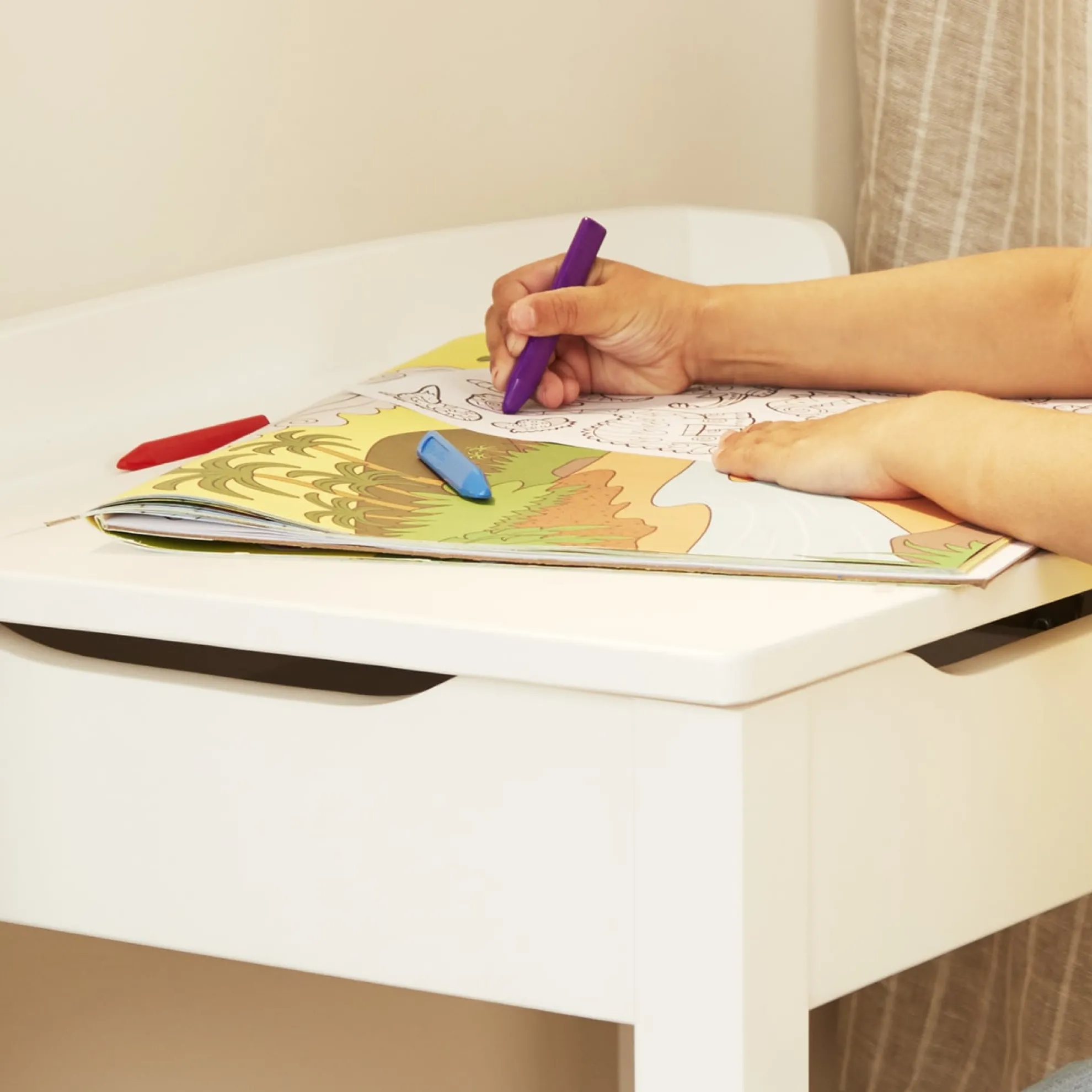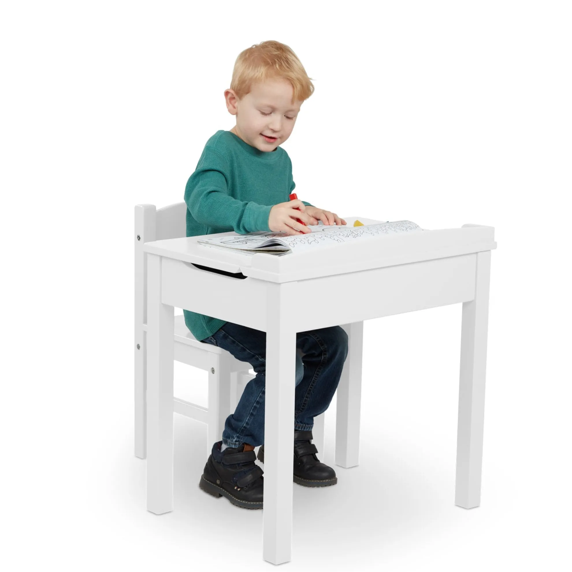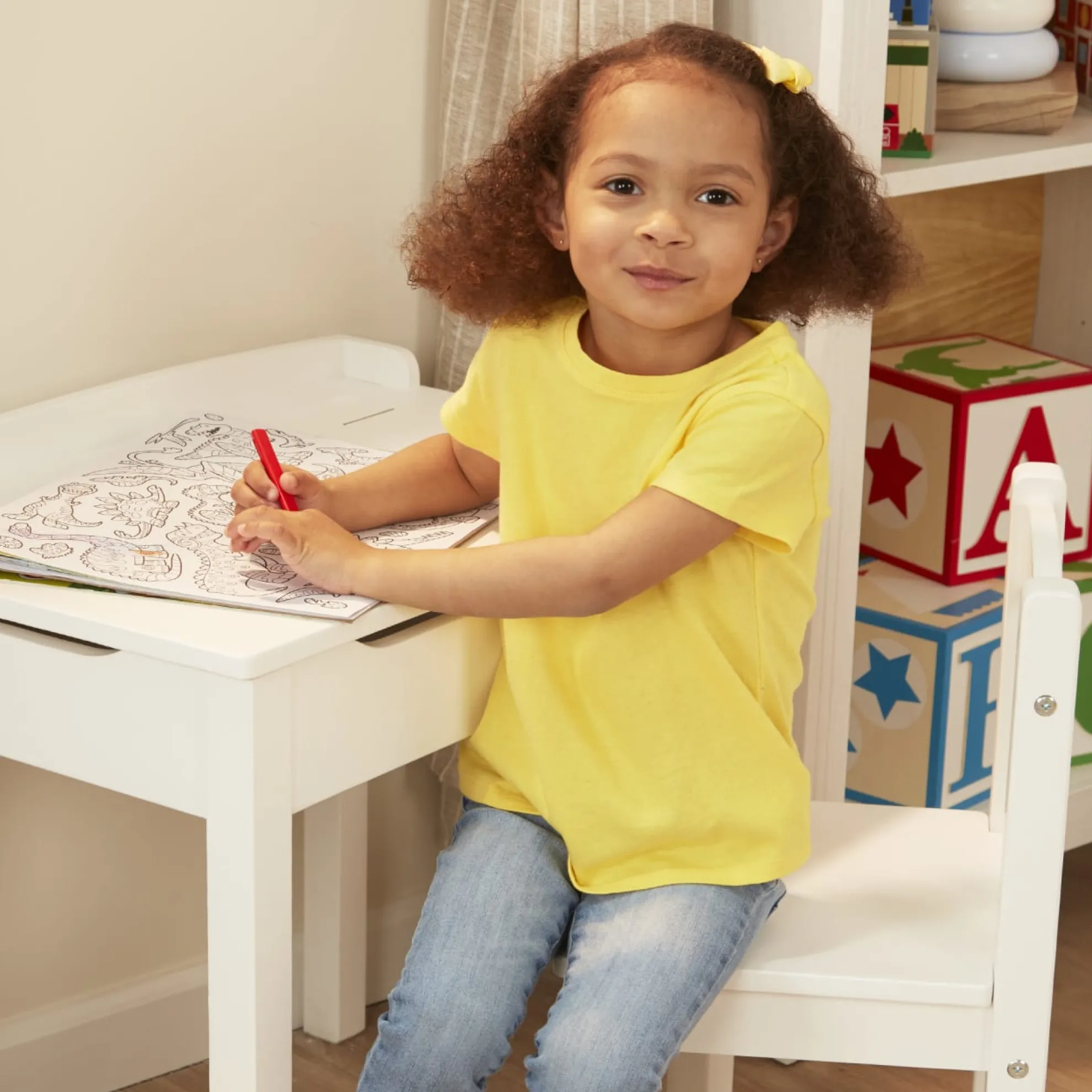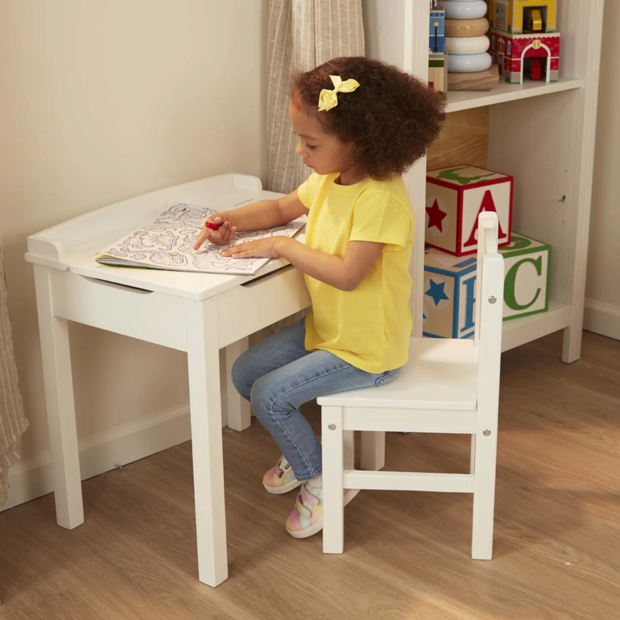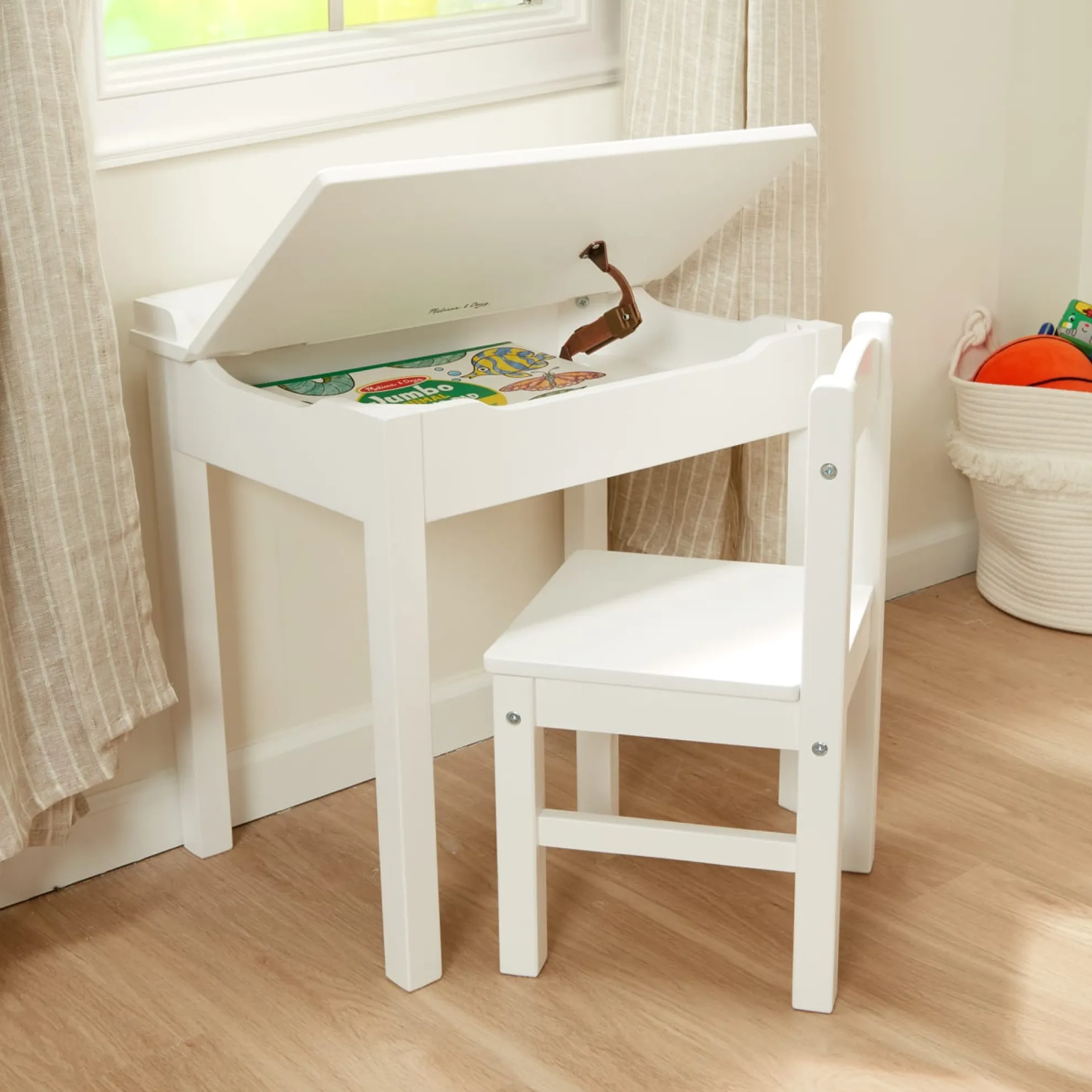 Our fun and functional furniture is sized just for kids! The sturdy wooden lift-top desk with matching chair comes in honey, white, or espresso finish to fit with any home décor, and wipes clean to stay looking crisp and clean. Easy to assemble with just a Phillips head screwdriver, the desk features a safety-hinged lid and reinforced legs to last through years of use. Set is sized for kids 3-8, and the chair holds up to 150 pounds.