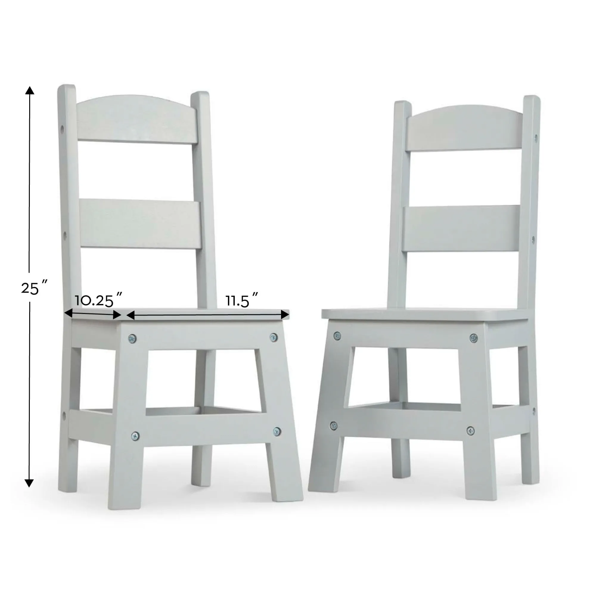 - 2 easy-to-assemble sturdy wooden chairs in gray, sized for kids