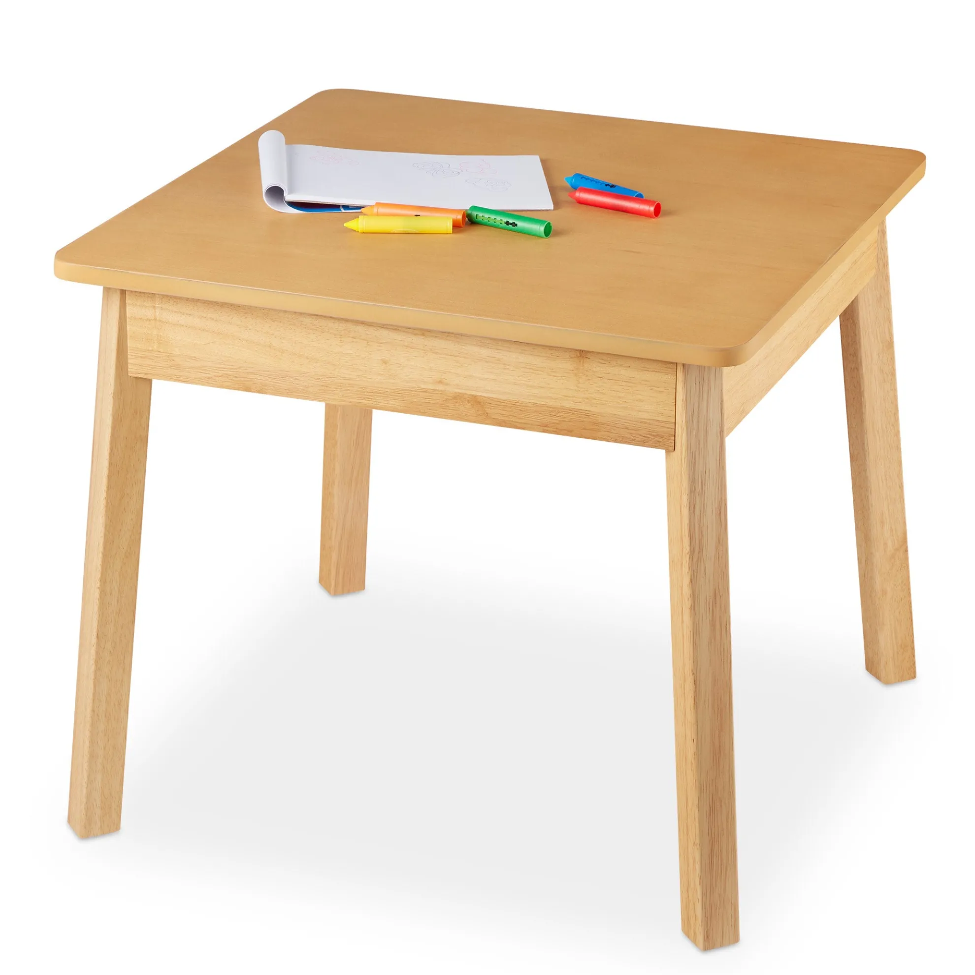 - Easy-to-assemble sturdy wooden square table sized for kids