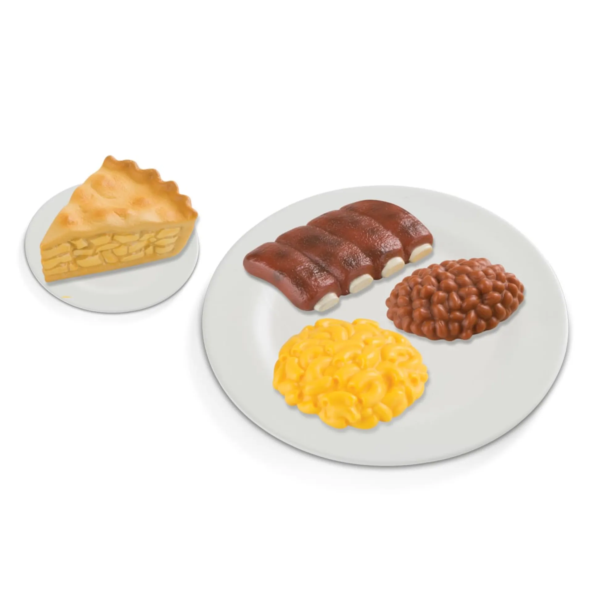 - Includes ribs, drumstick, lamb chops, salmon, baked beans, cauliflower, green beans, carrots, mac and cheese, mashed potatoes, rice, cupcake, orange, brownie, apple pie, reusable menu card