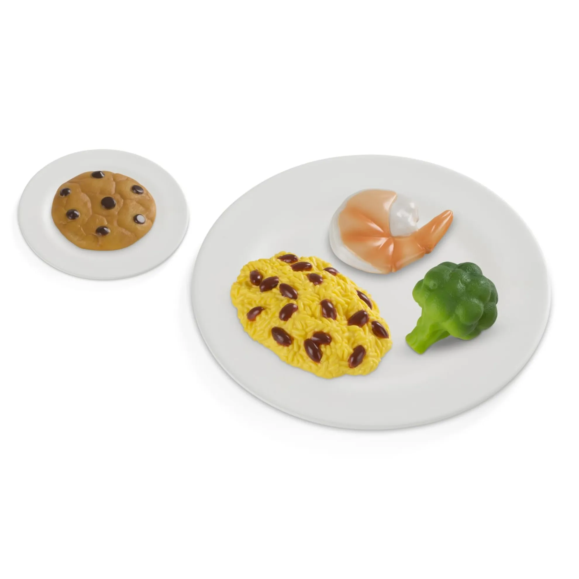 - Solid plastic food pieces are realistically detailed