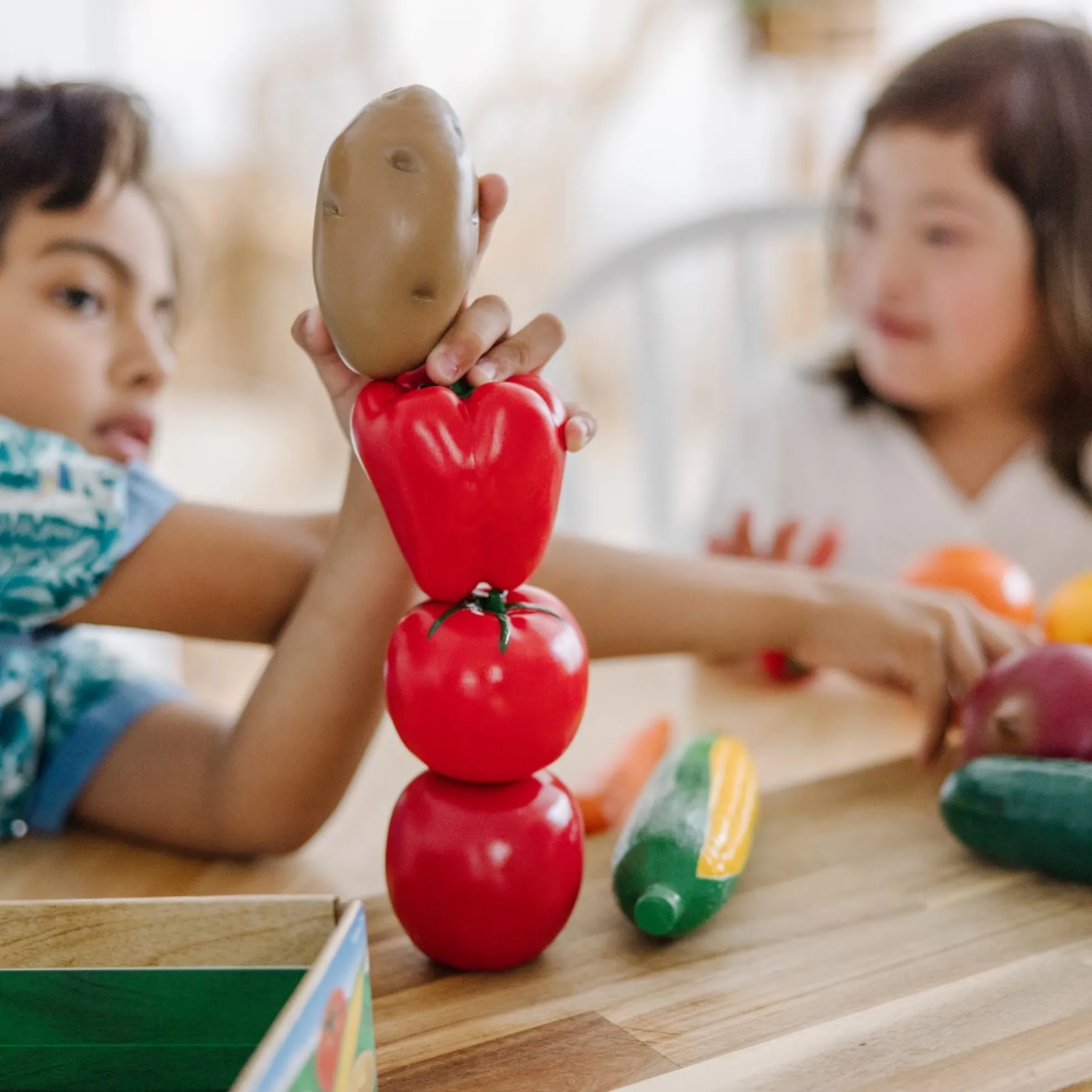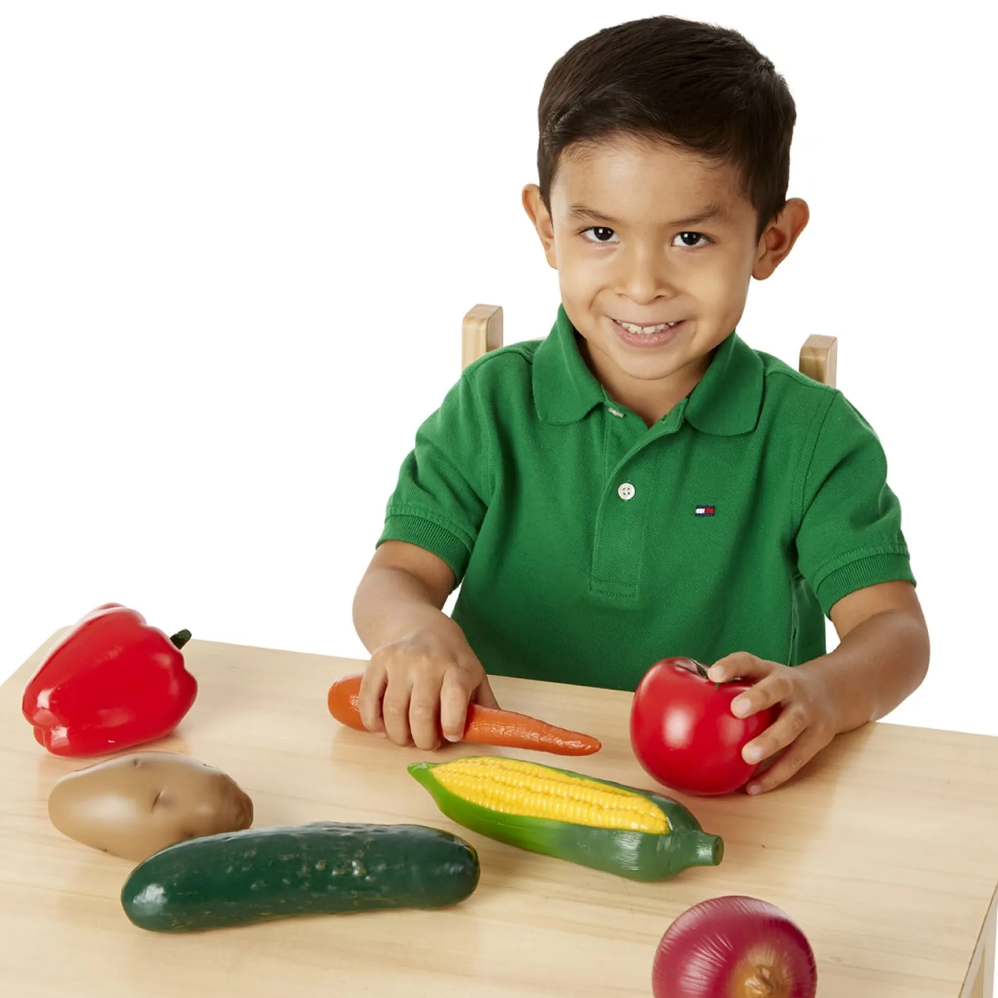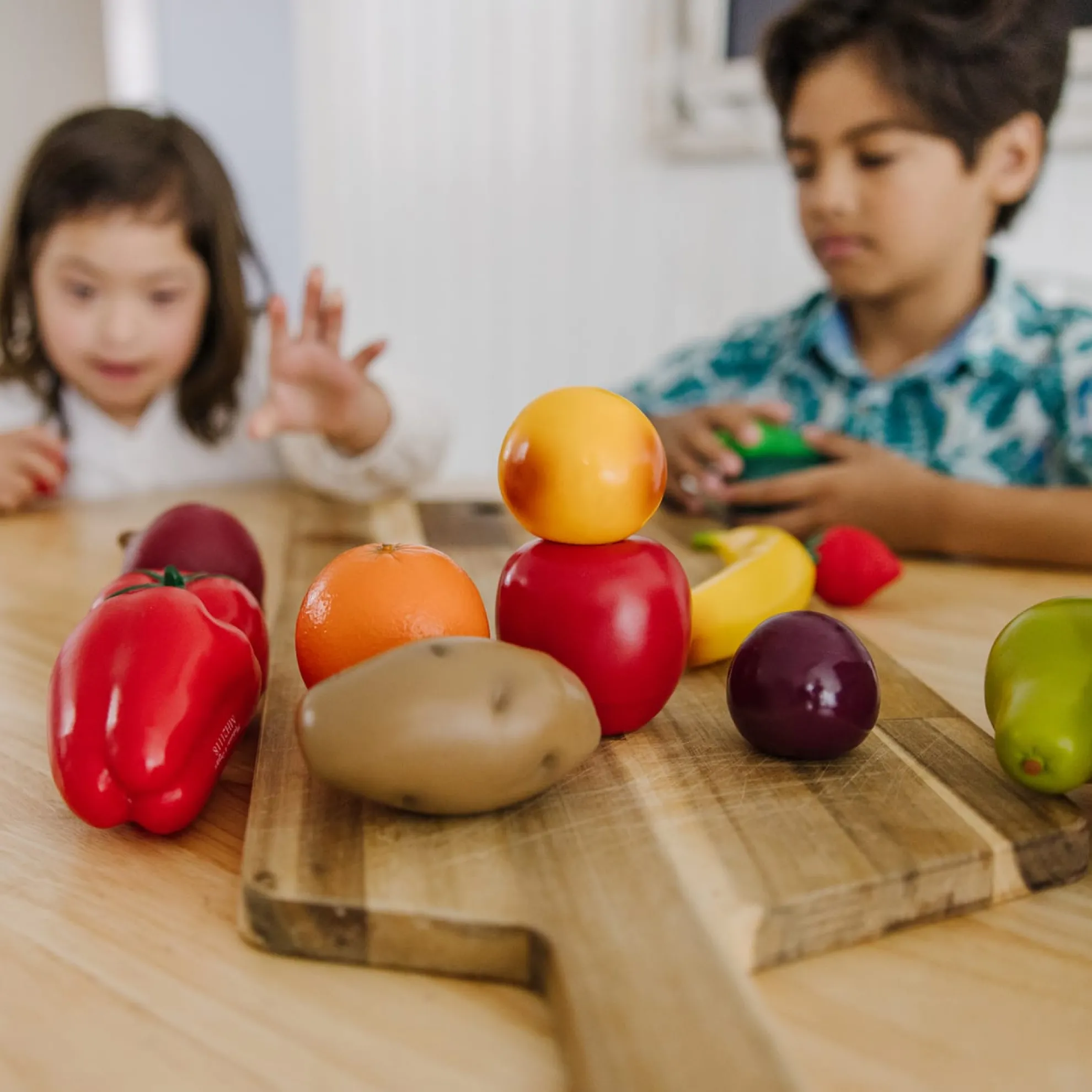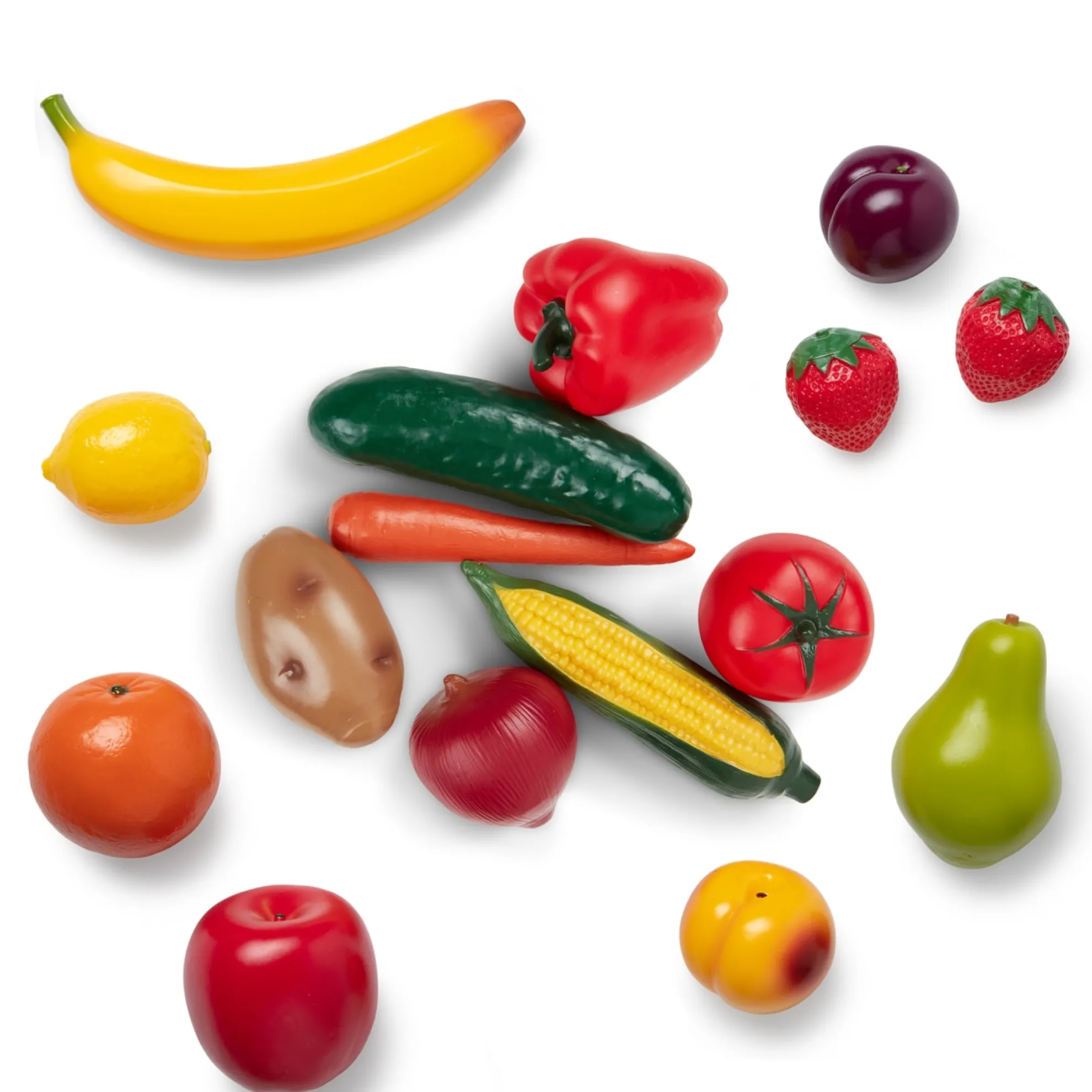 - Vegetable set includes 7 pieces; fruit set includes 9 pieces